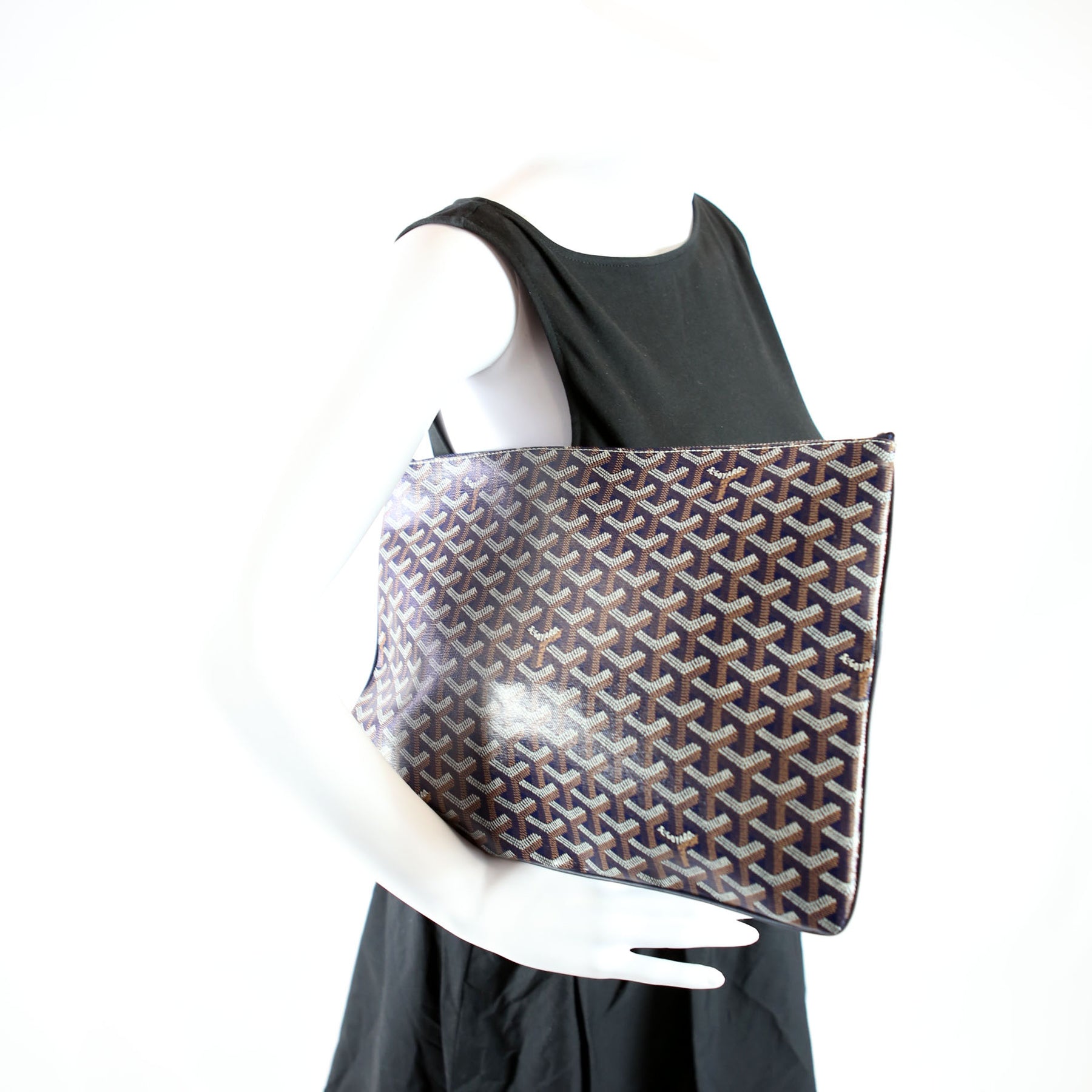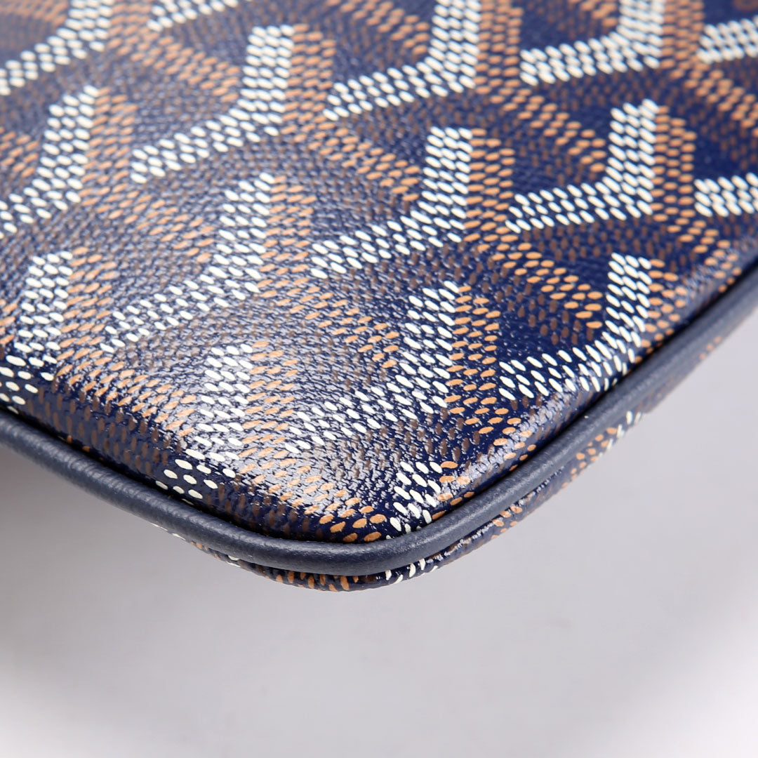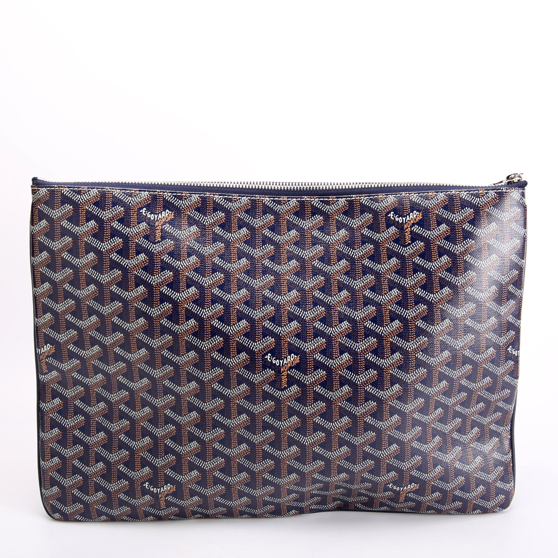 This pre-owned Goyard Senat GM Pouch is guaranteed 100% authentic. The exterior is in the classic Goyard Goyardine Coated Canvas