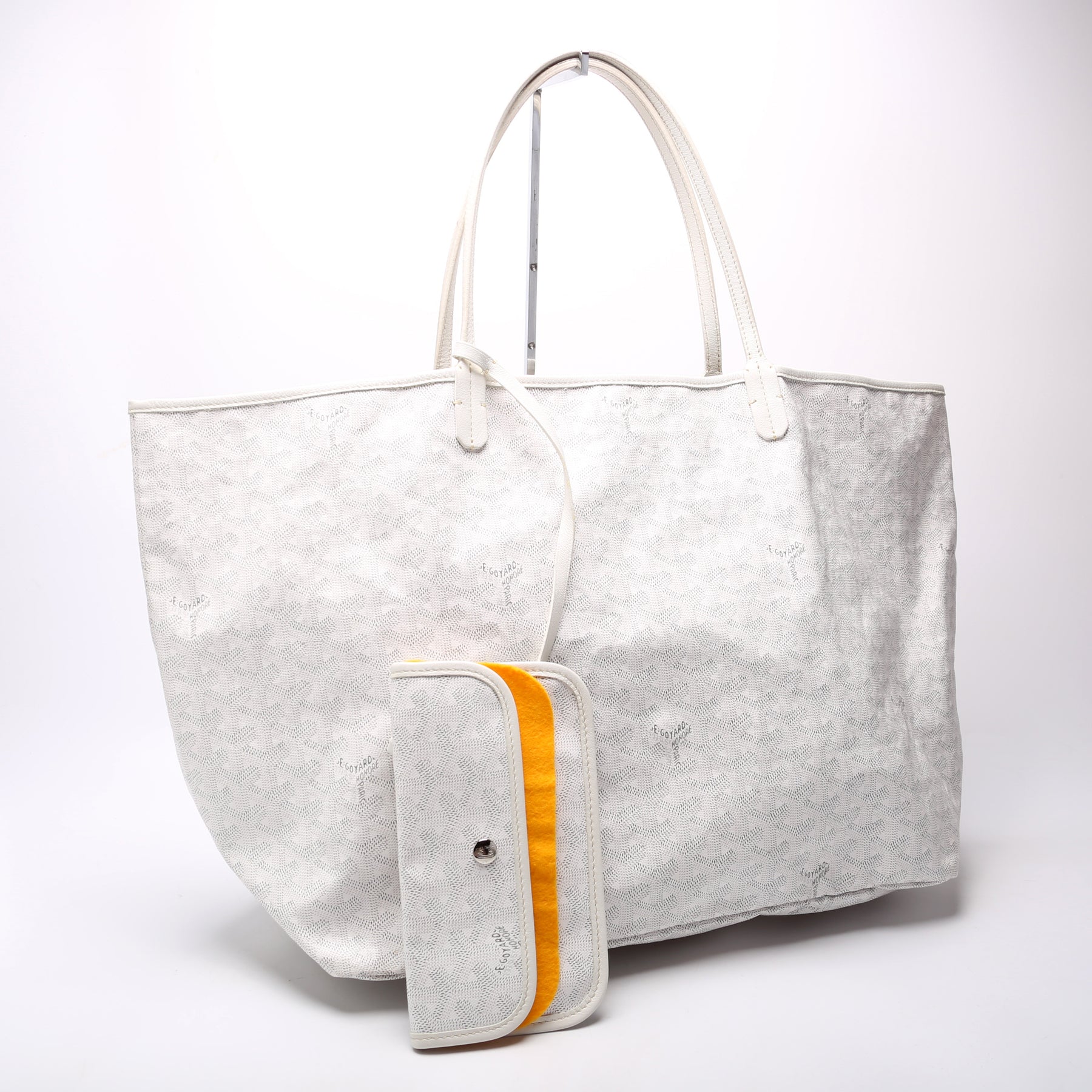 Handle: The leather handles show heavy signs of wear. There is discoloration and staining throughout.