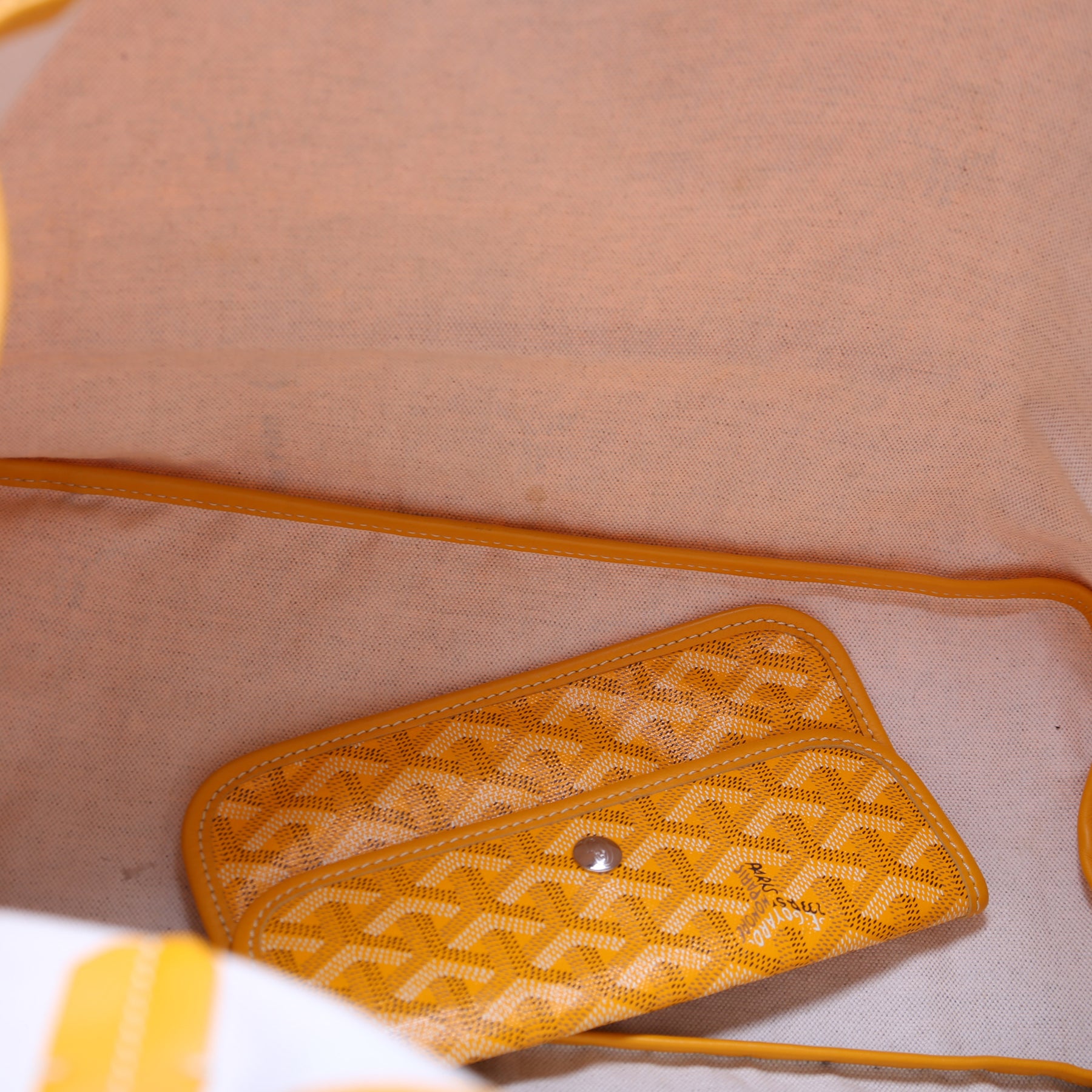 This pre-owned Goyard St Louis PM is guaranteed 100% authentic. The exterior is in the classic Goyard Goyardine coated canvas.