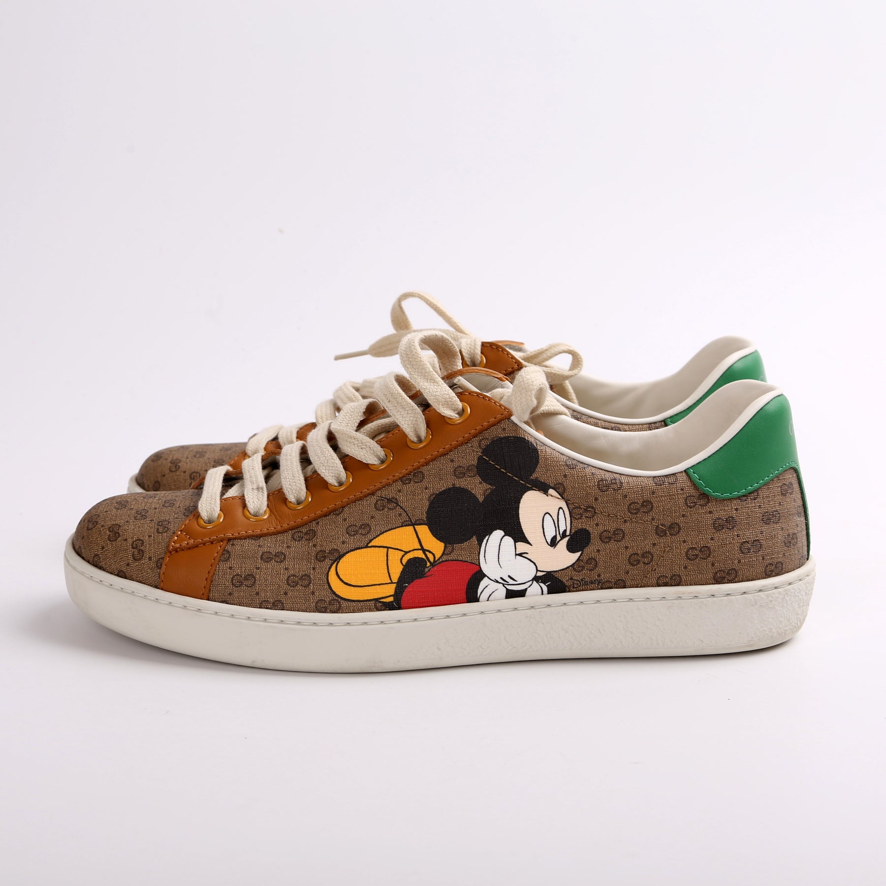 These pre-owned Gucci Ace Web Mickey Mouse Sneakers are guaranteed 100% authentic.