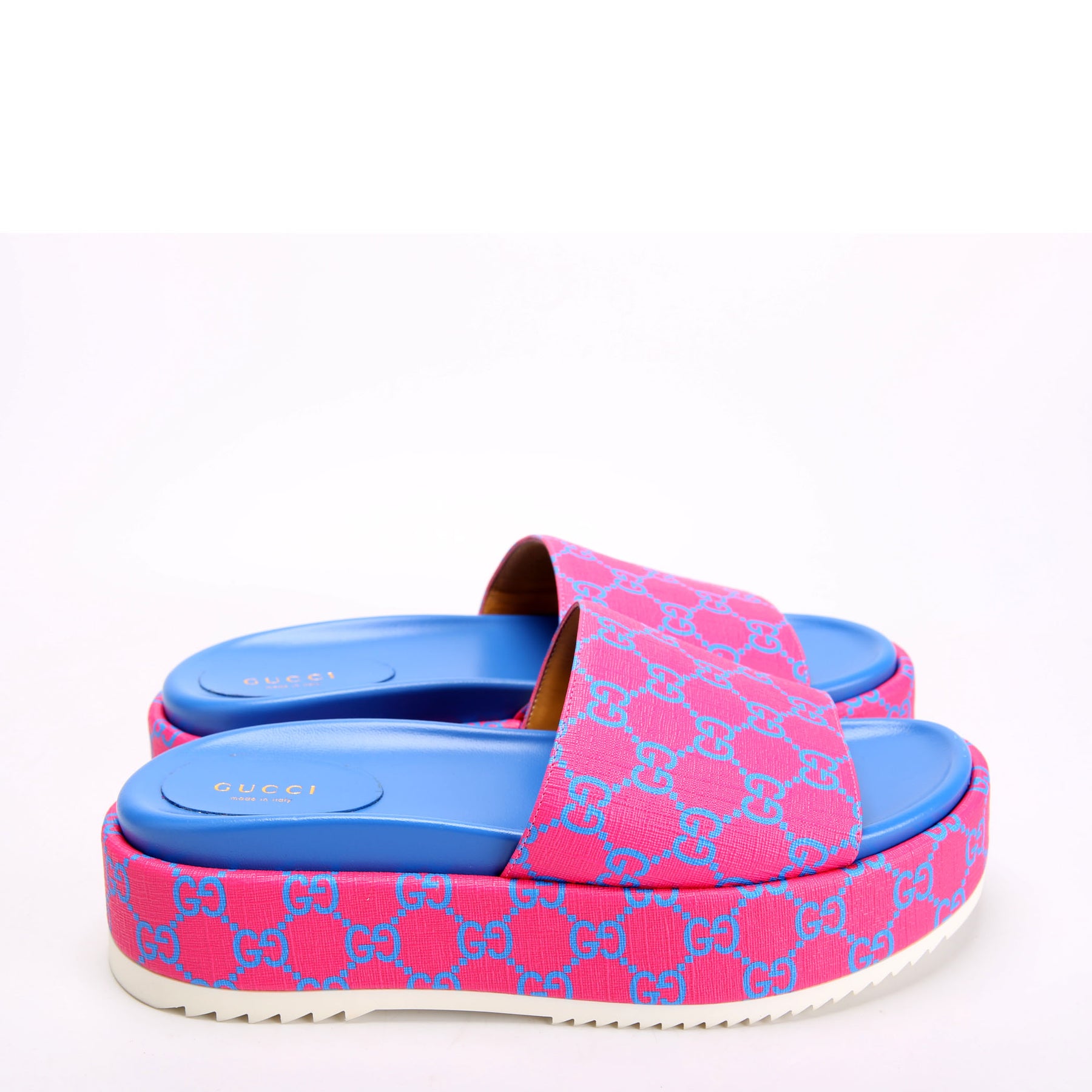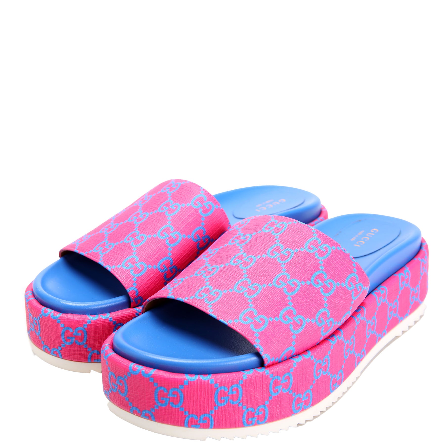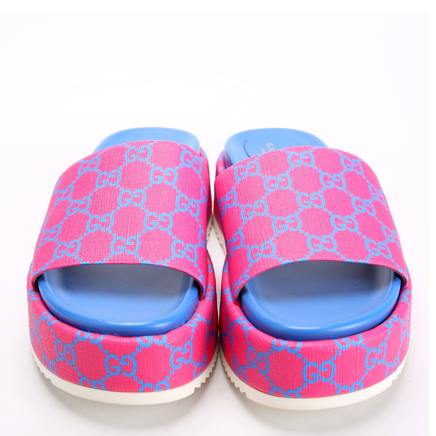 Angelina Platform Slide Sandals Size 39.5 Pink/Blue