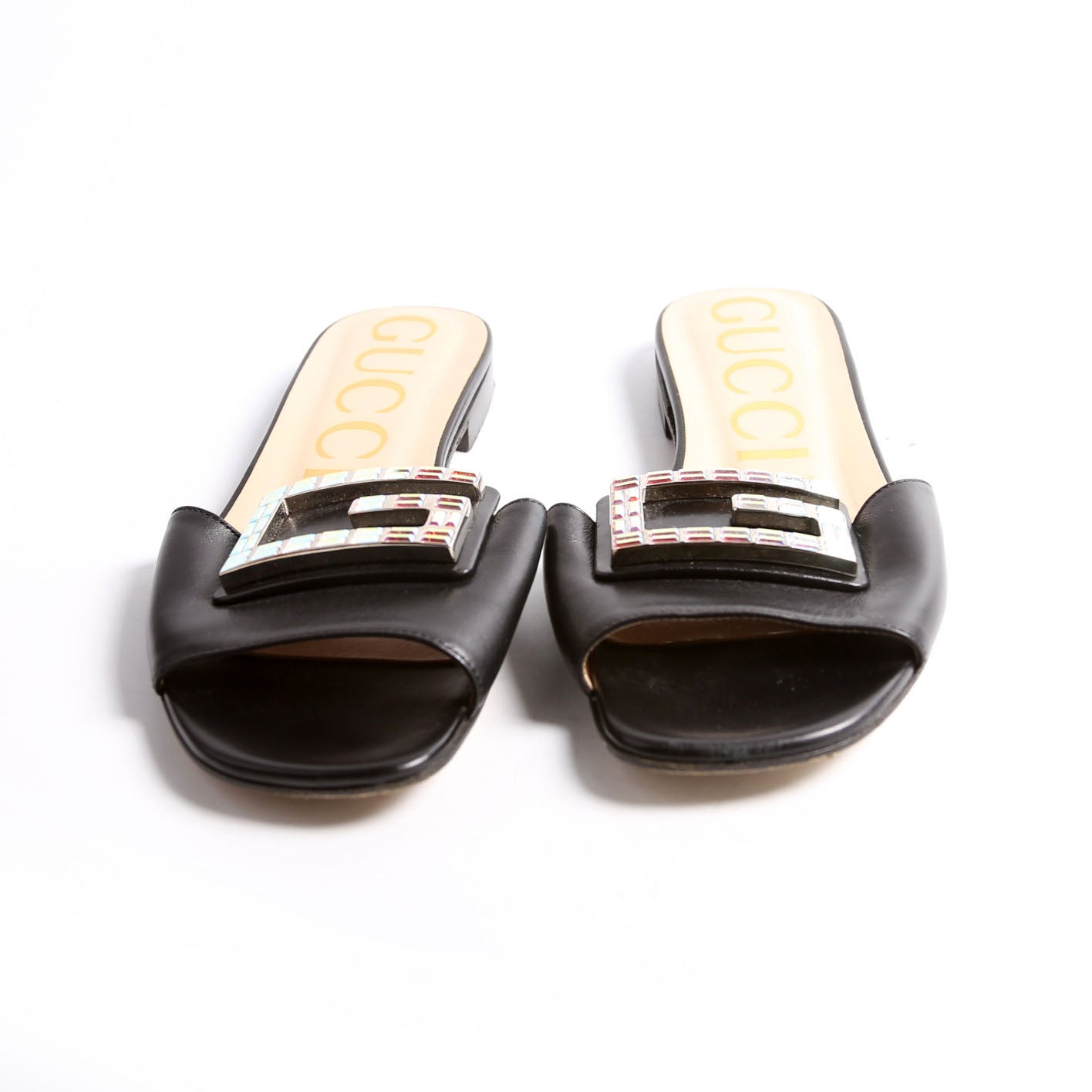 These pre-owned Gucci Crystal G Slides are guaranteed 100% authentic.