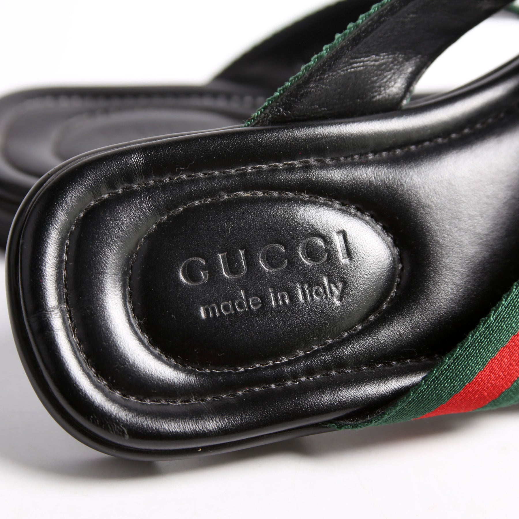 These pre-owned Gucci Interlocking G Web Thong Sandals are guaranteed 100% authentic.