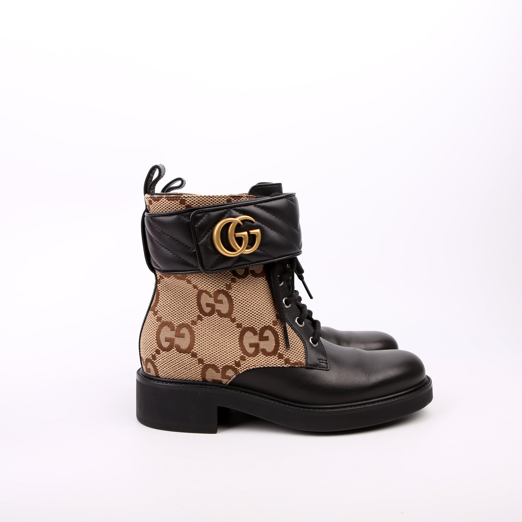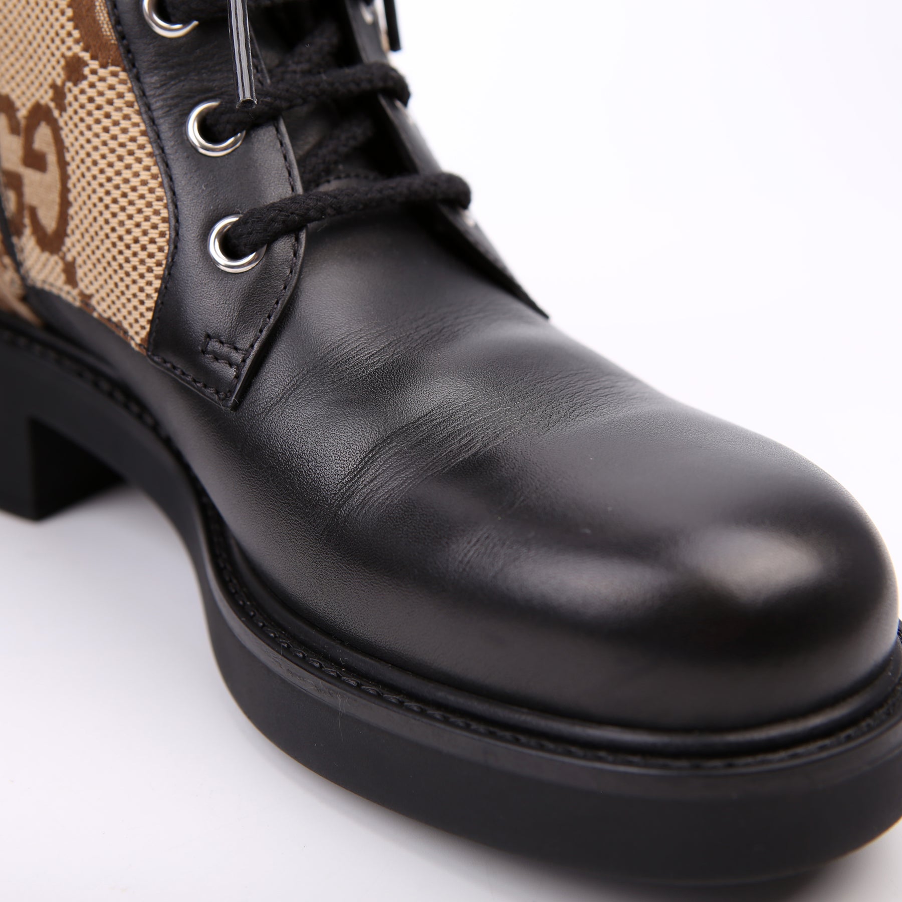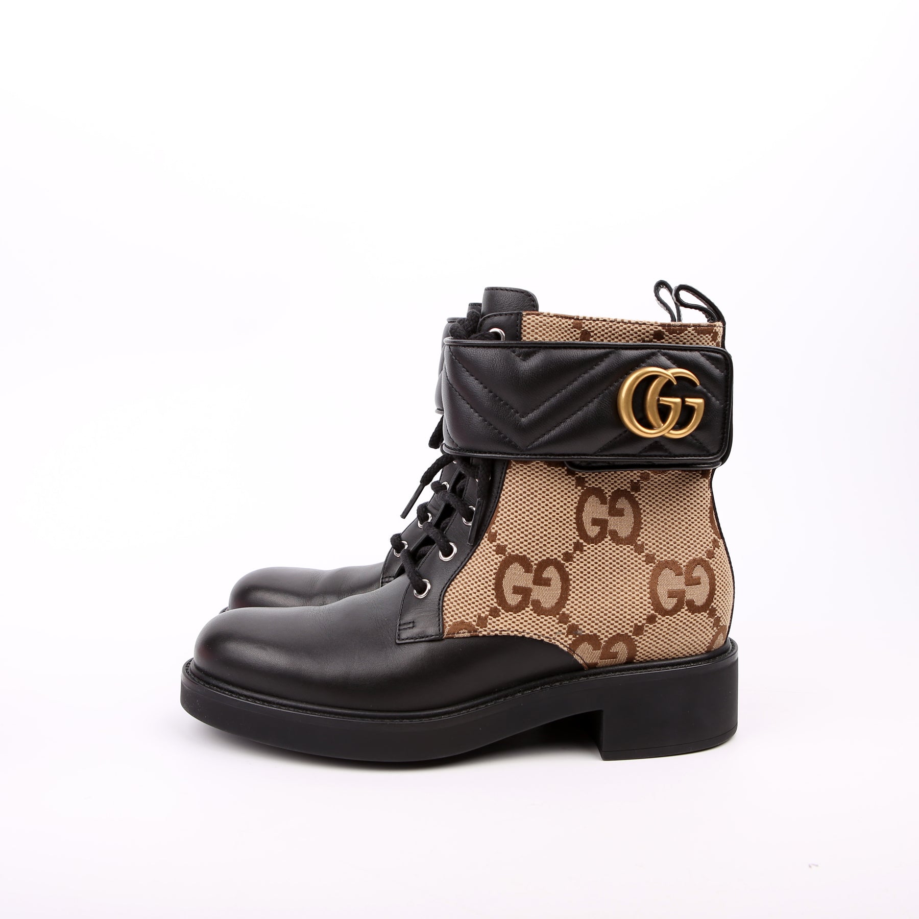 Jumbo GG Marmont Lace Up Boots Size 38.5 Black