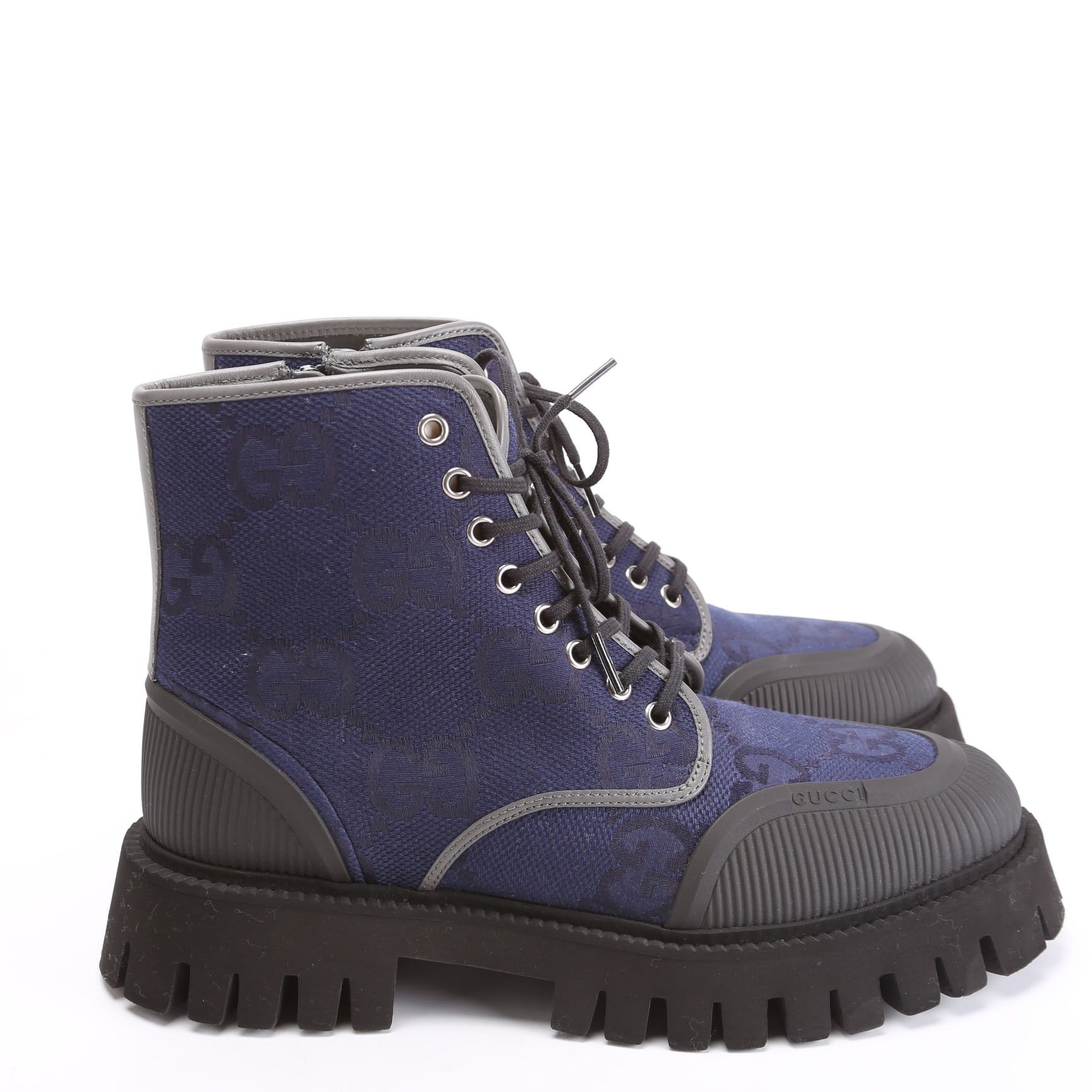 These pre-owned Gucci Maxi GG Canvas Lace Up Combat Boots are guaranteed 100% authentic.