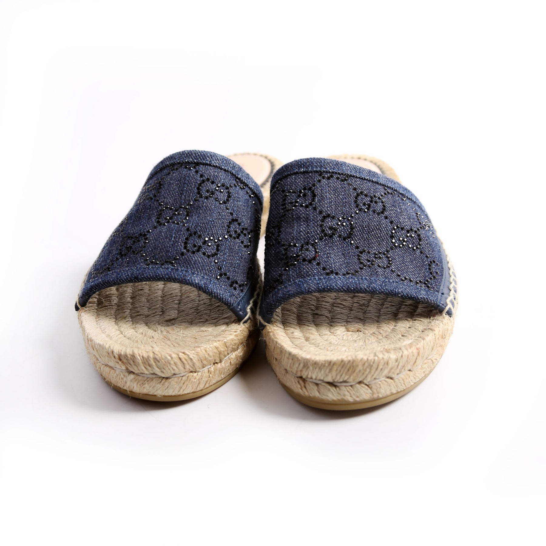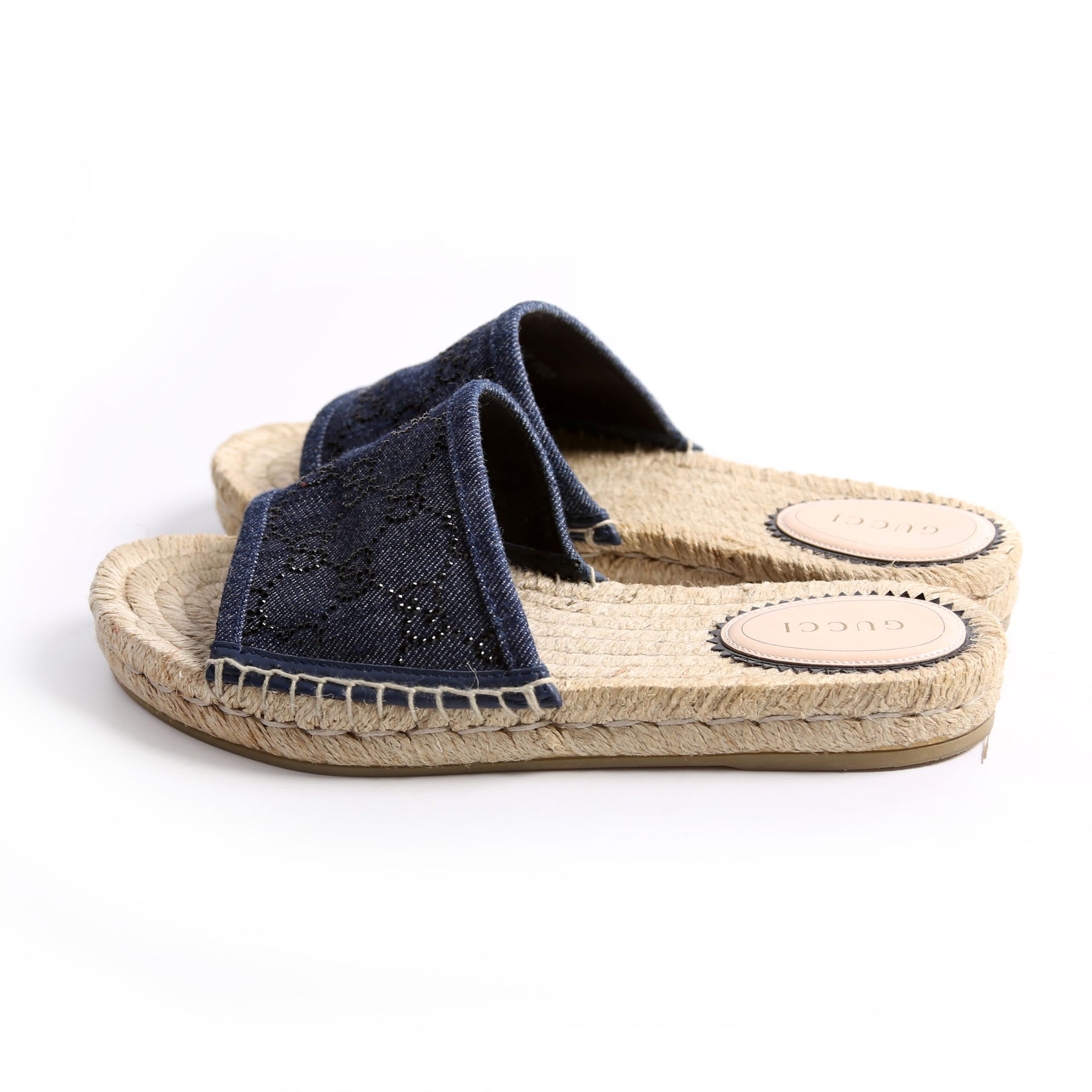 These pre-owned Gucci Pilar GG Denim Espadrilles are guaranteed 100% authentic.