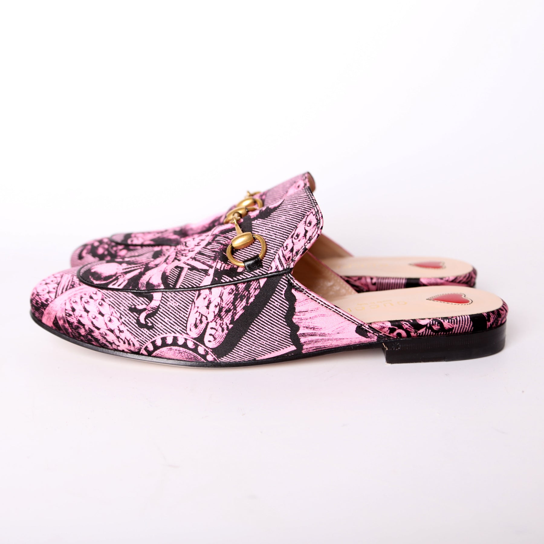 These pre-owned Gucci Princetown Printed Silk Mules are guaranteed 100% authentic.