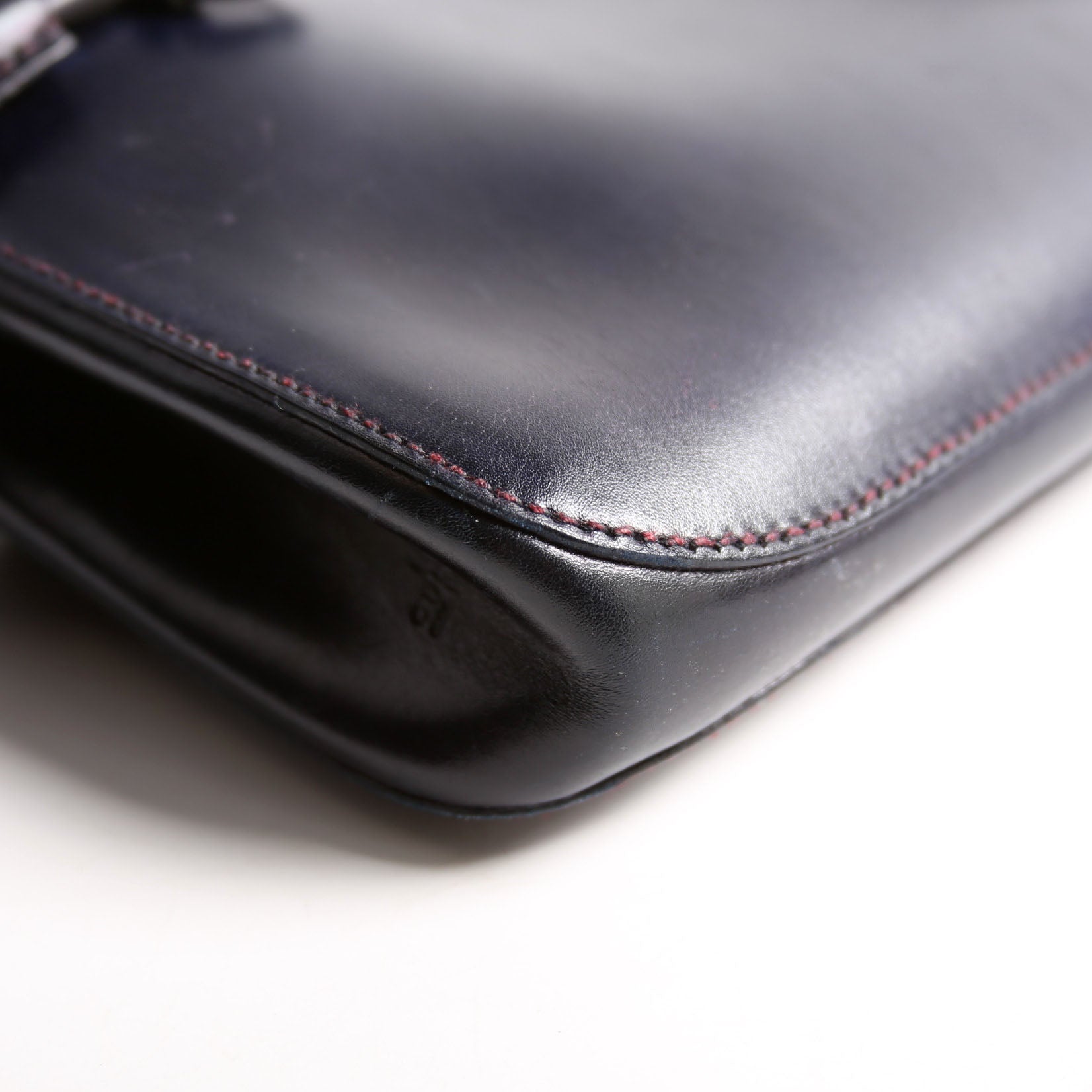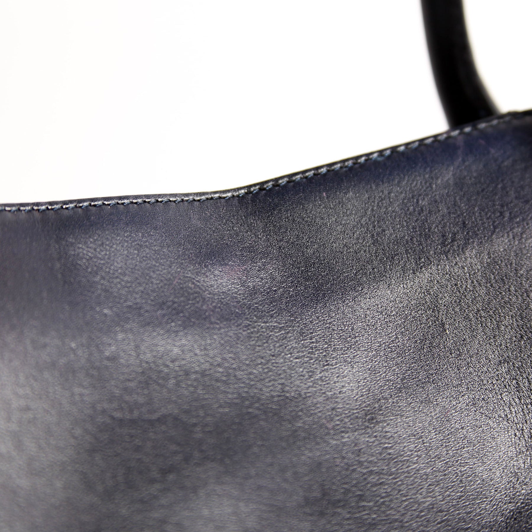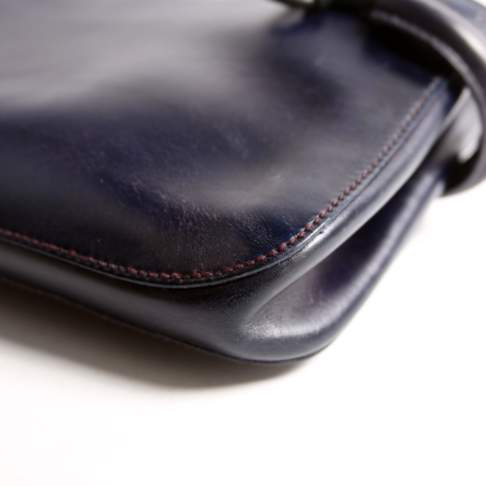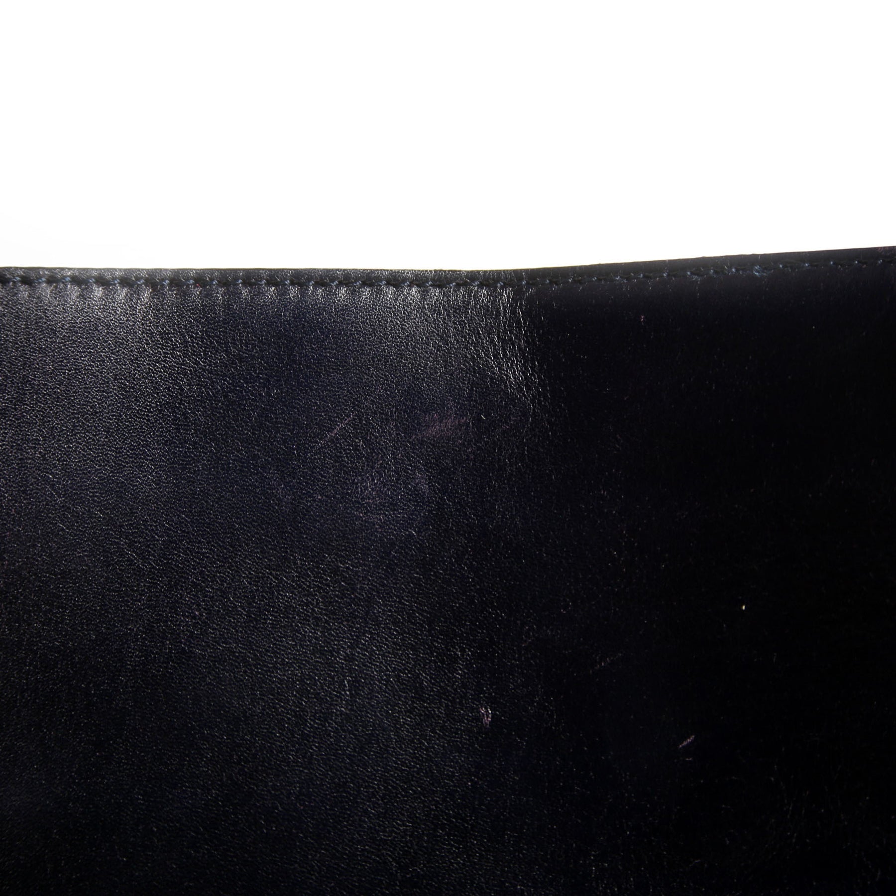Exterior: The exterior leather shows marks and scuffs throughout. The corners light wear.