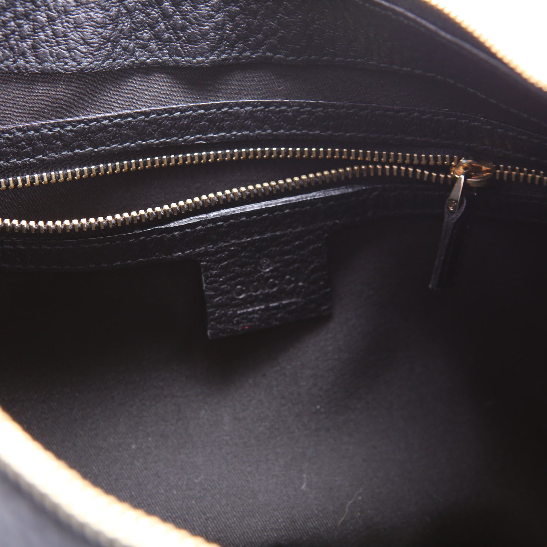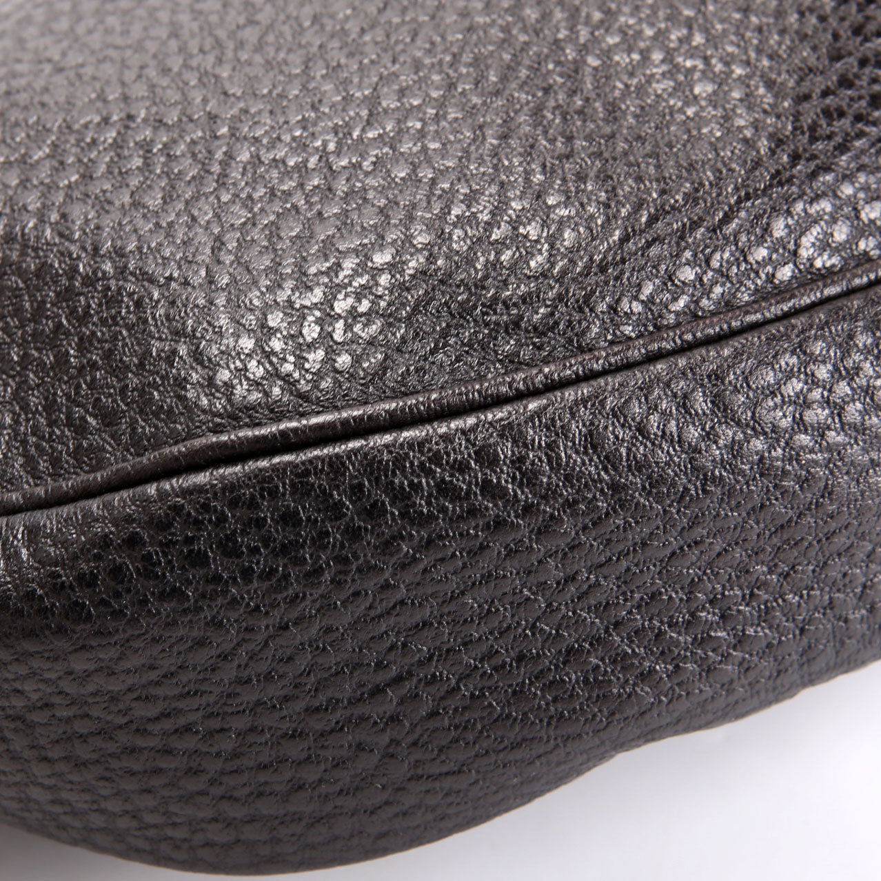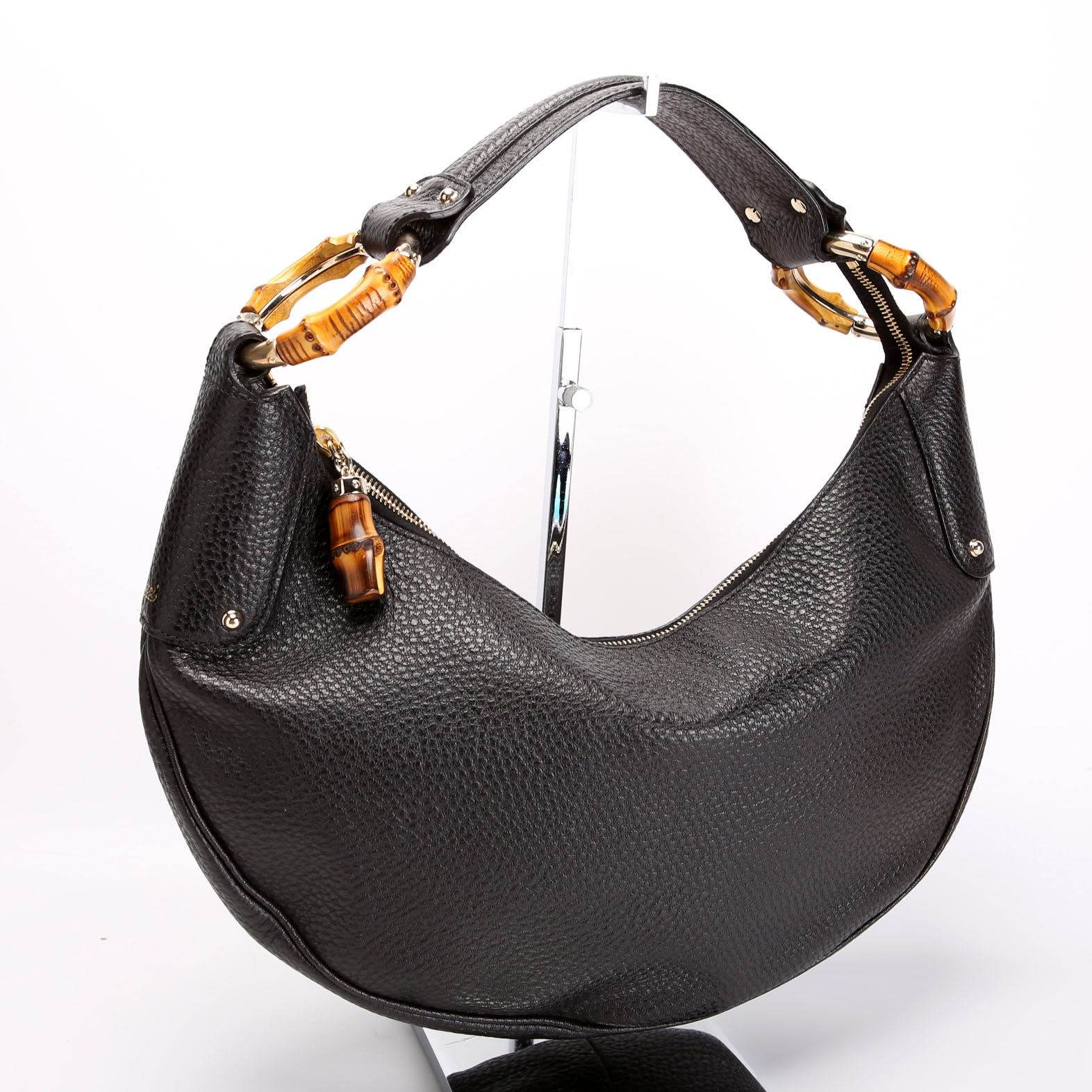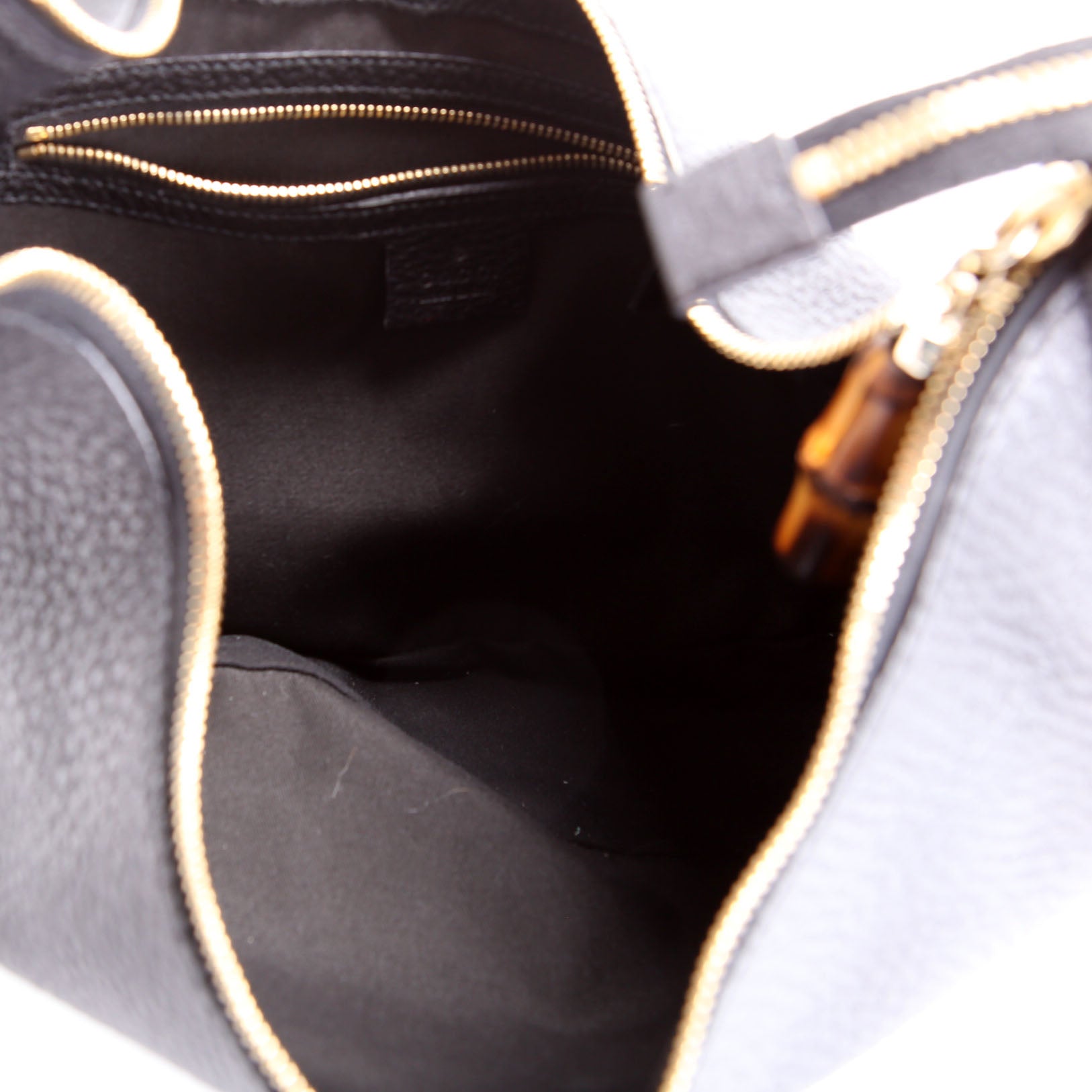 This pre-owned Gucci Bamboo Ring Leather Hobo is guaranteed 100% authentic. The exterior is in the classic Gucci Pebbled Leather.
