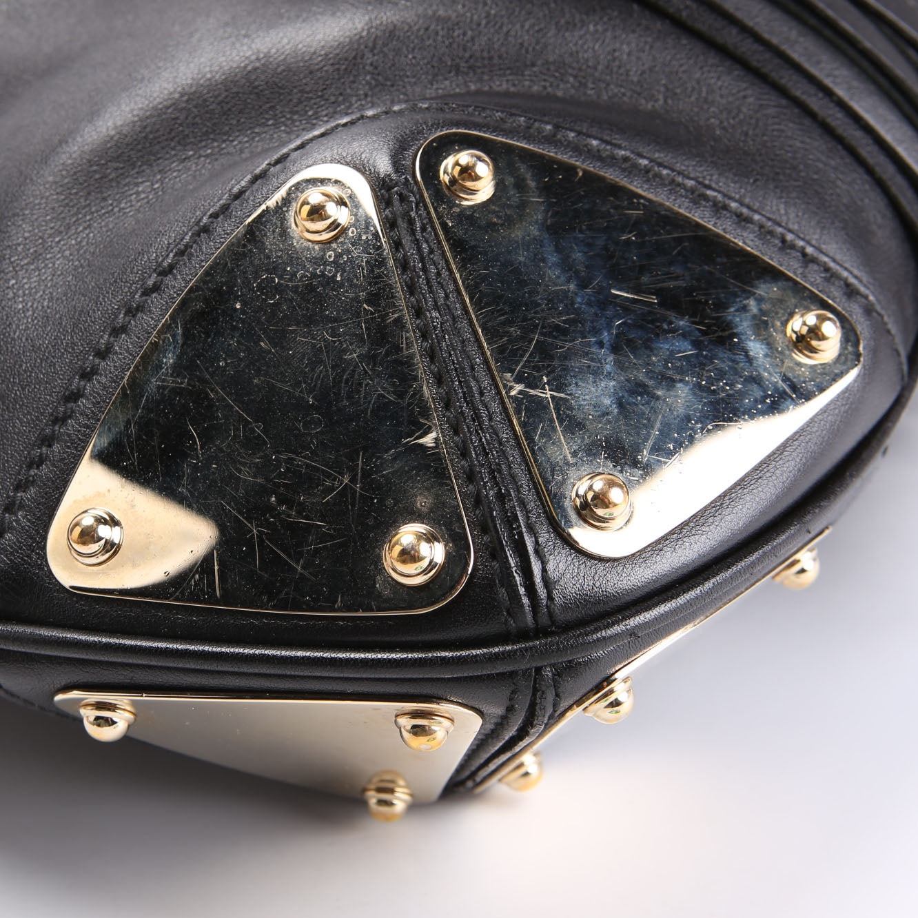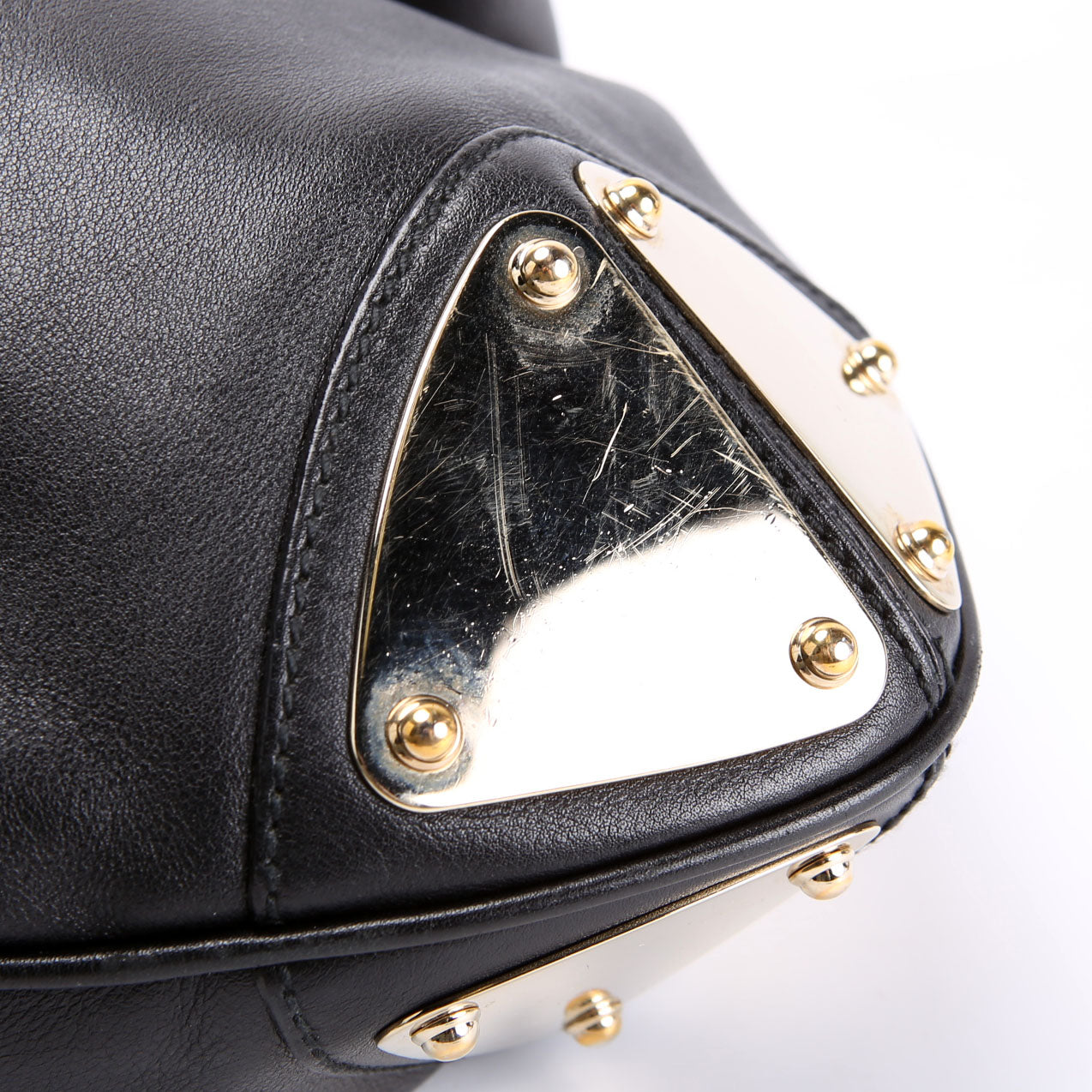 Handles: The leather handle shows light scuffs and scratches.