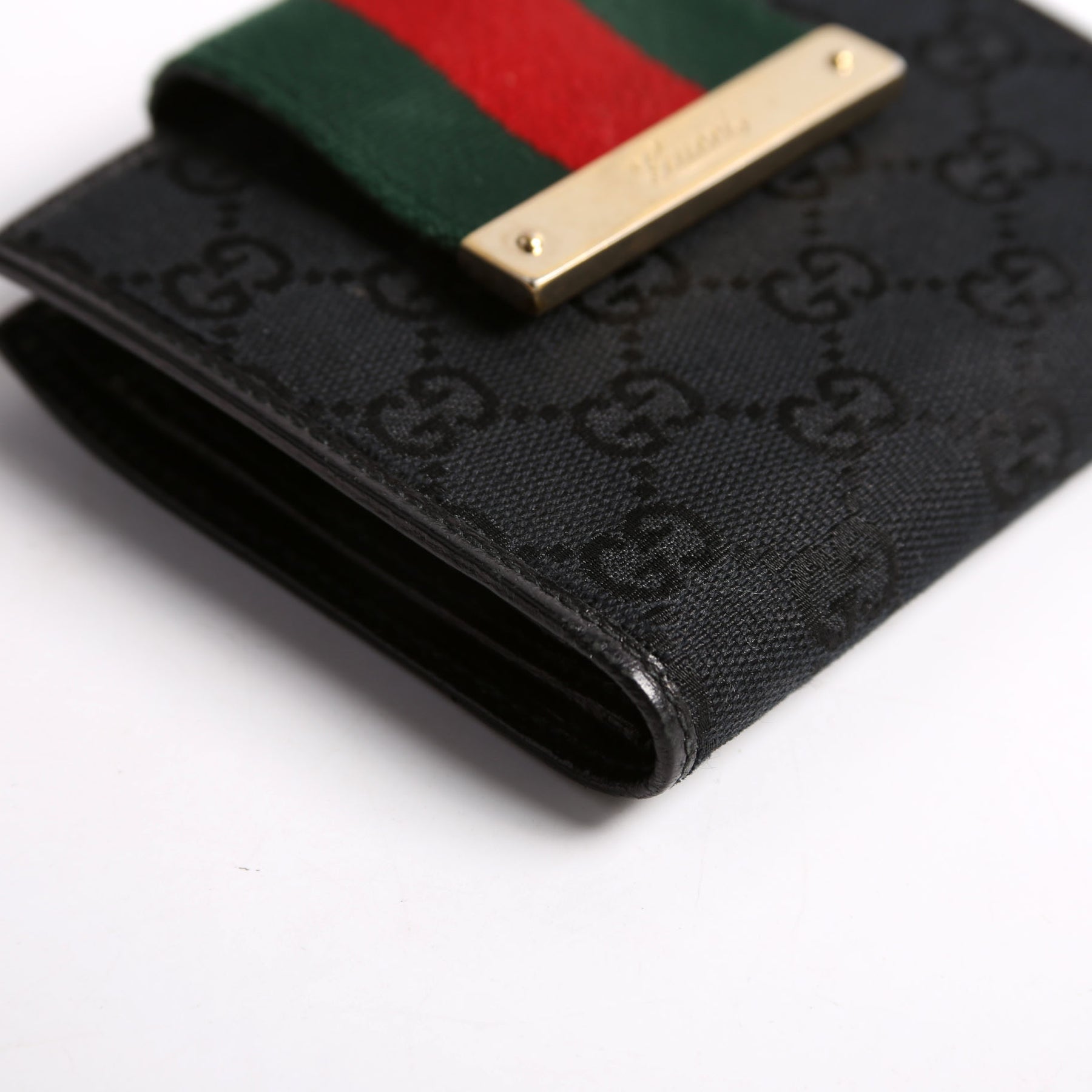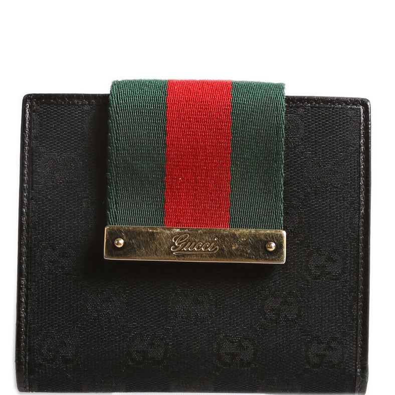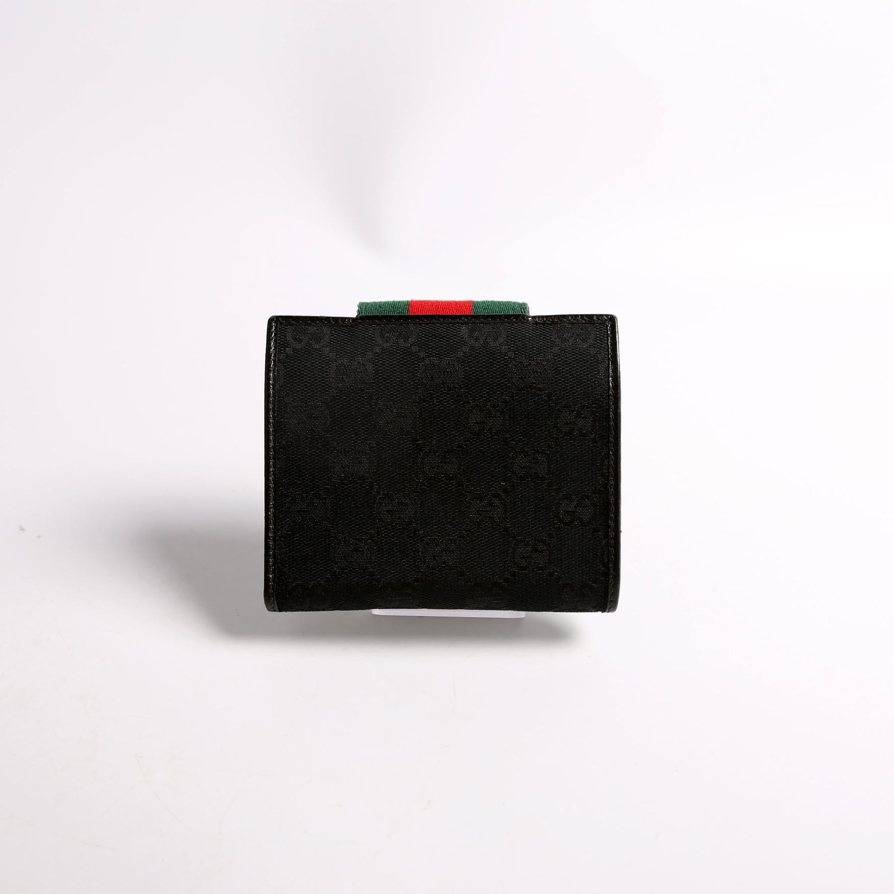 This pre-owned Gucci GG Canvas Web Compact Wallet is guaranteed 100% authentic.