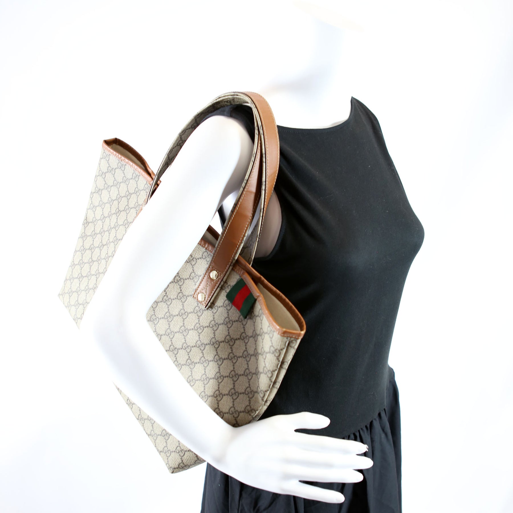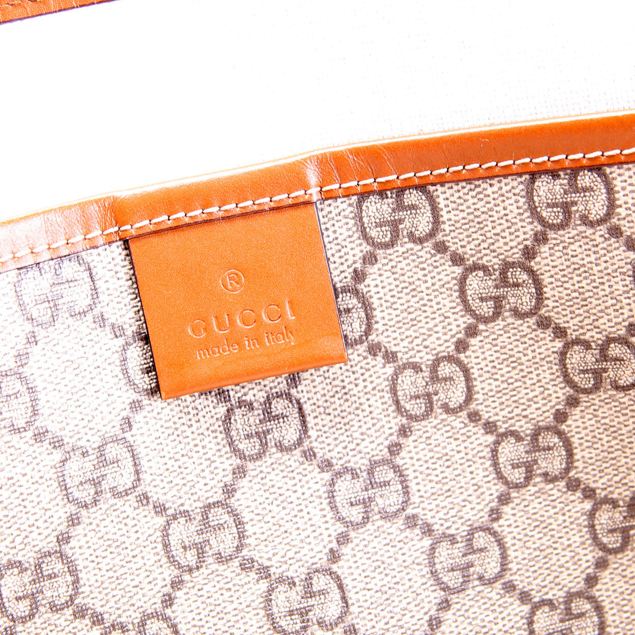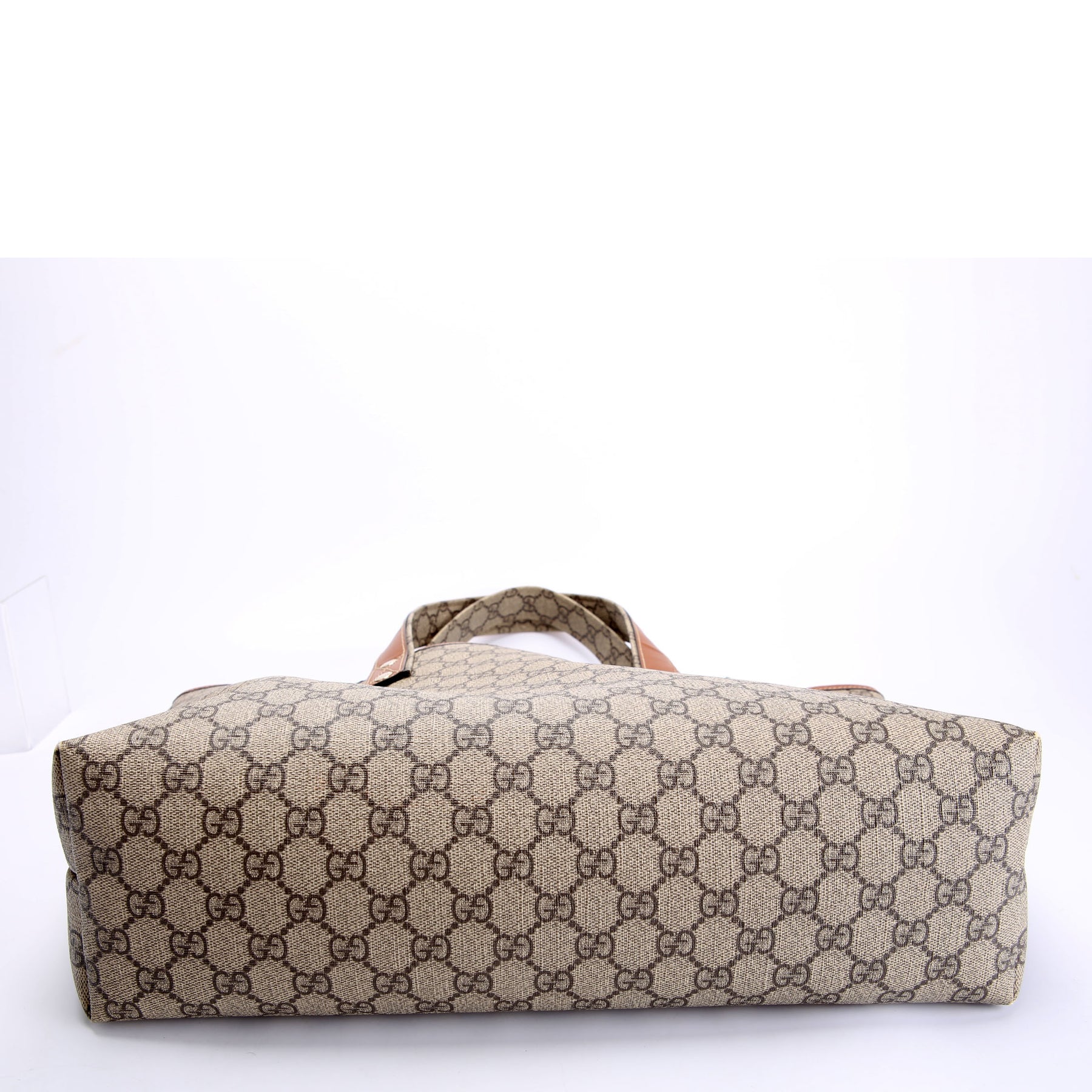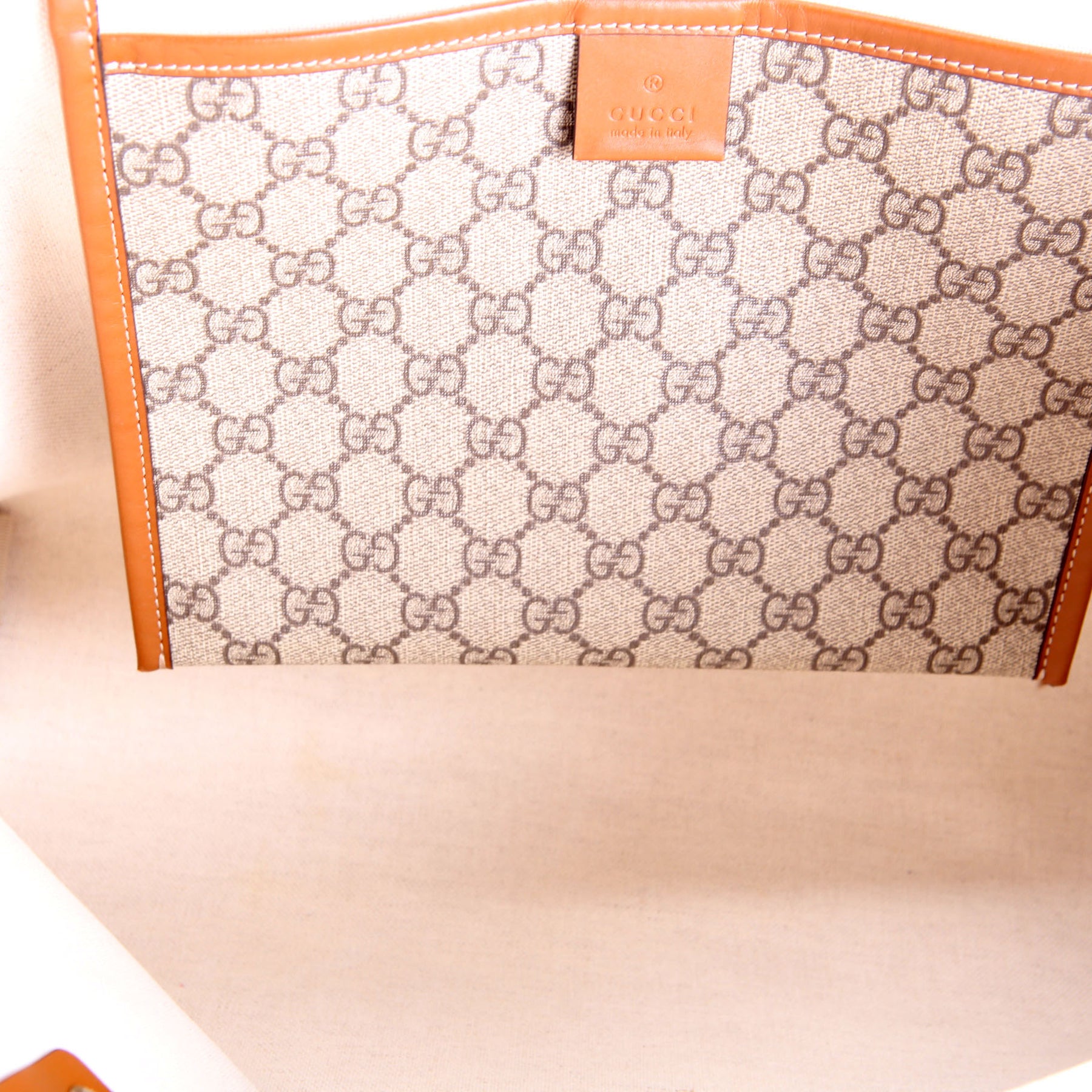 This pre-owned Gucci Sherry Line Tote is guaranteed 100% authentic. The exterior is in the classic GG Coated Canvas.