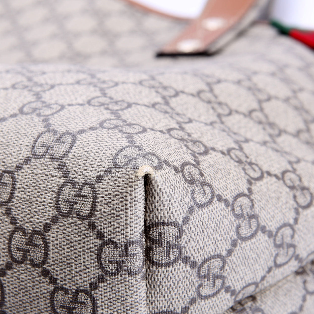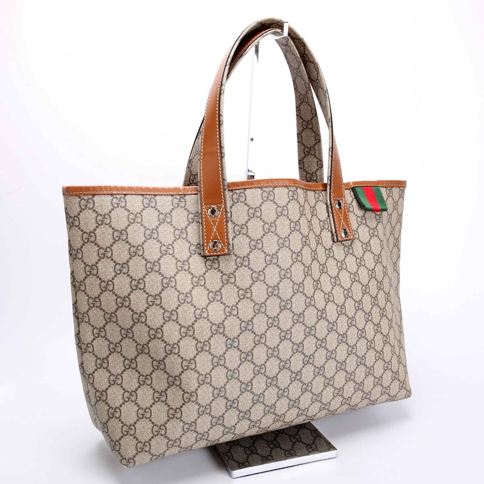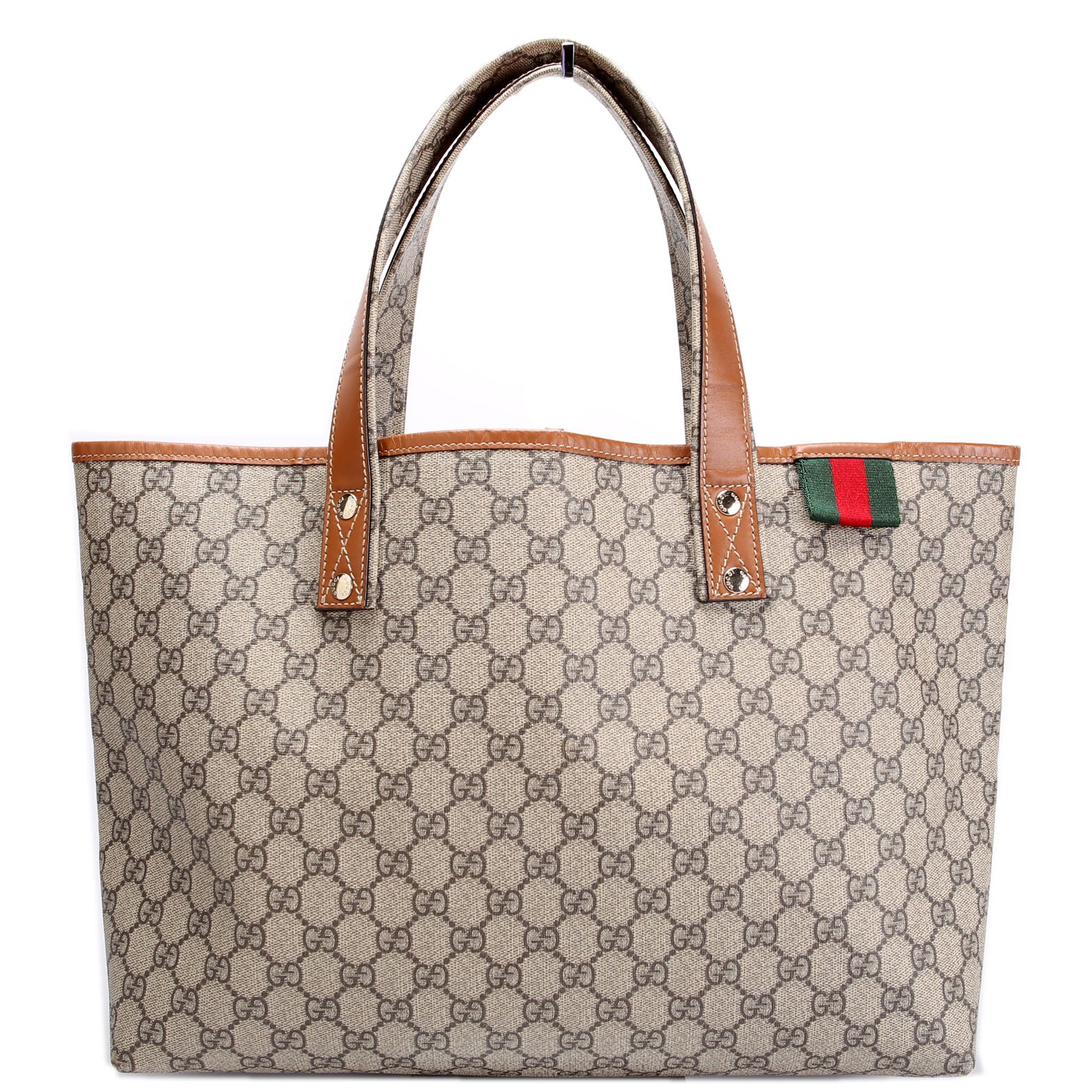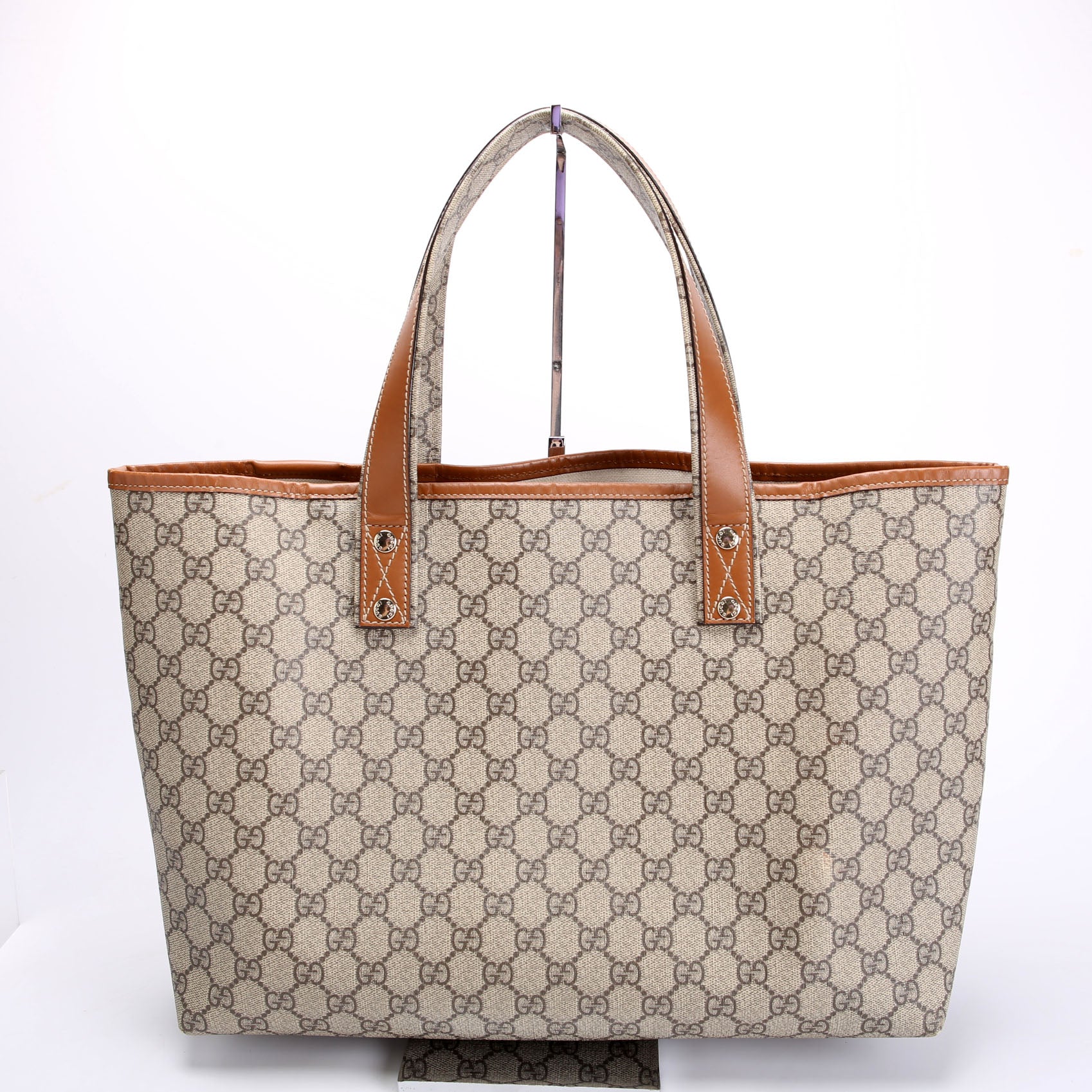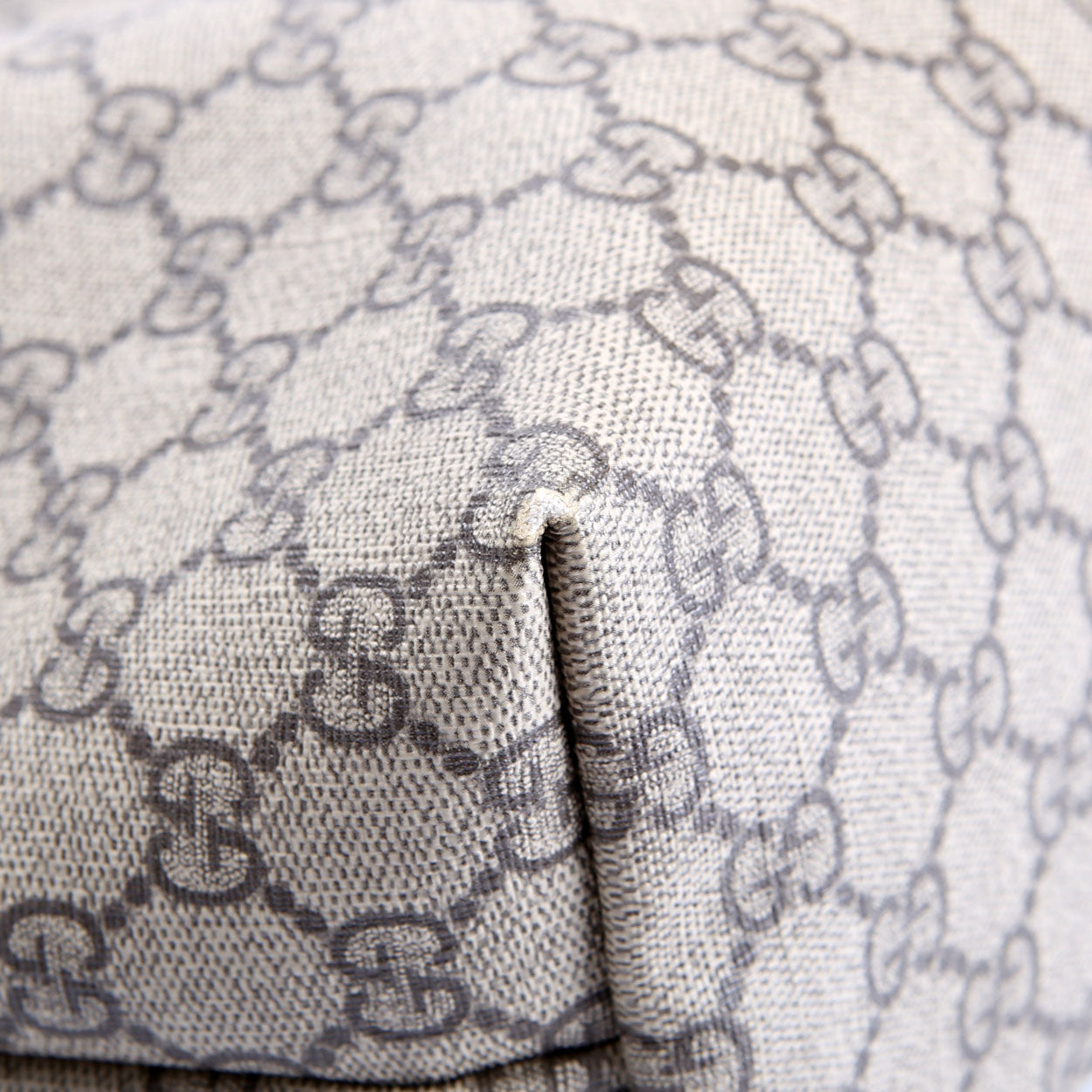 This pre-owned Gucci Sherry Line Tote is guaranteed 100% authentic. The exterior is in the classic GG Coated Canvas.