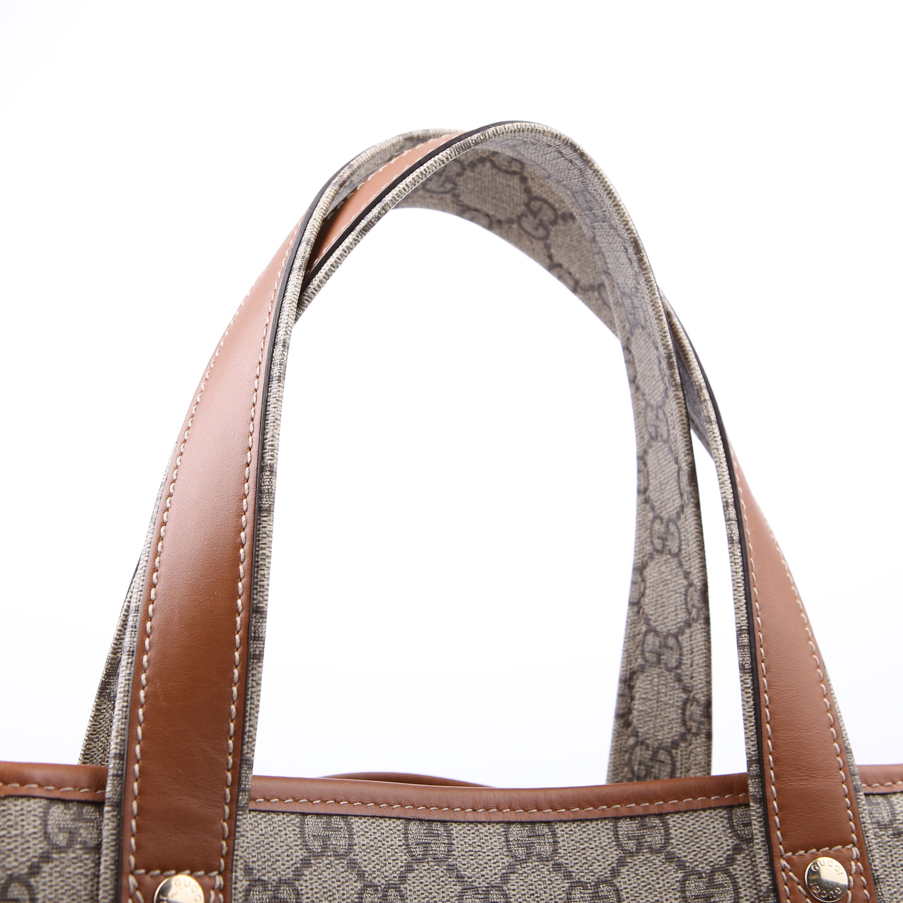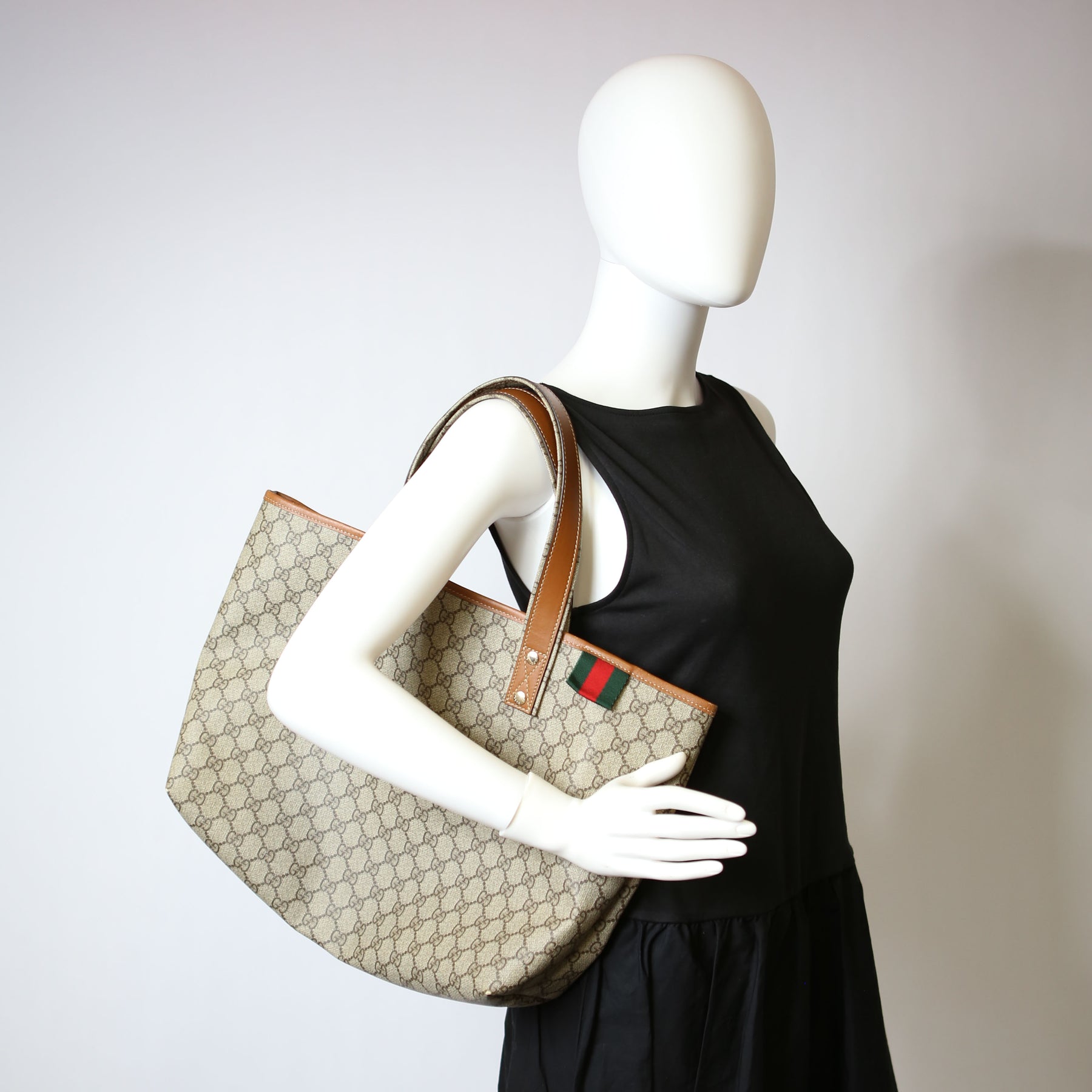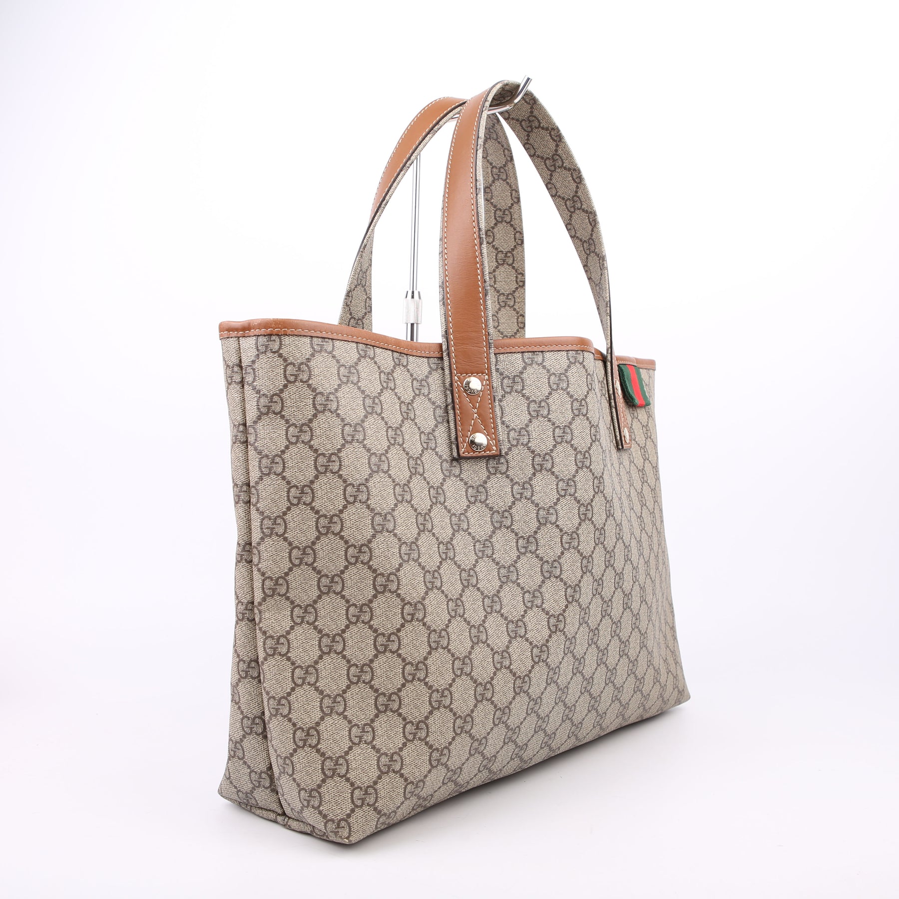 This pre-owned Gucci Sherry Line Tote is guaranteed 100% authentic. The exterior is in the classic GG Coated Canvas.