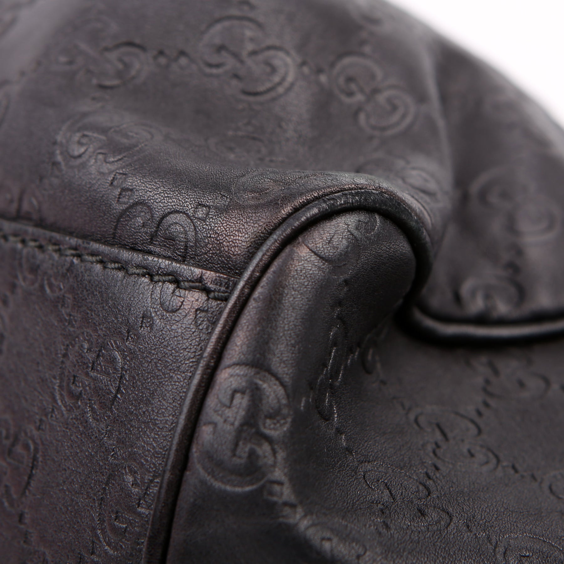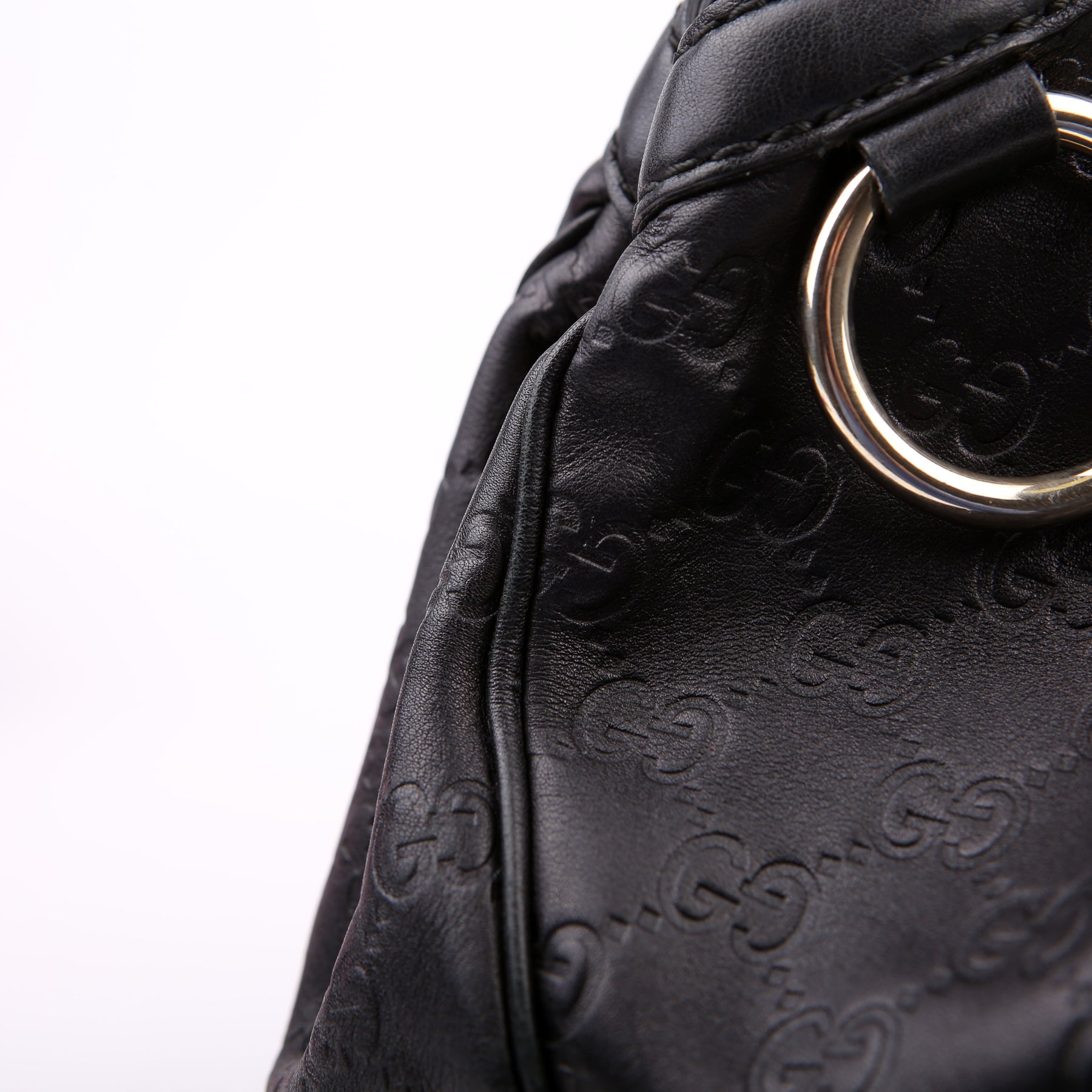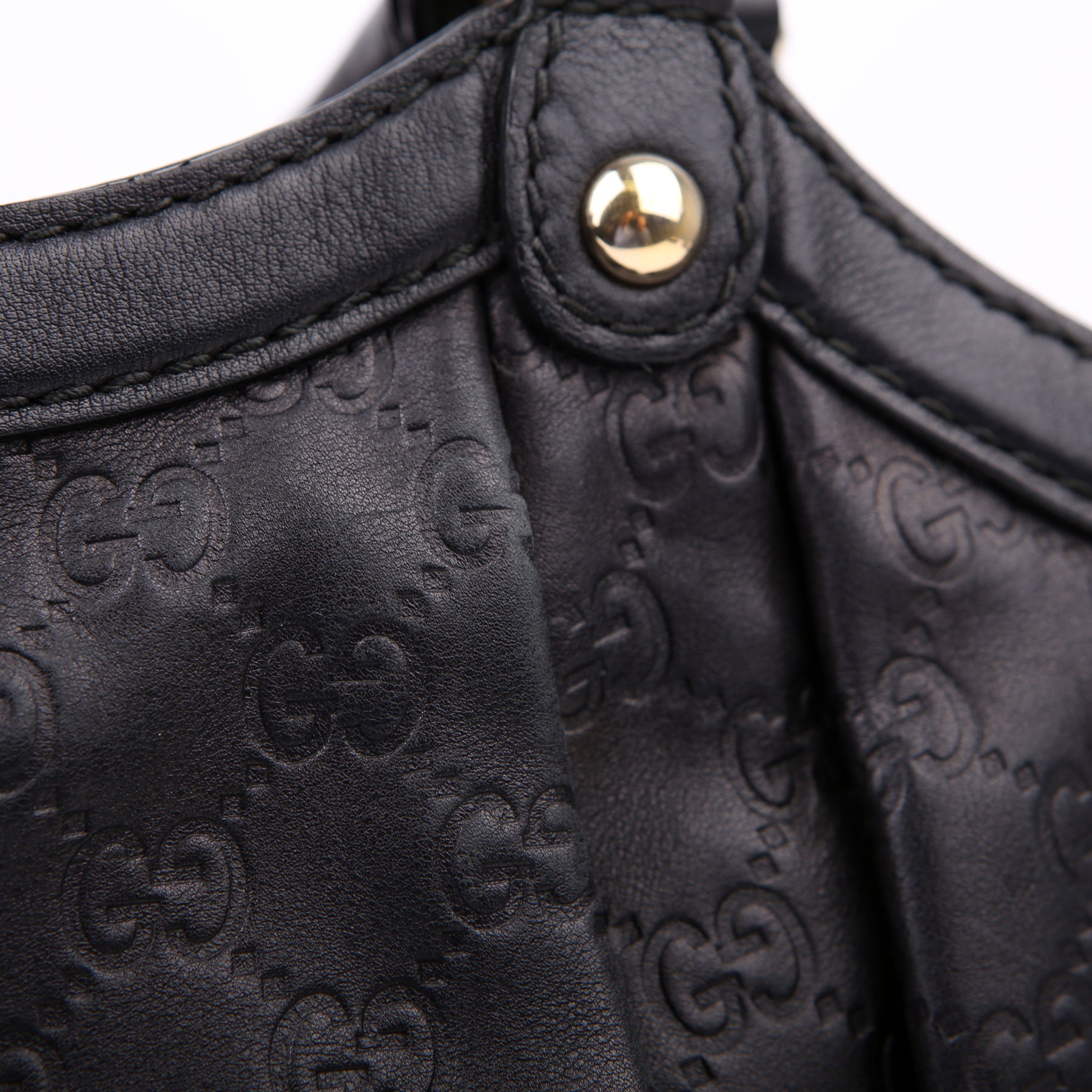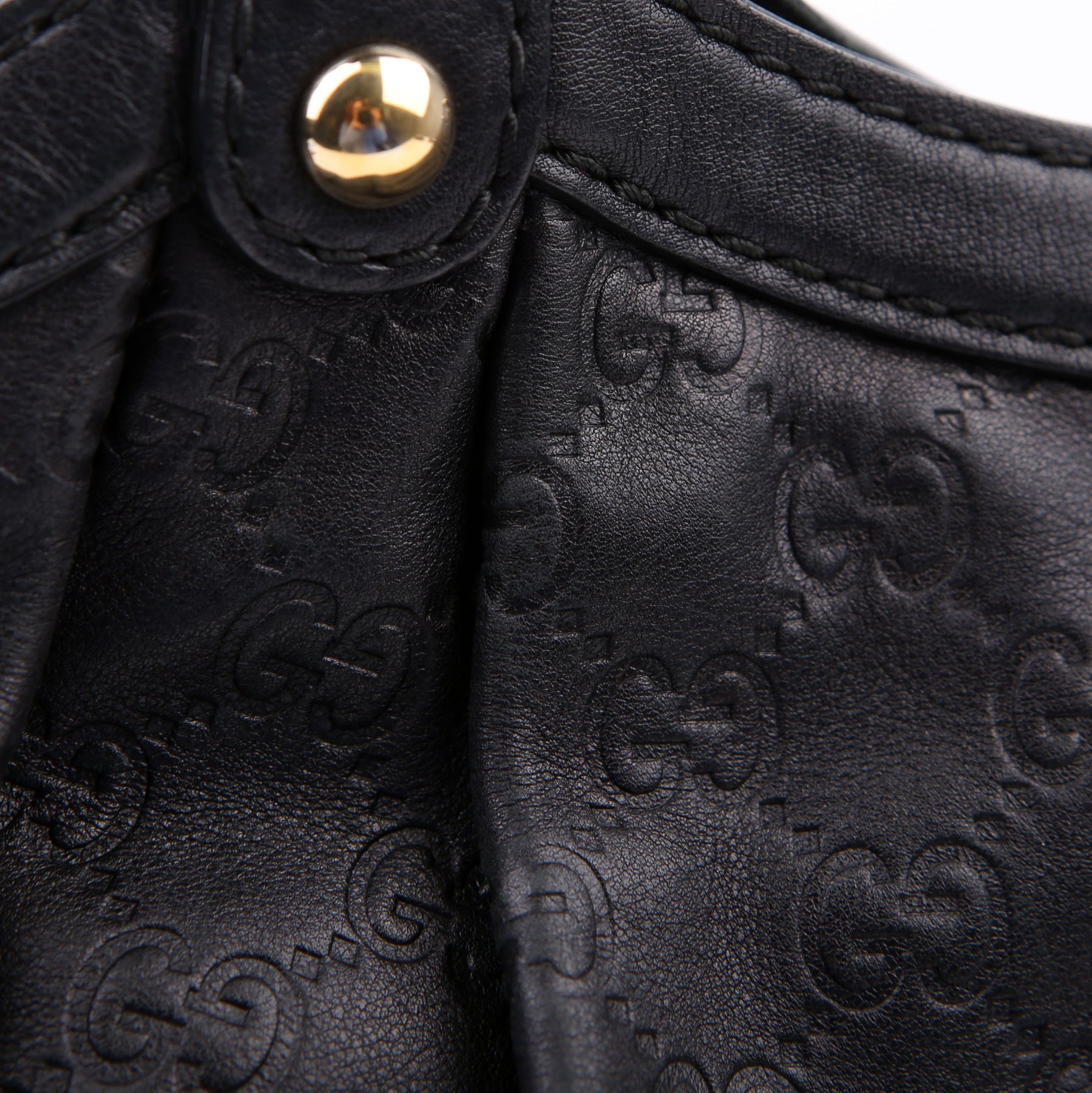 This pre-owned Gucci Sukey Medium is guaranteed 100% authentic. The exterior is in the classic Gucci GG canvas.