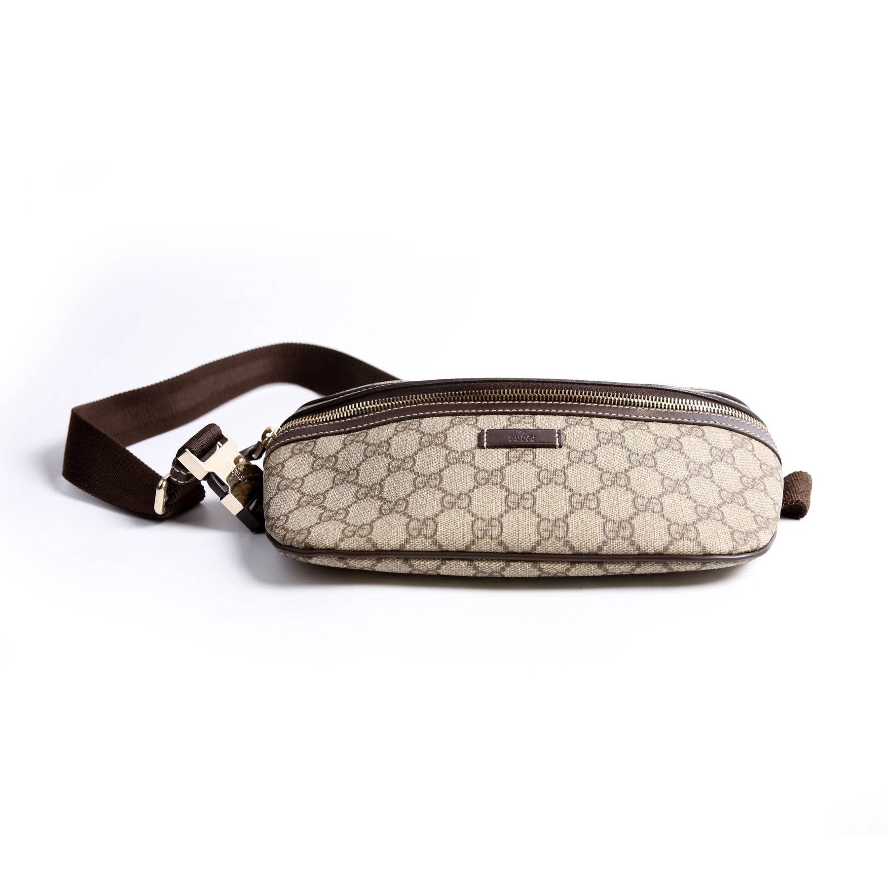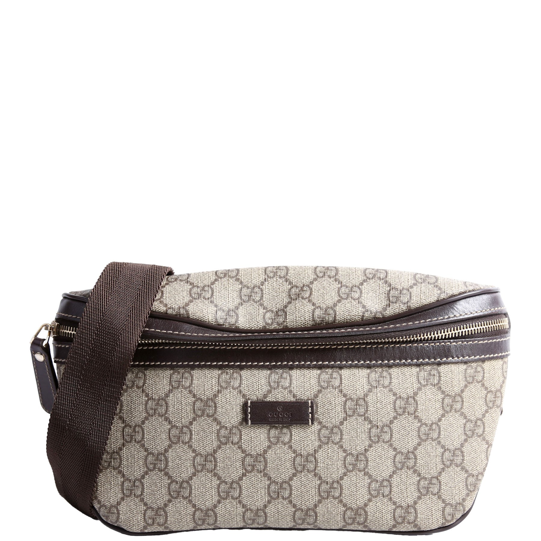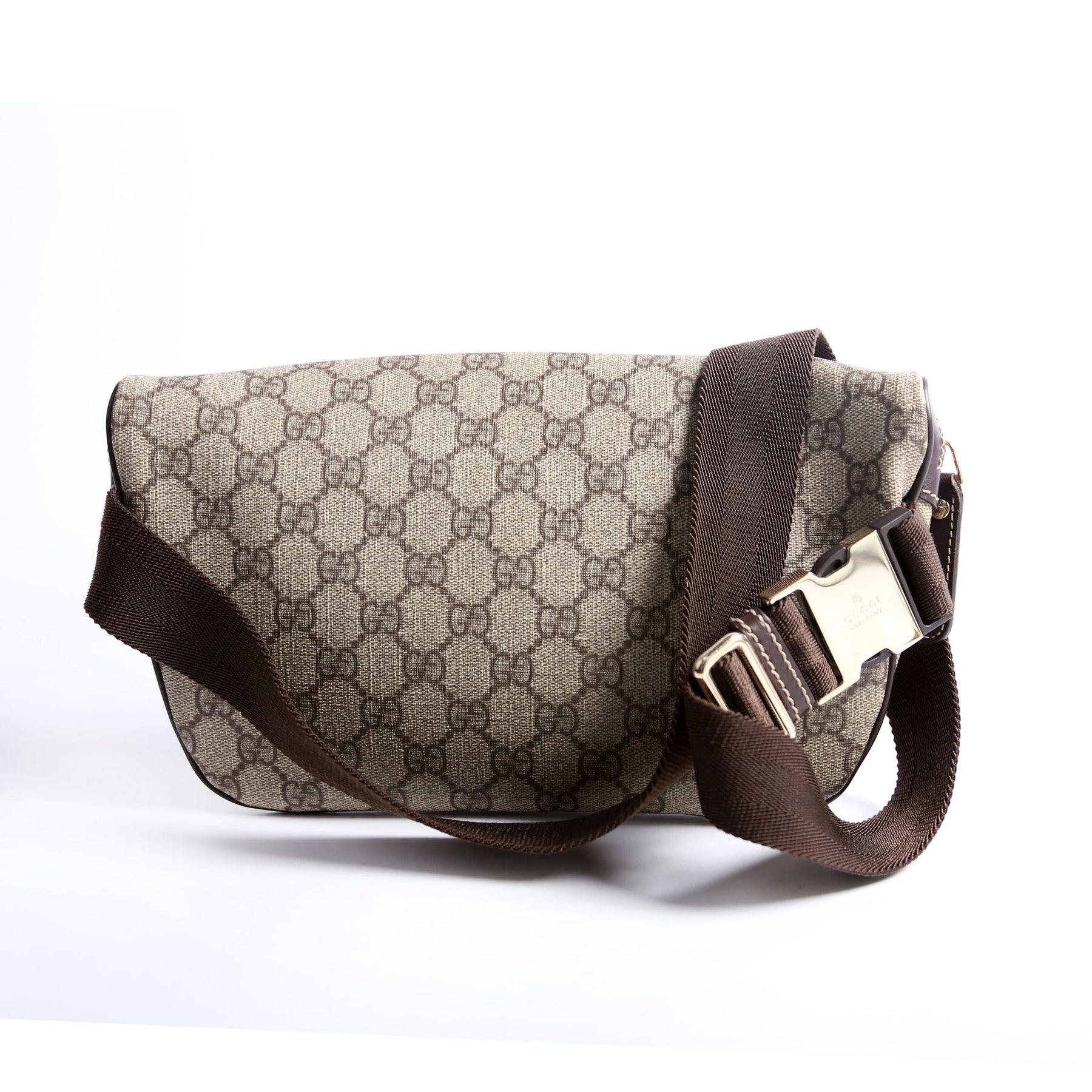 This pre-owned Gucci Belt Bag is guaranteed 100% authentic. The exterior is in the classic Gucci GG Supreme coated canvas.
