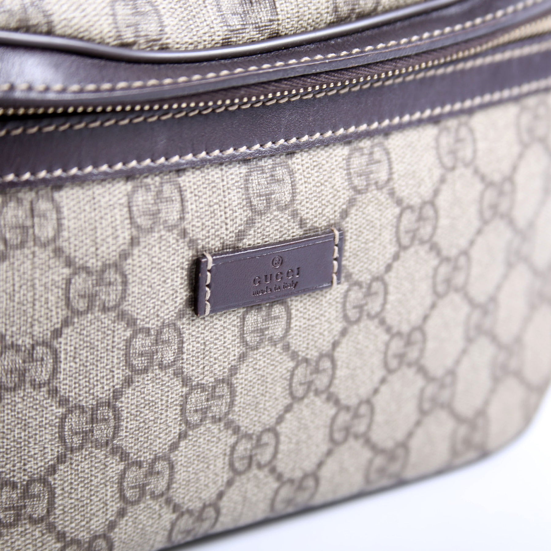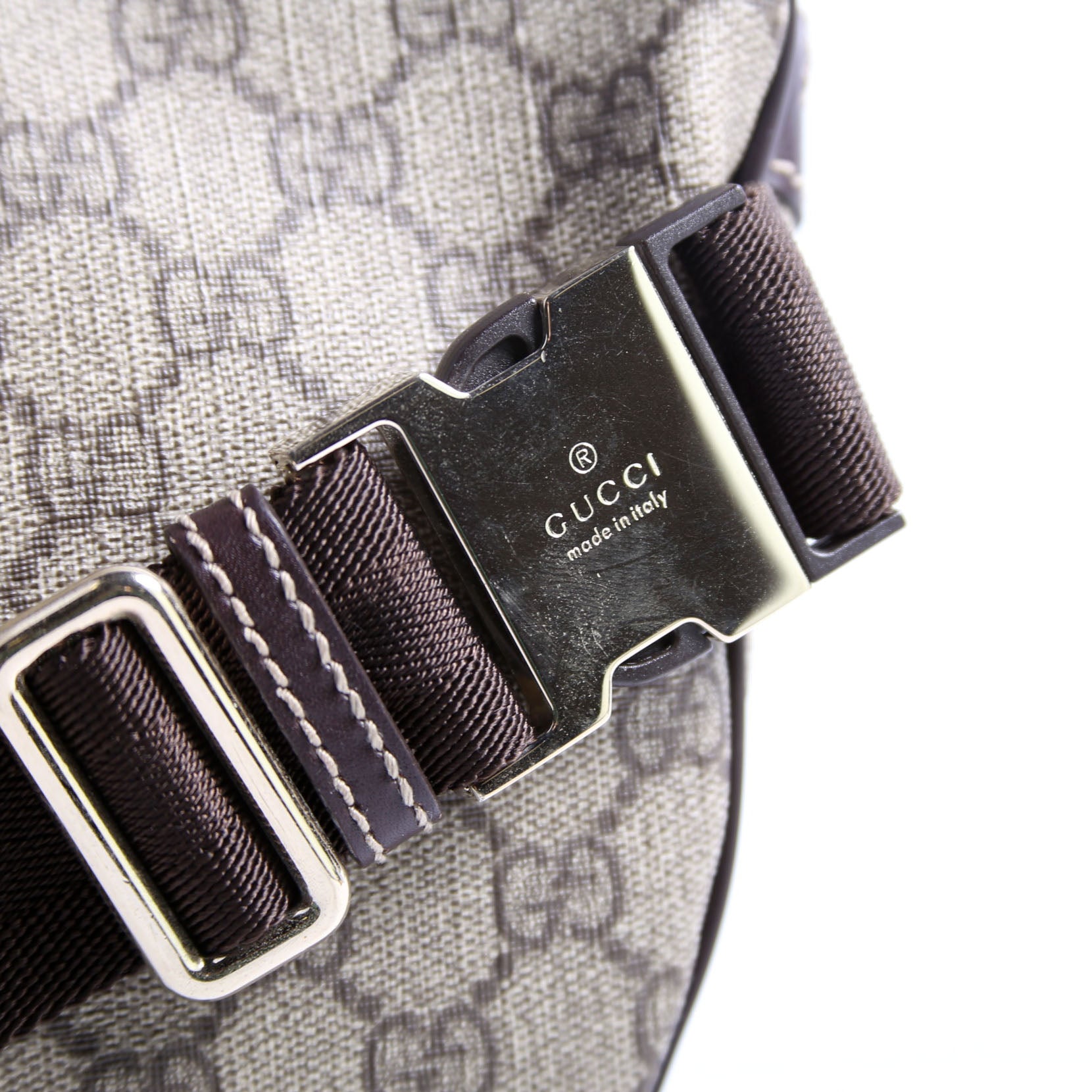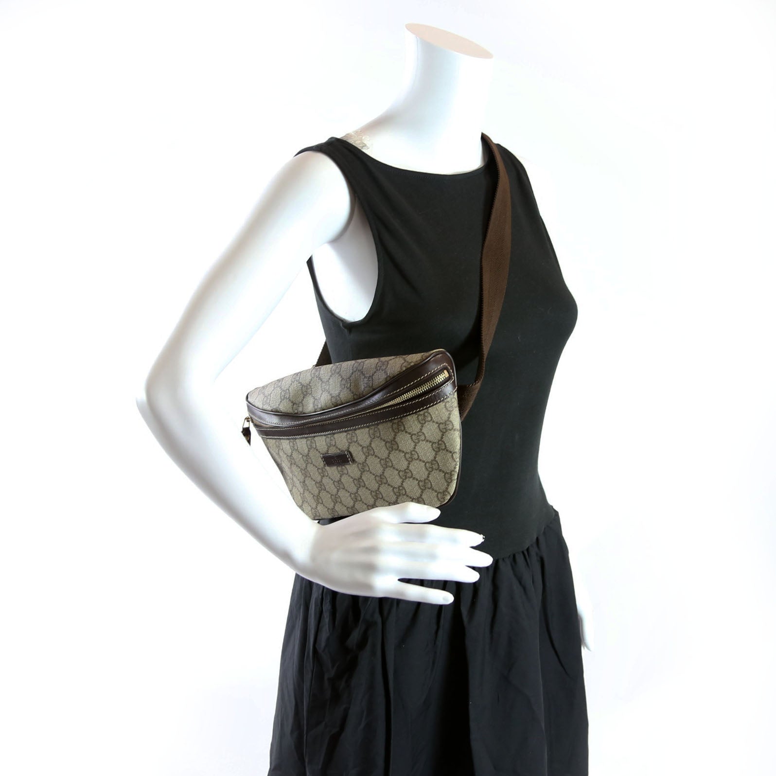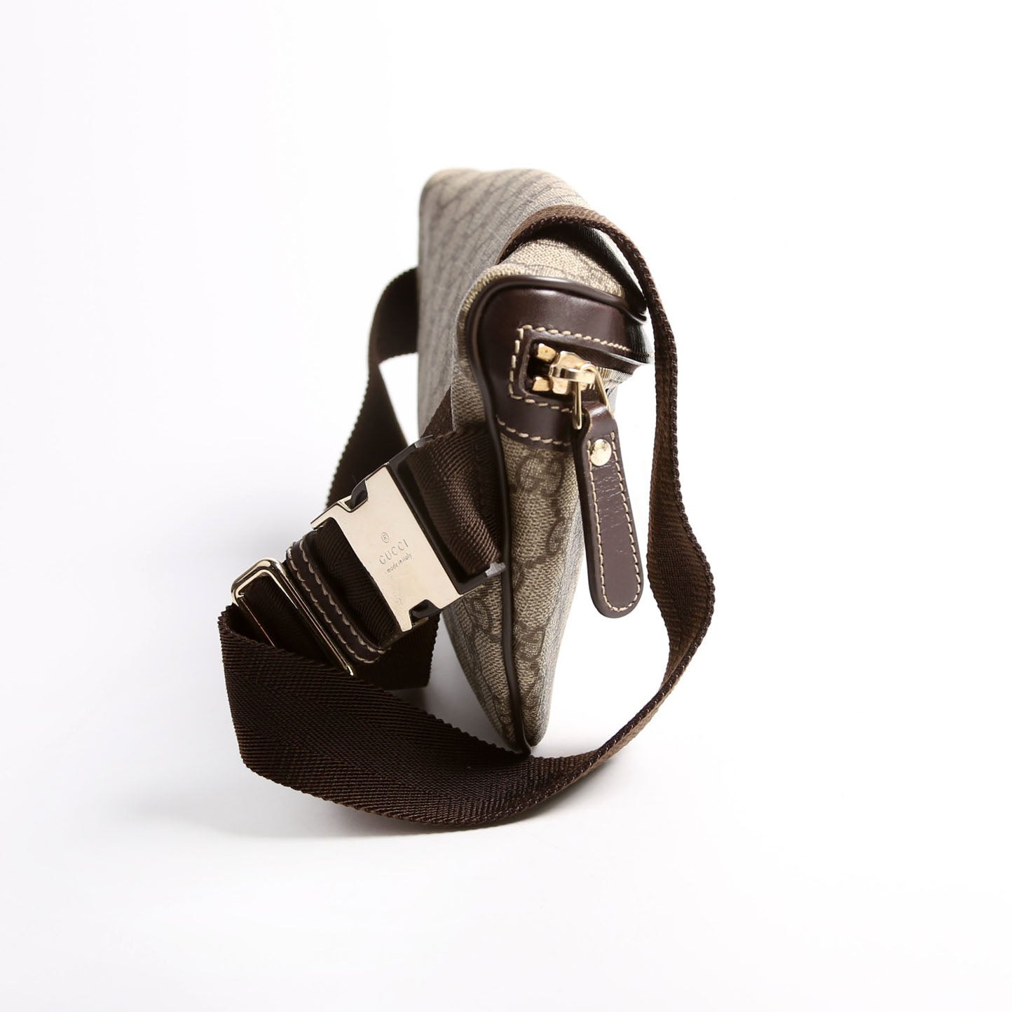 This pre-owned Gucci Belt Bag is guaranteed 100% authentic. The exterior is in the classic Gucci GG Supreme coated canvas.