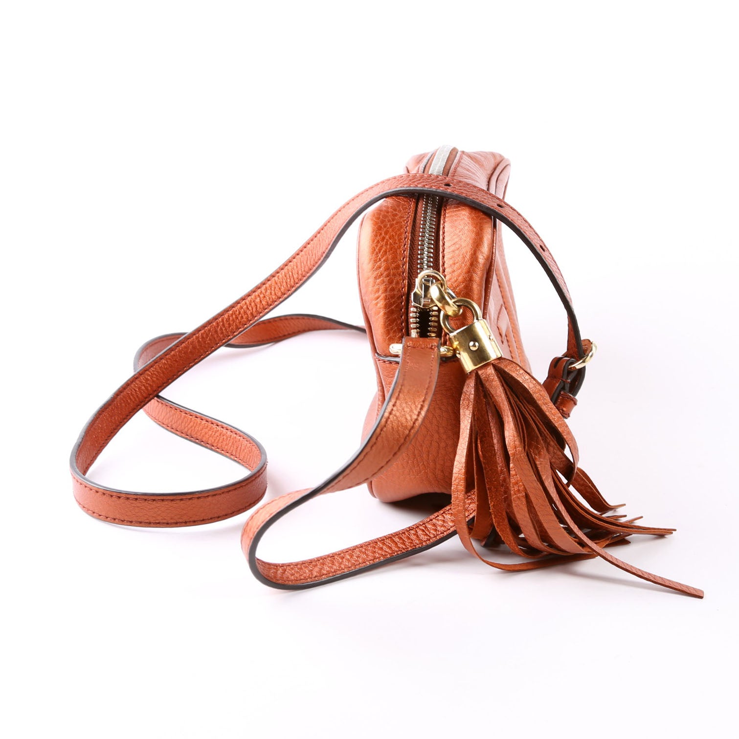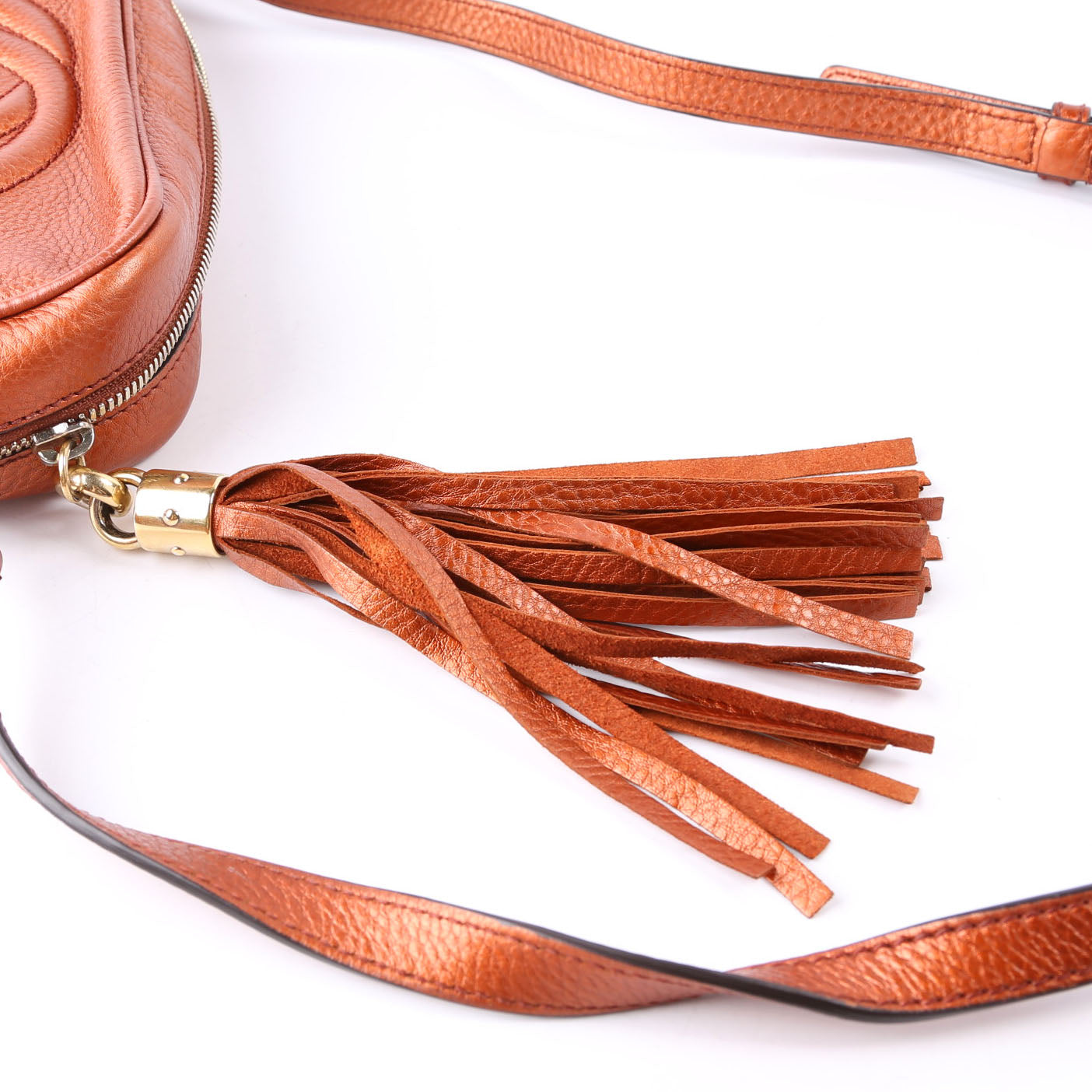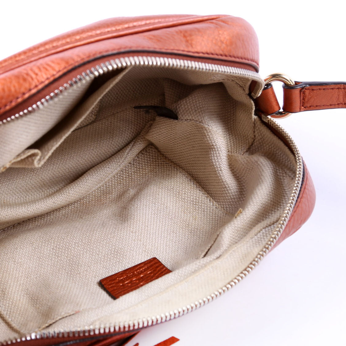 This pre-owned Gucci Soho Disco Crossbody is guaranteed 100% authentic. The exterior is in the classic Gucci Soho leather.