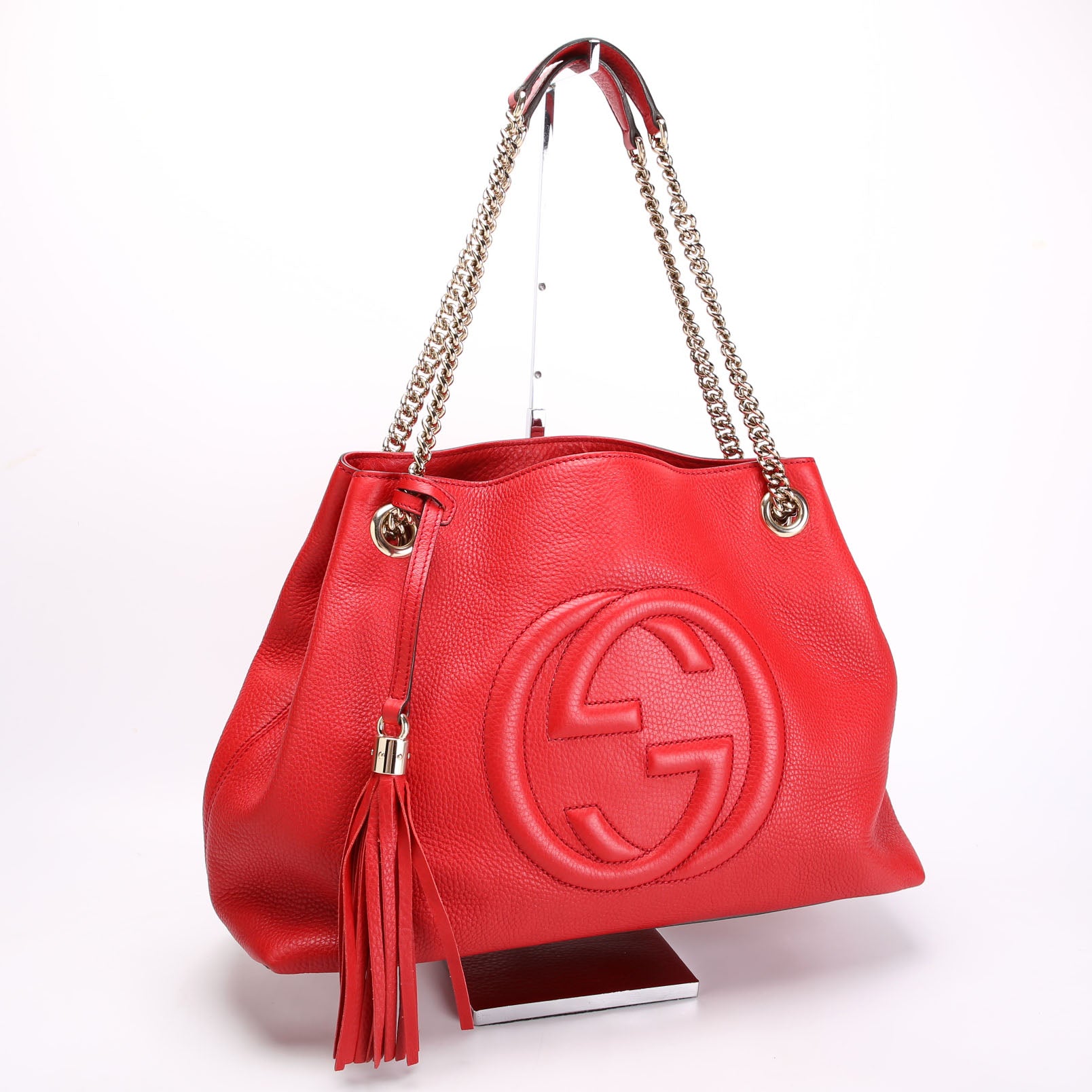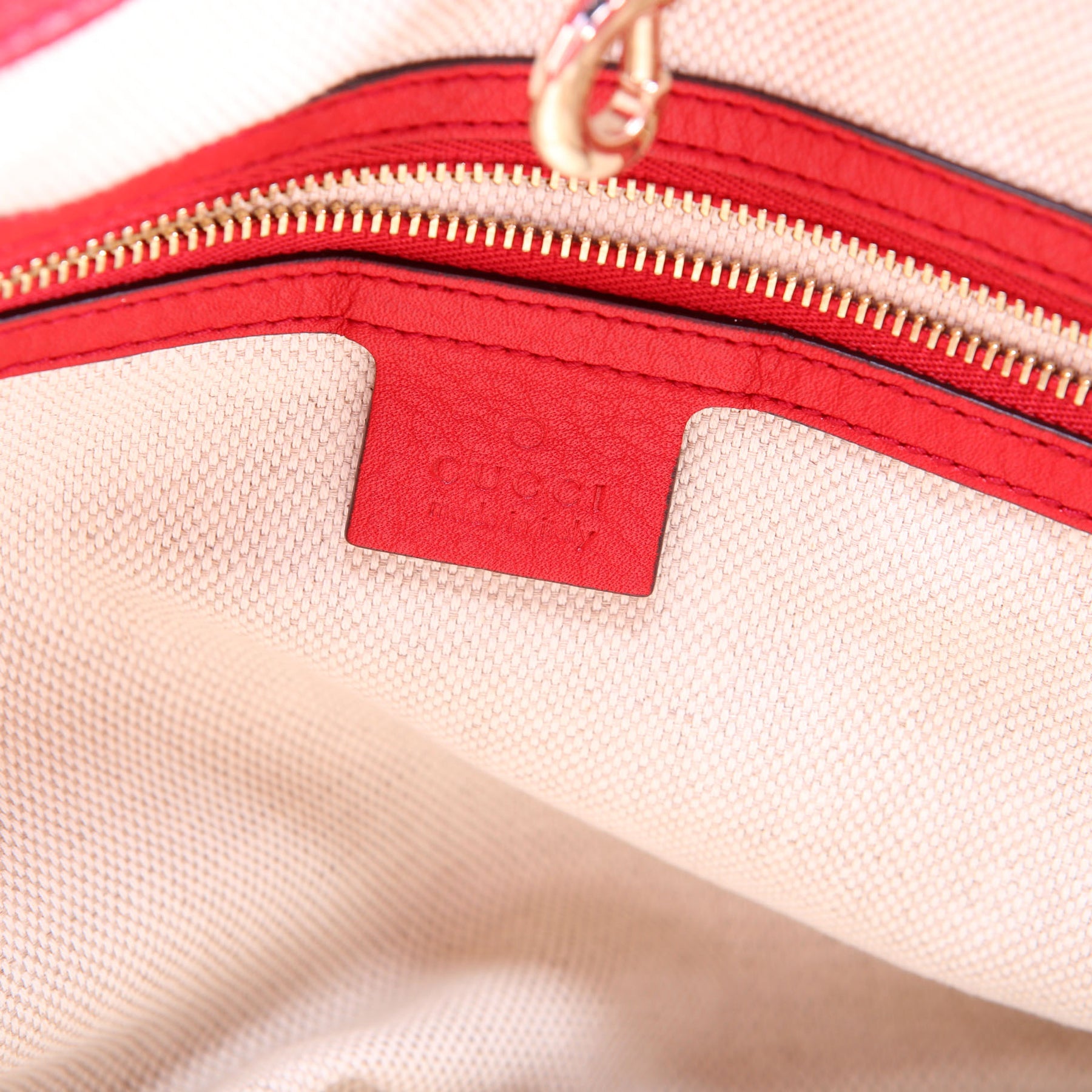This pre-owned Gucci Soho Shoulder Medium is guaranteed 100% authentic. The exterior is in the classic Gucci Pebbled Leather.