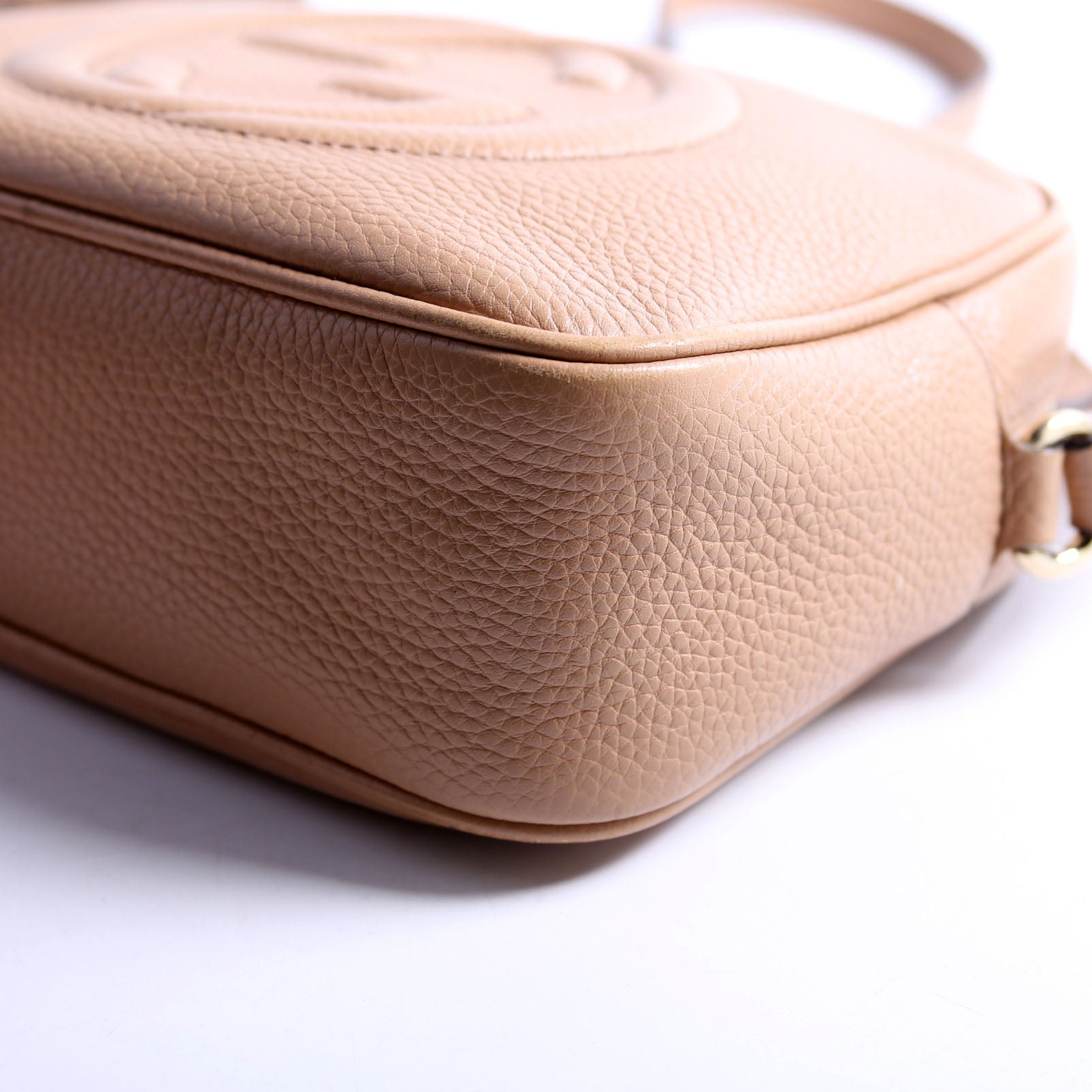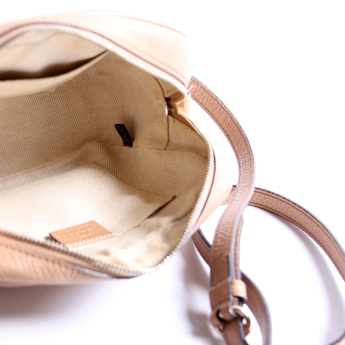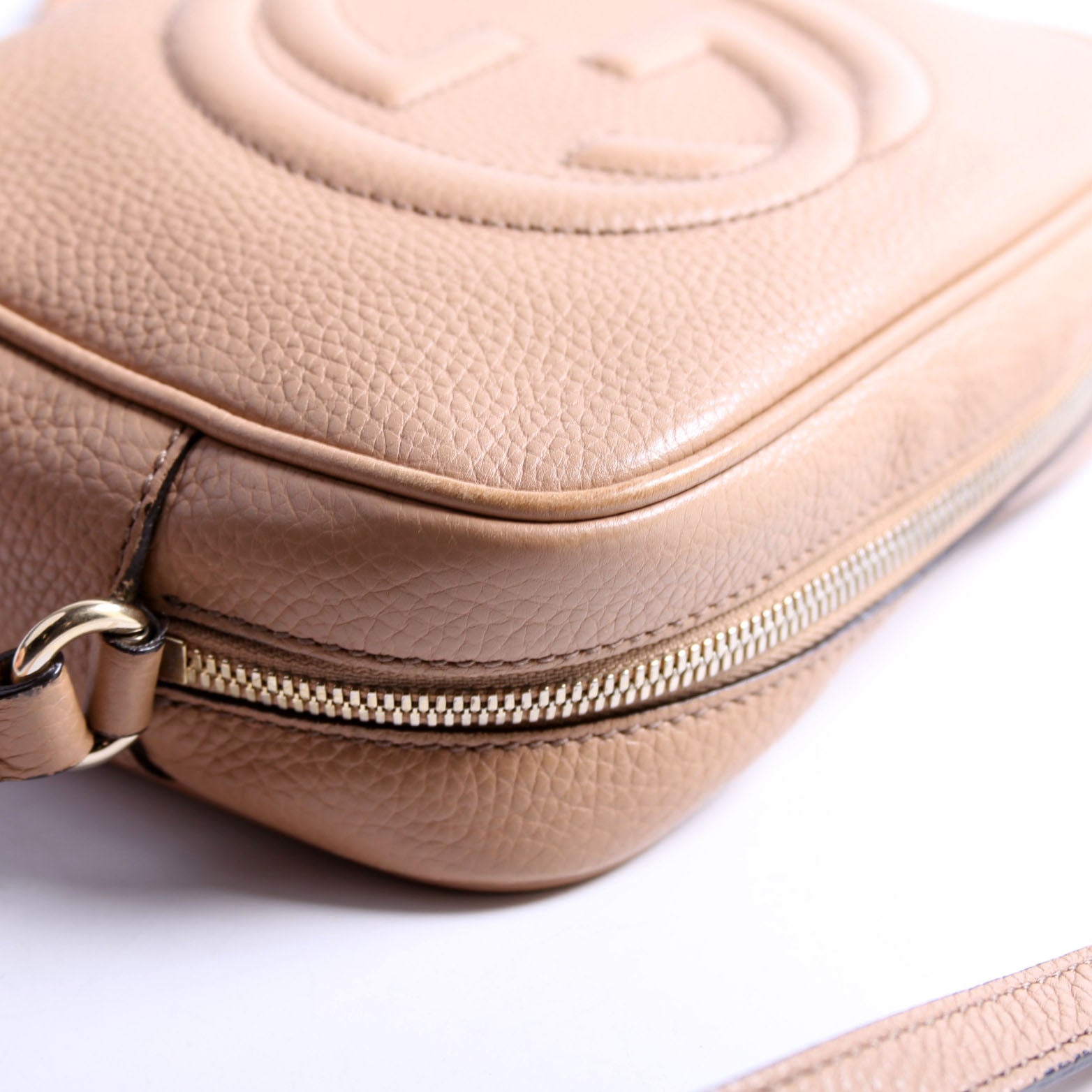 This pre-owned Gucci Mini Soho Disco is guaranteed 100% authentic. The exterior is in the classic Gucci Soho leather.