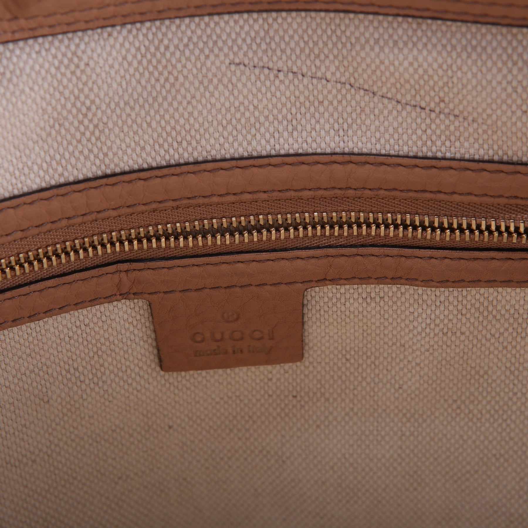 Interior: The interior features two open pockets, and one zipper pocket. The interior has some marks and discoloration.