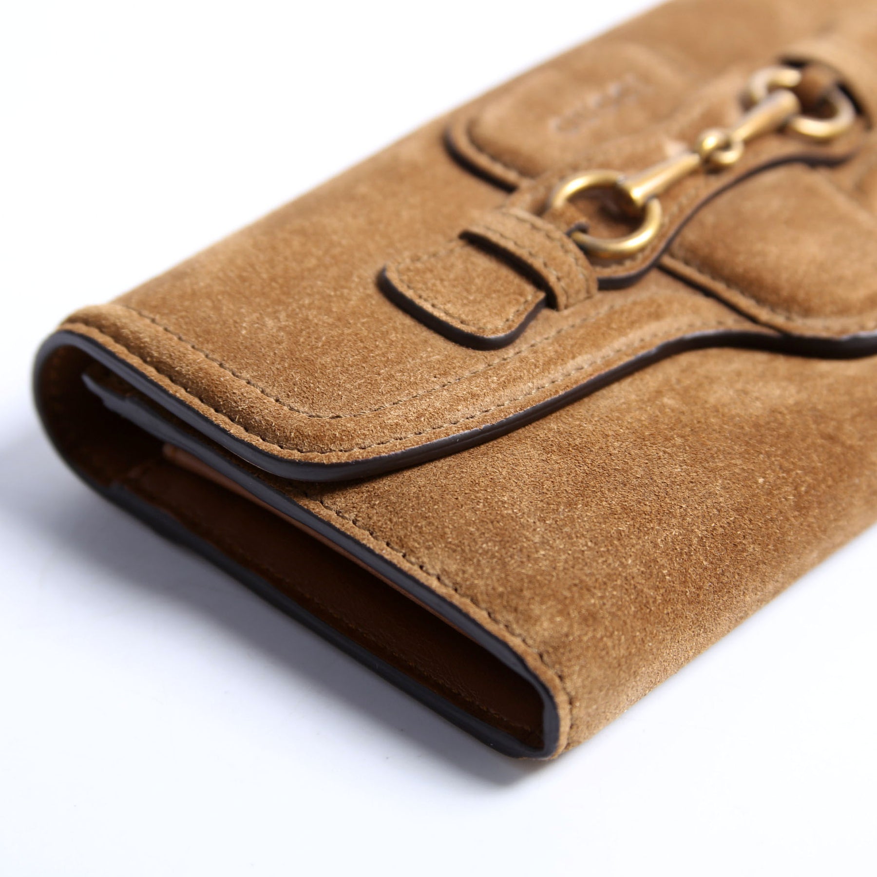 This pre-owned Gucci Horsebit Suede Long Wallet is guaranteed 100% authentic.
