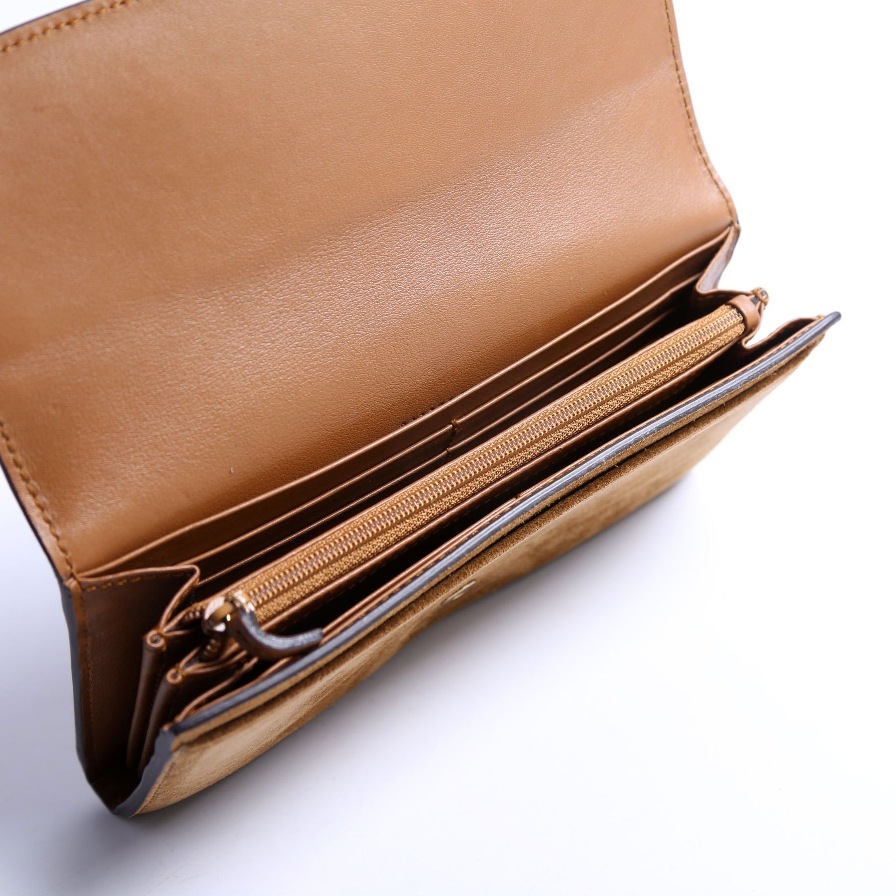 Interior: The interior is clean and free of rips or cracks. It features two bill slot, one zip closure coin pouch, and twelve card slots.