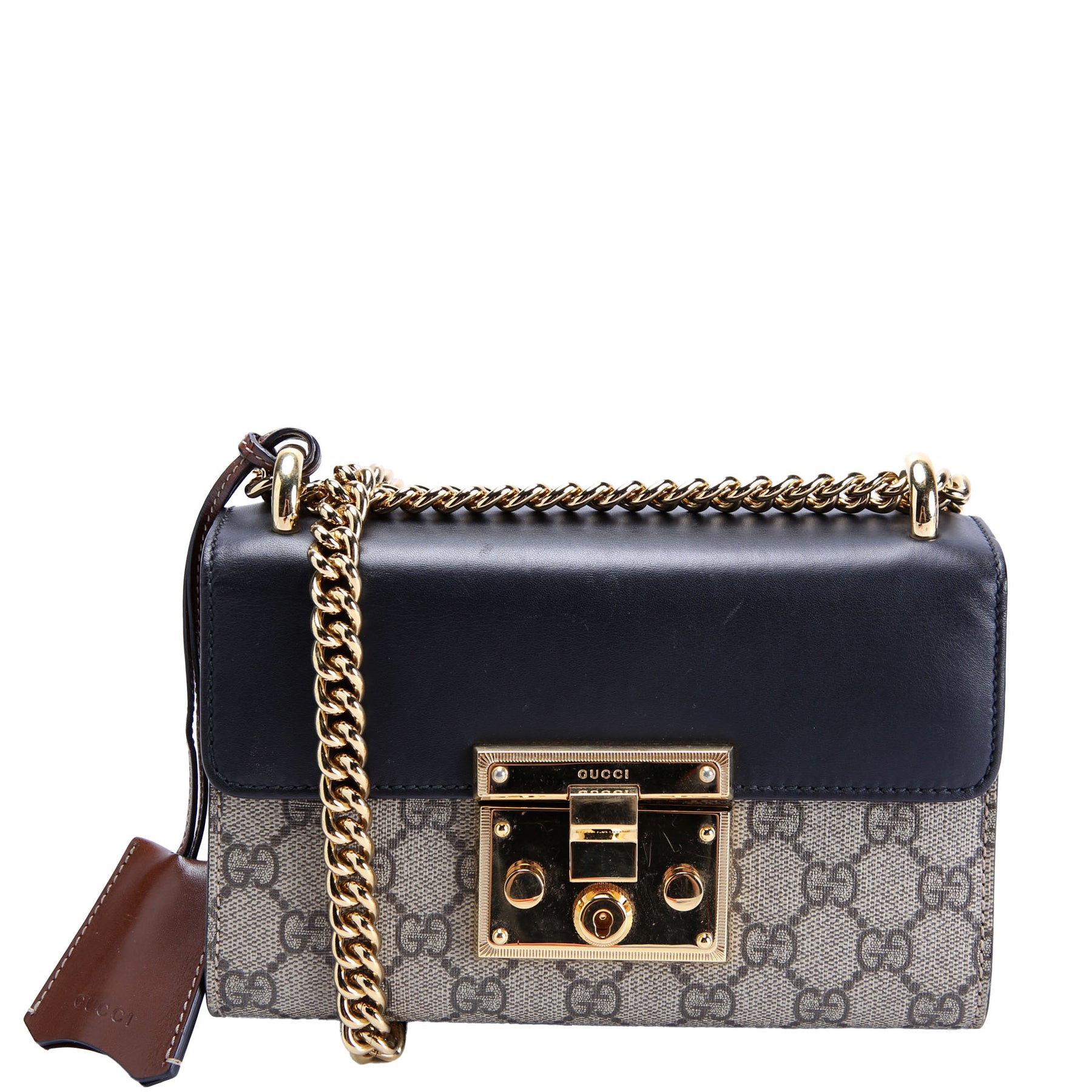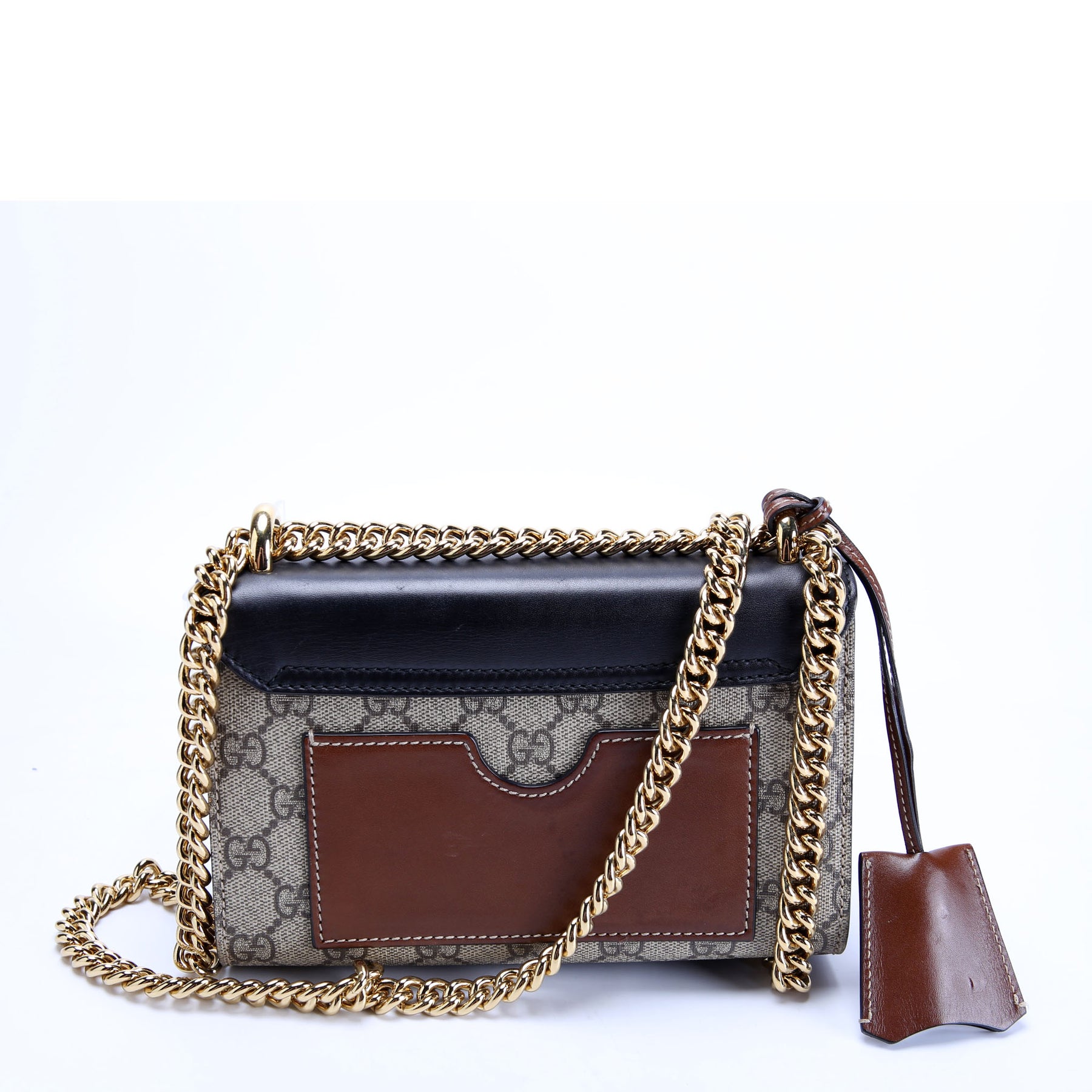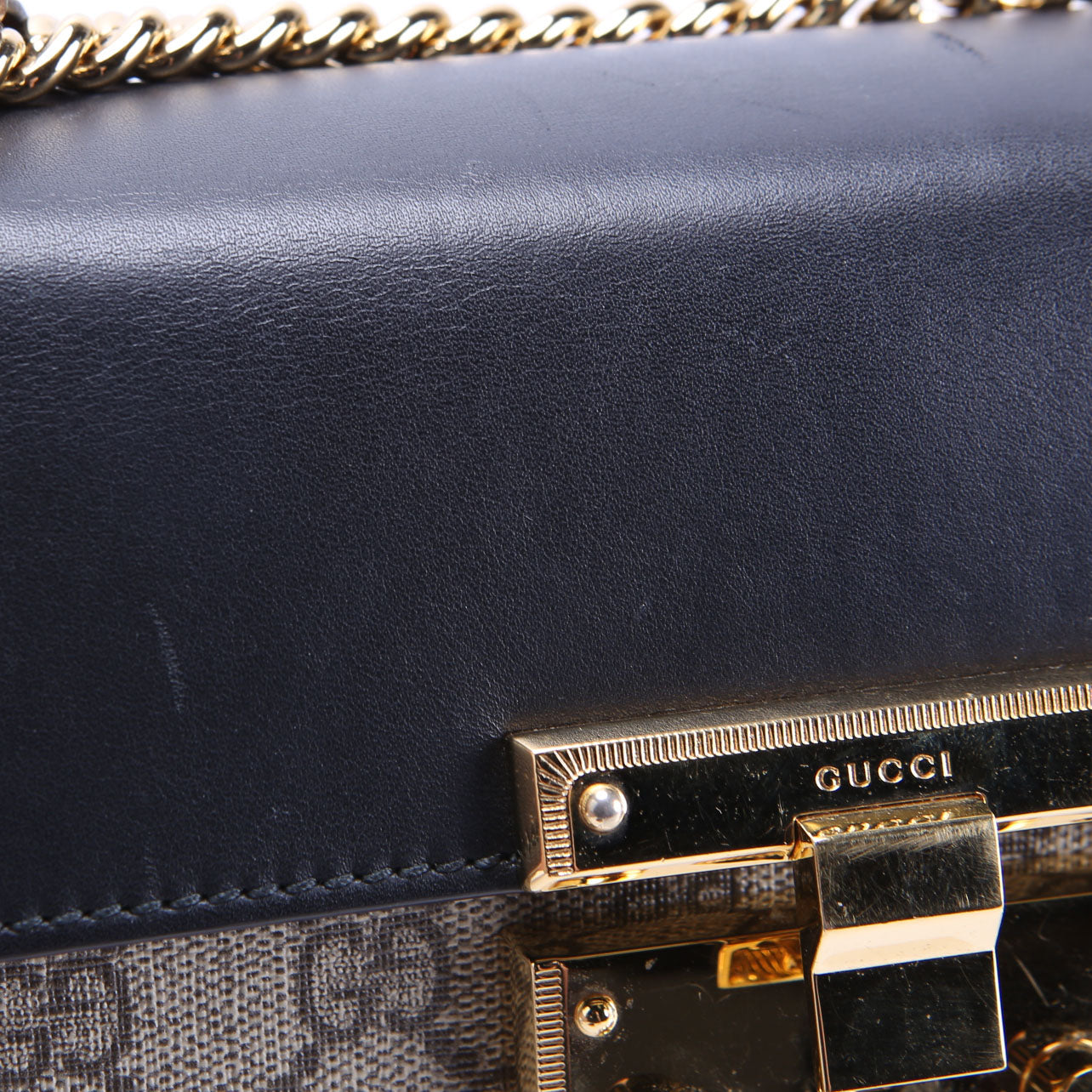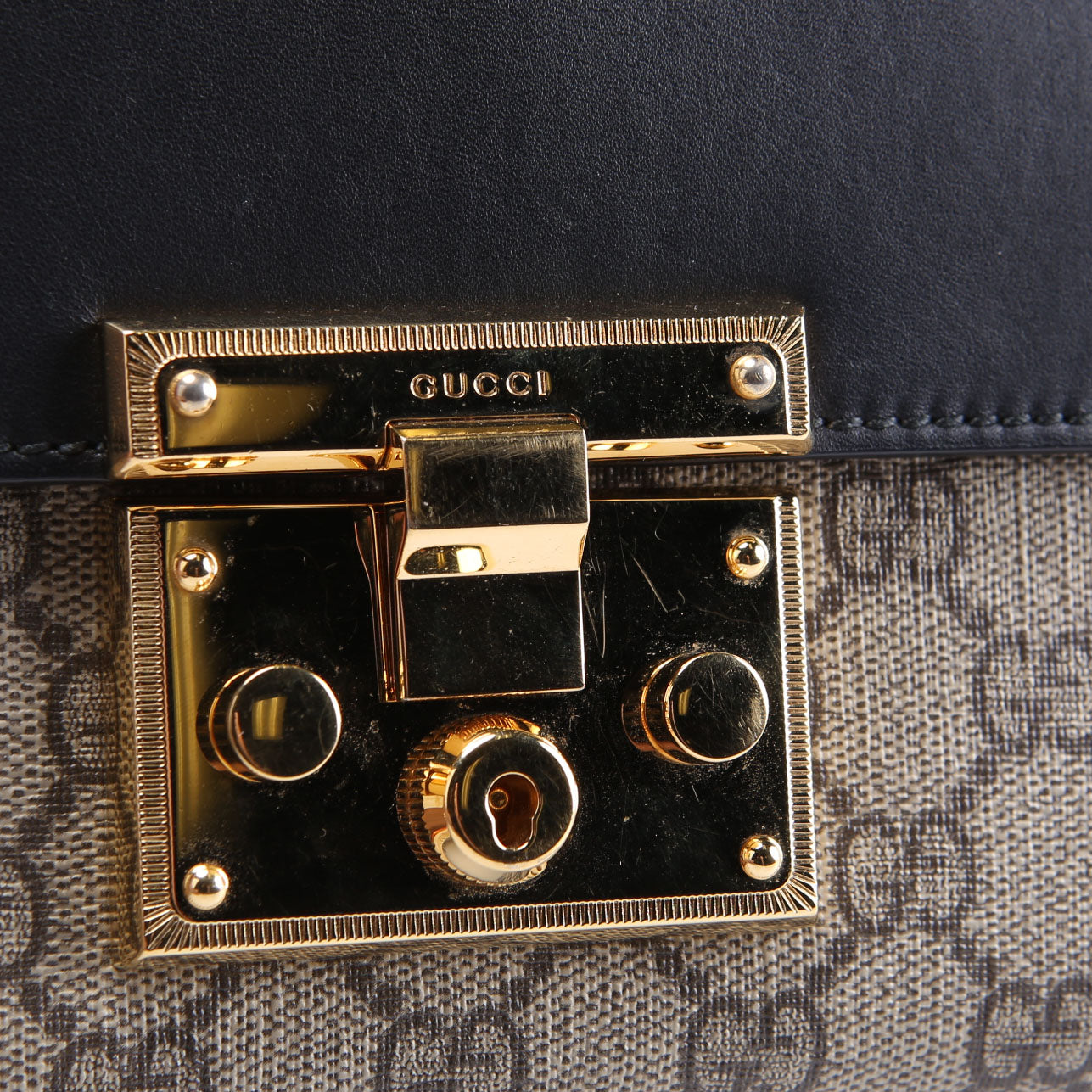 This pre-owned Gucci Padlock Small is guaranteed 100% authentic. The exterior is in the classic Gucci GG Supreme coated canvas.