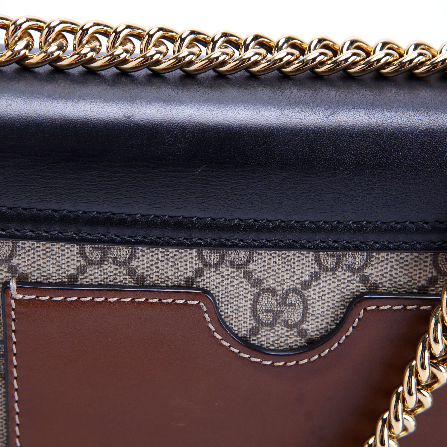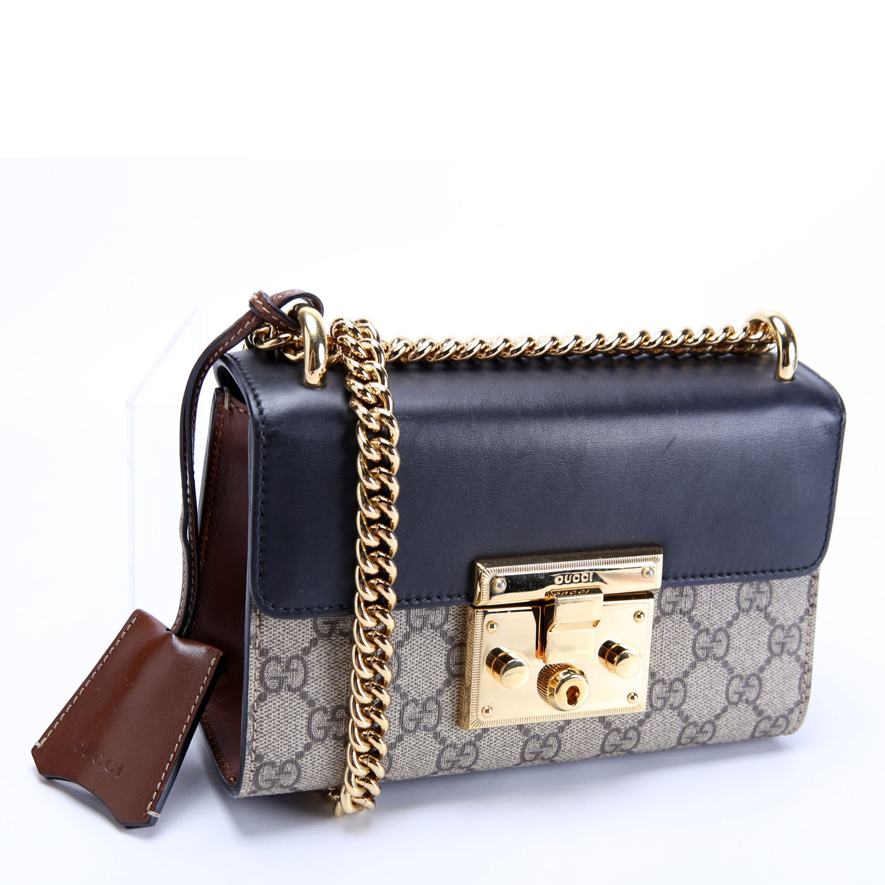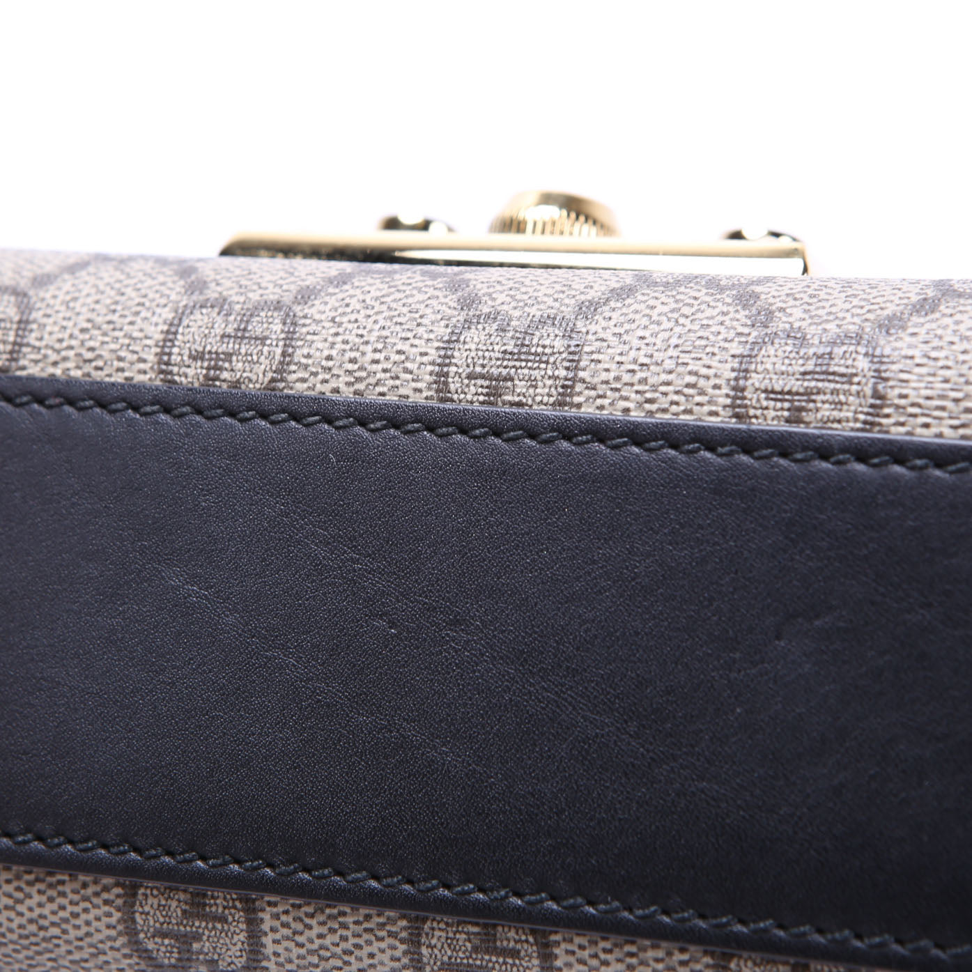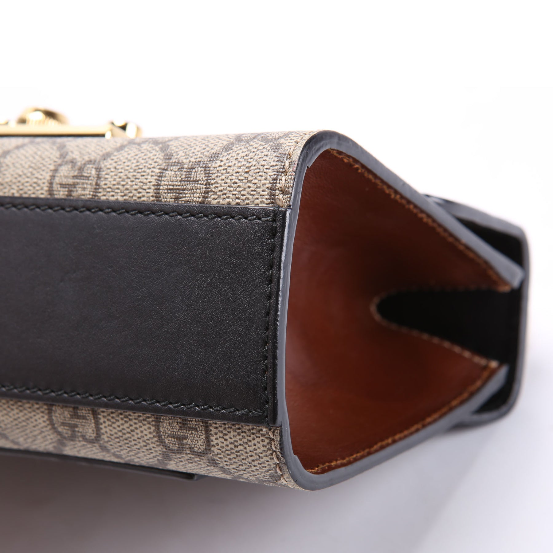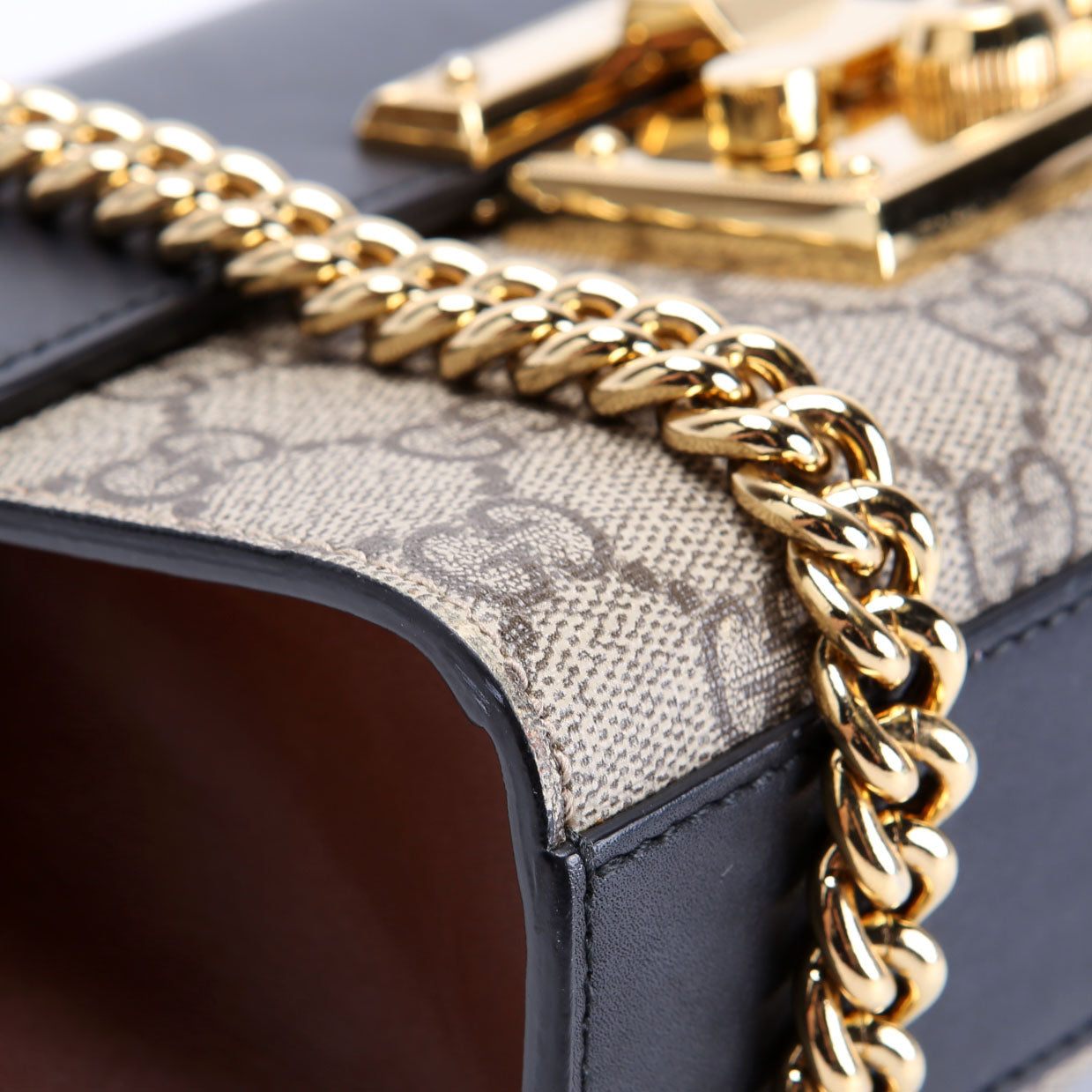 This pre-owned Gucci Padlock Small is guaranteed 100% authentic. The exterior is in the classic Gucci GG Supreme coated canvas.