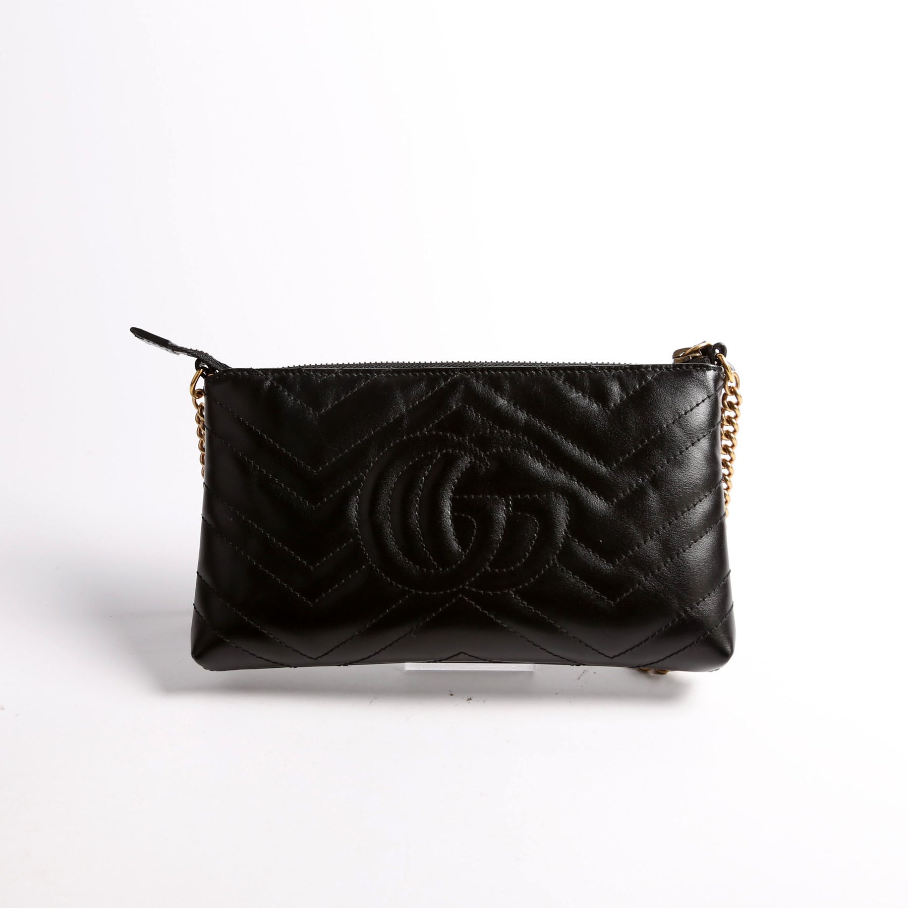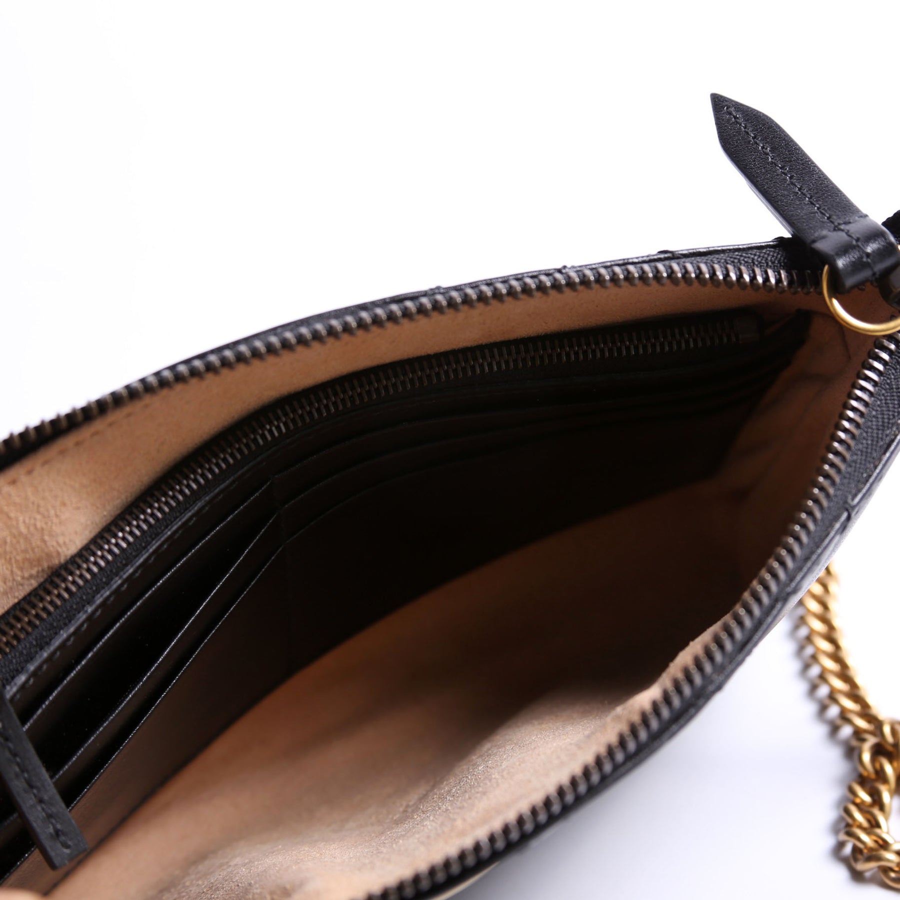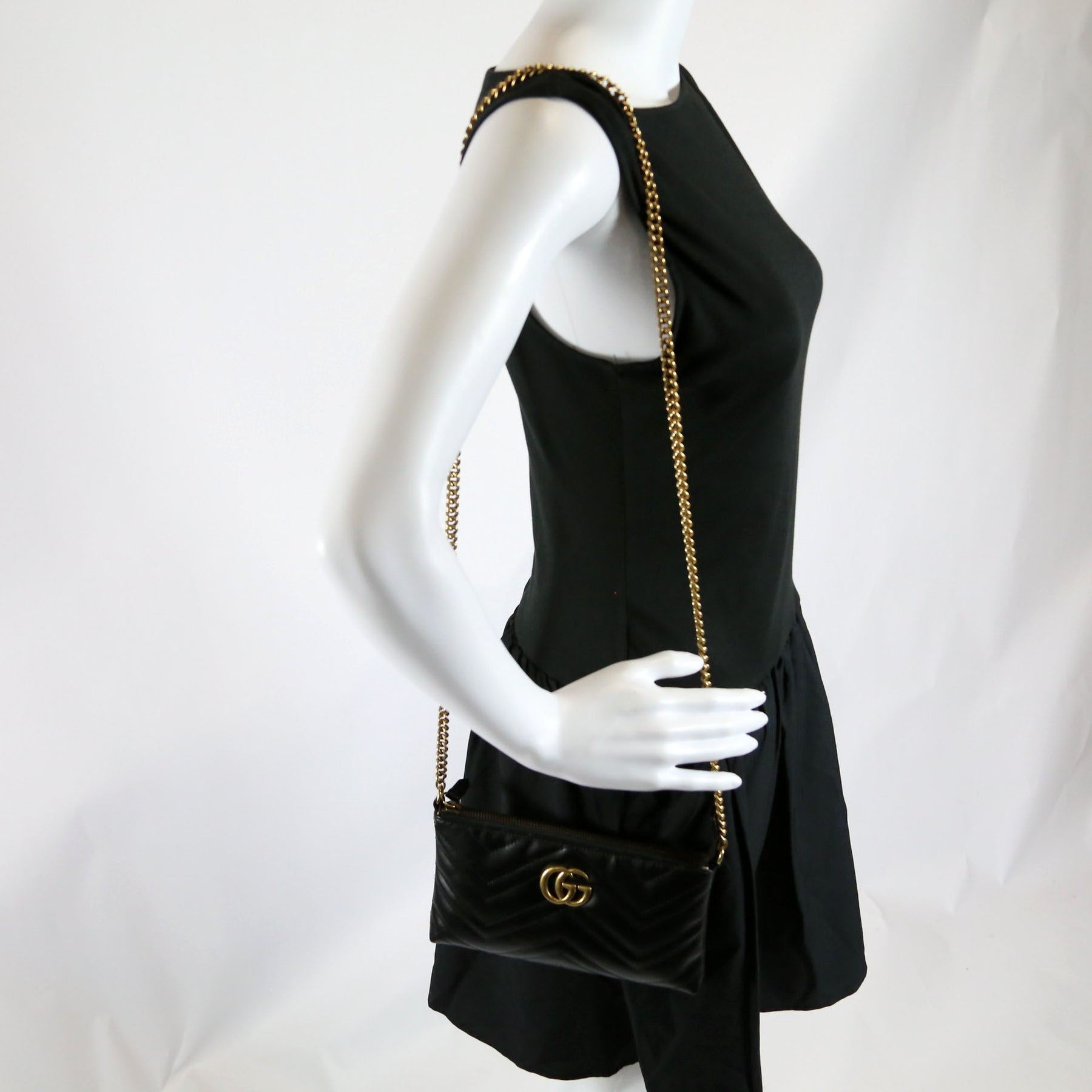 This pre-owned Gucci Marmont Mini Chain Bag is guaranteed 100% authentic. The exterior is in the classic Gucci Matelasse Chevron Leather.