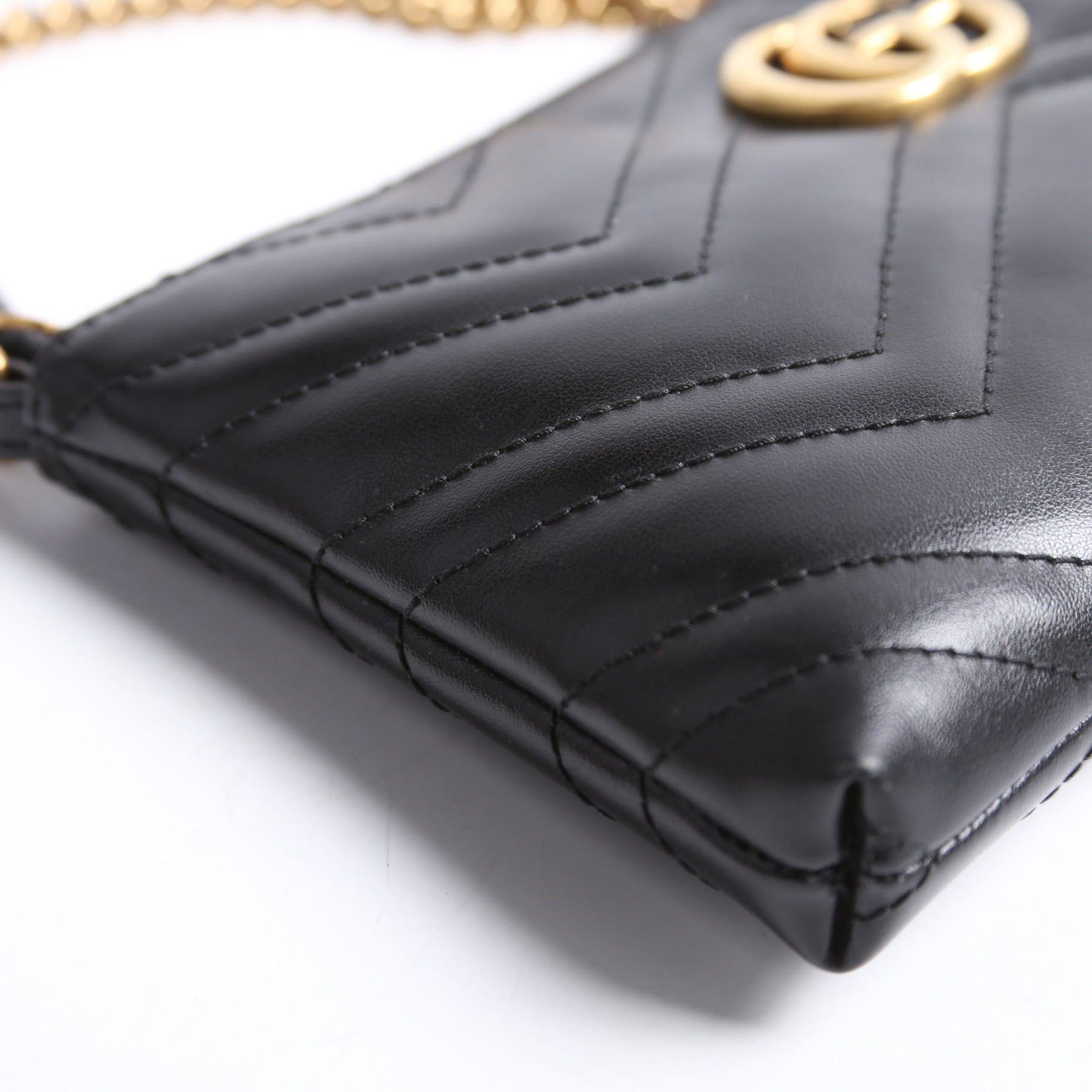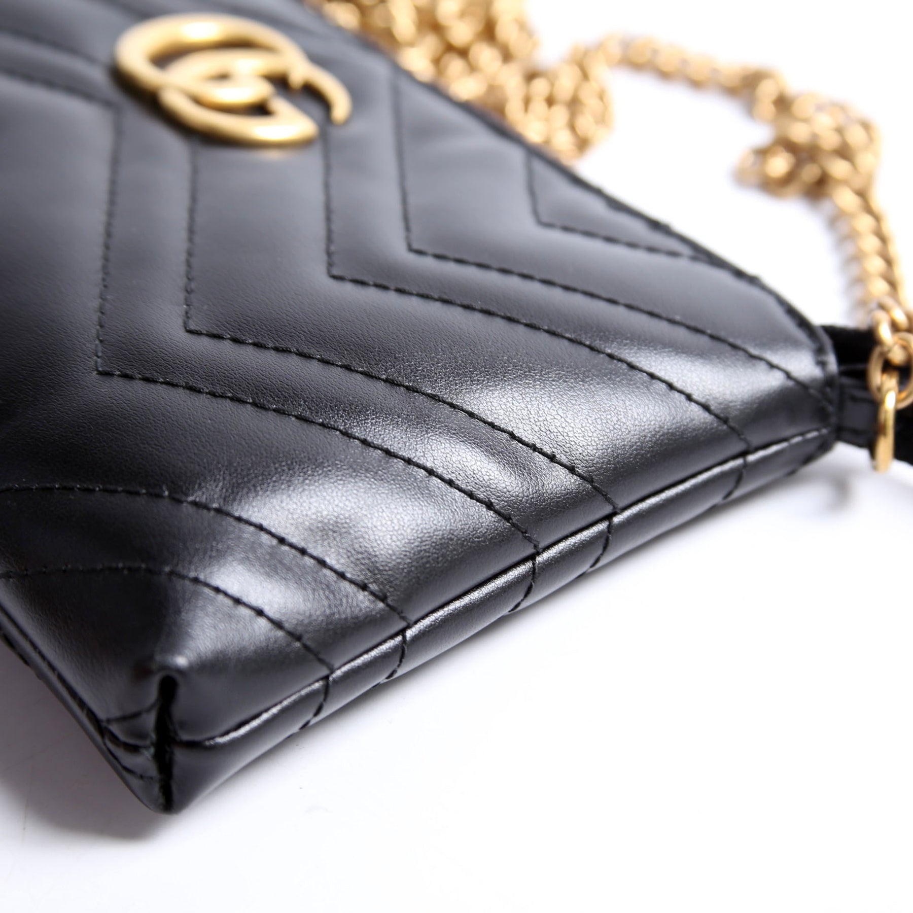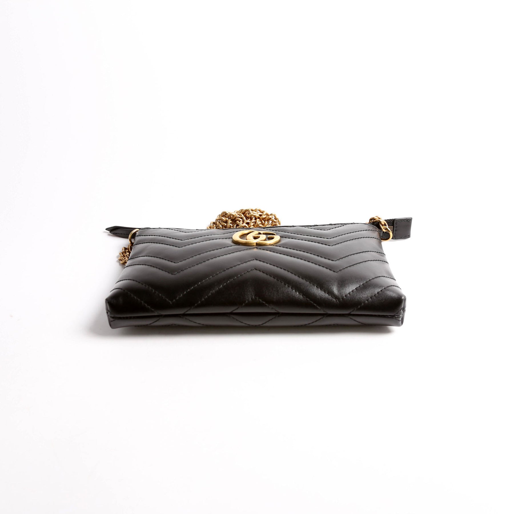 This pre-owned Gucci Marmont Mini Chain Bag is guaranteed 100% authentic. The exterior is in the classic Gucci Matelasse Chevron Leather.