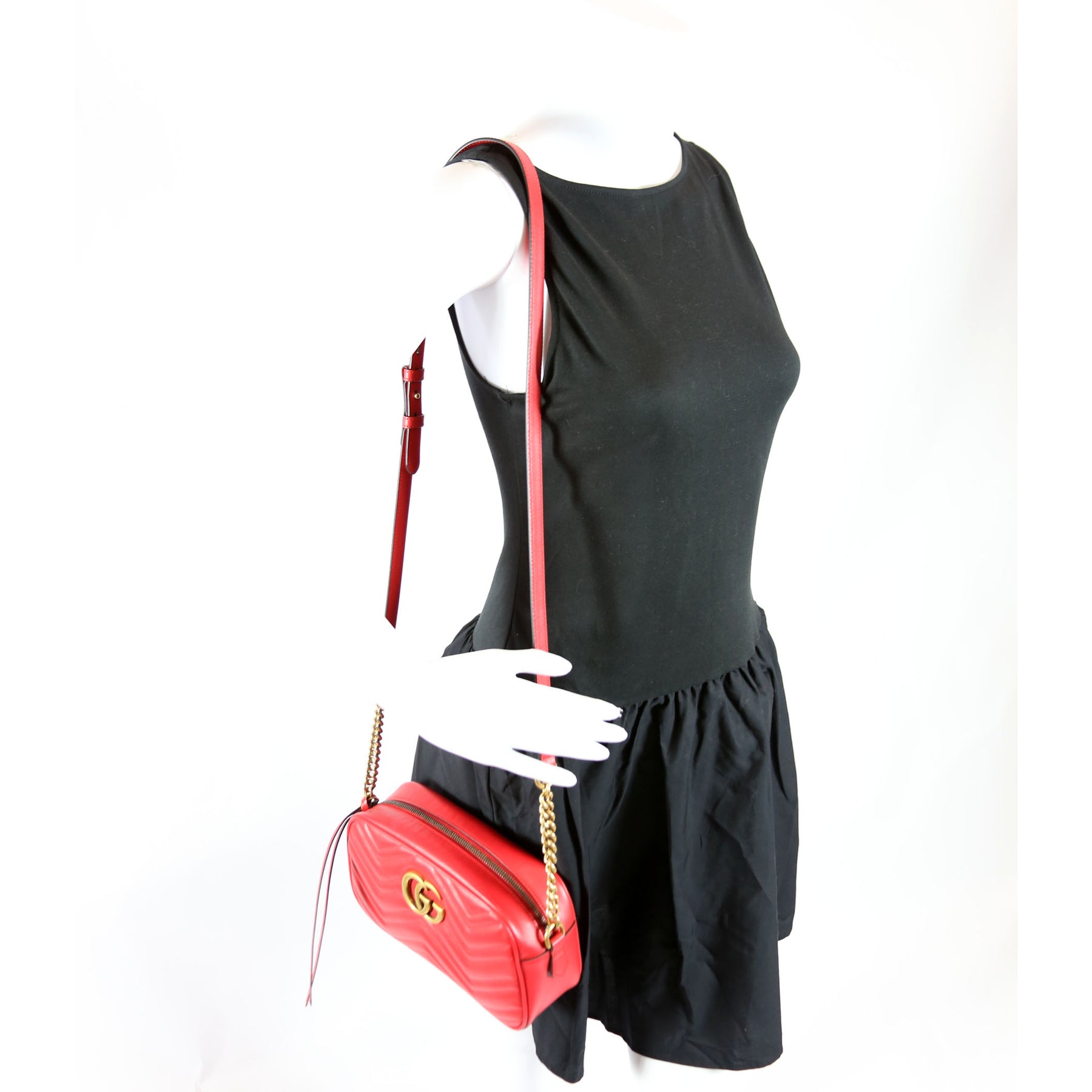 This pre-owned Gucci Marmont Small Leather Camera is guaranteed 100% authentic.