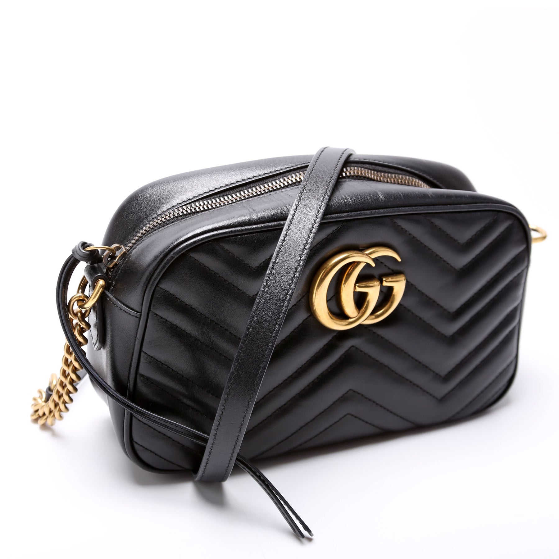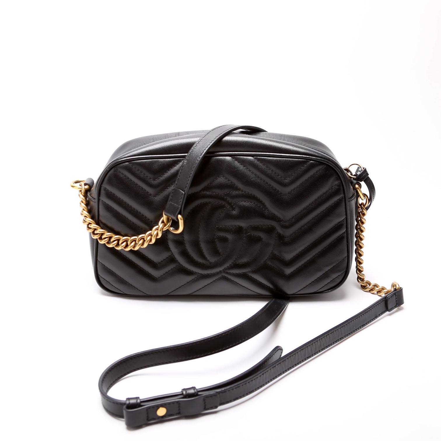 This pre-owned Gucci Marmont Small Leather Camera is guaranteed 100% authentic.