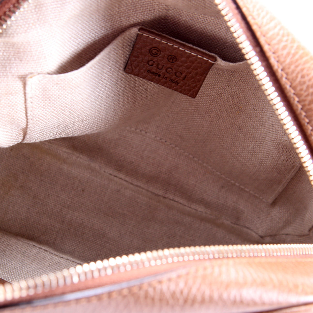 Hardware: The zipper operates properly and runs smoothly. The hardware shows light scratches.