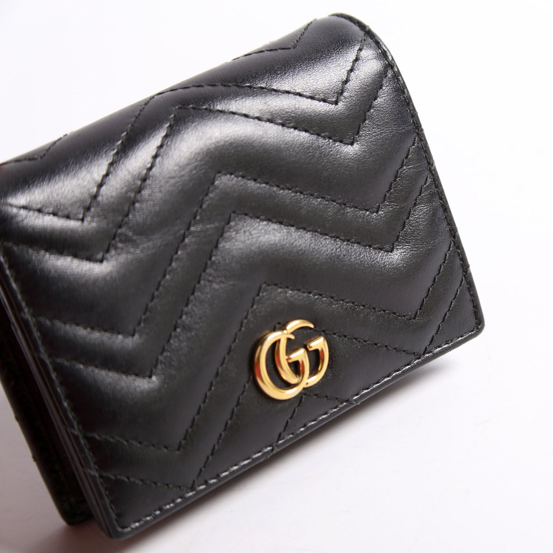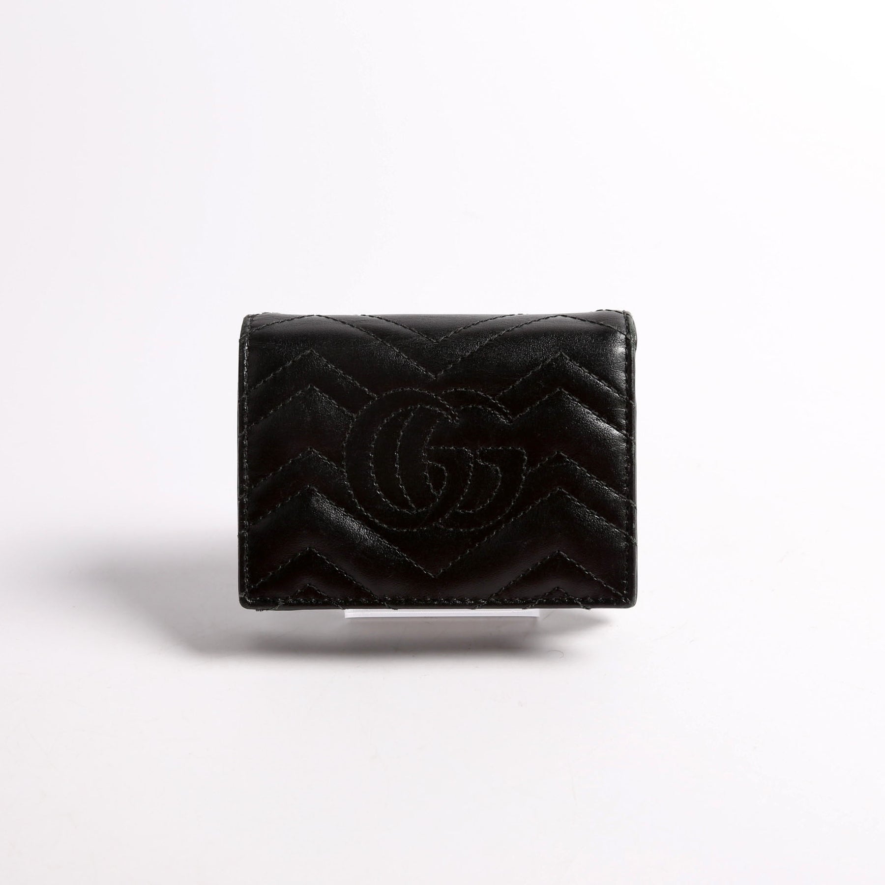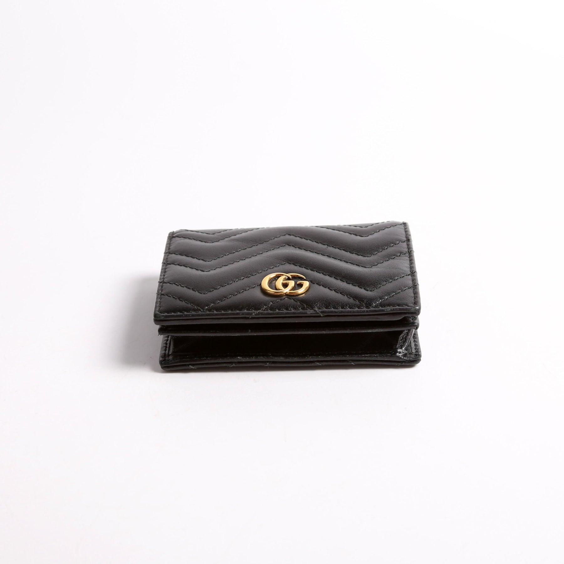 This pre-owned Gucci GG Marmont Card Case is guaranteed 100% authentic. The exterior is in the classic Gucci Marmont leather.