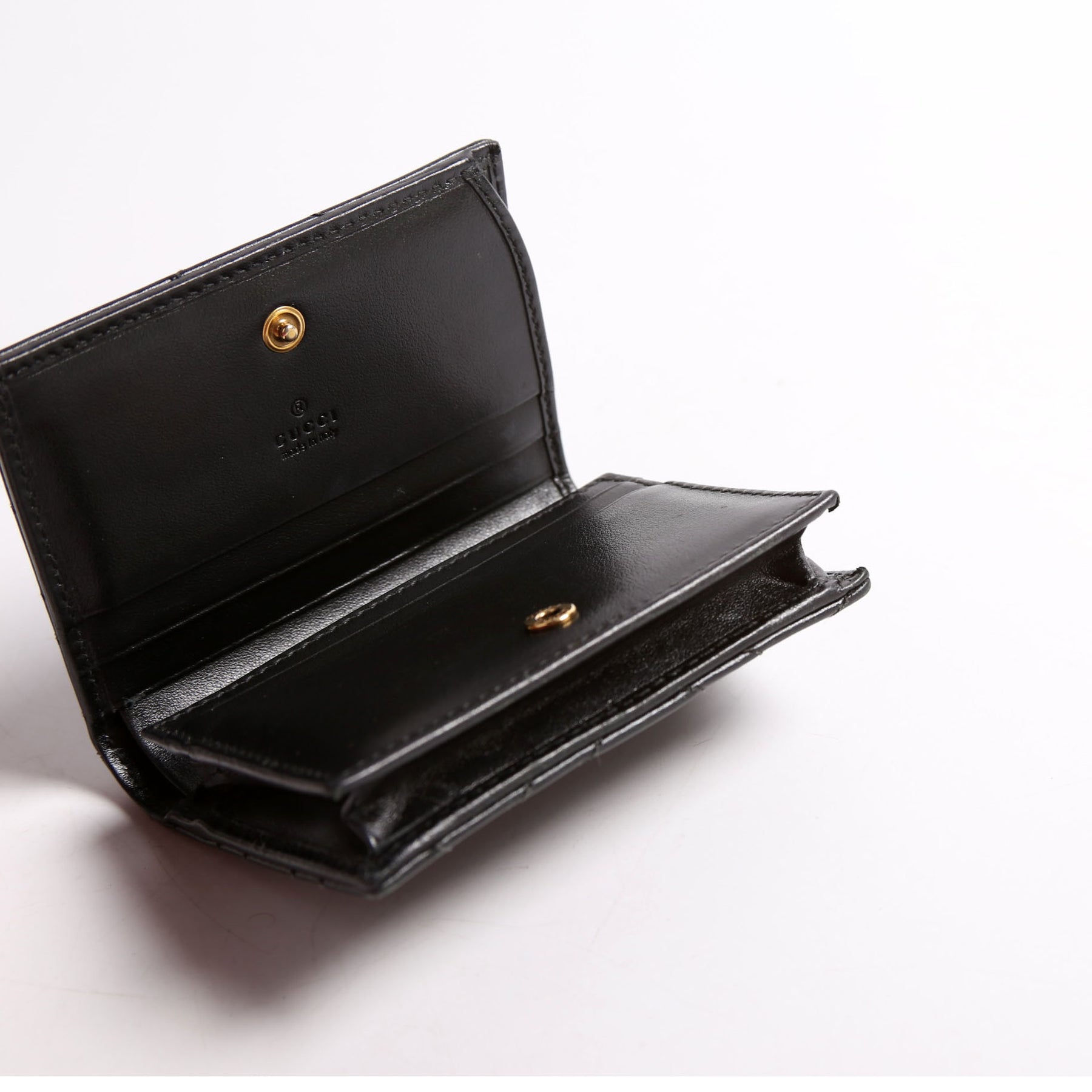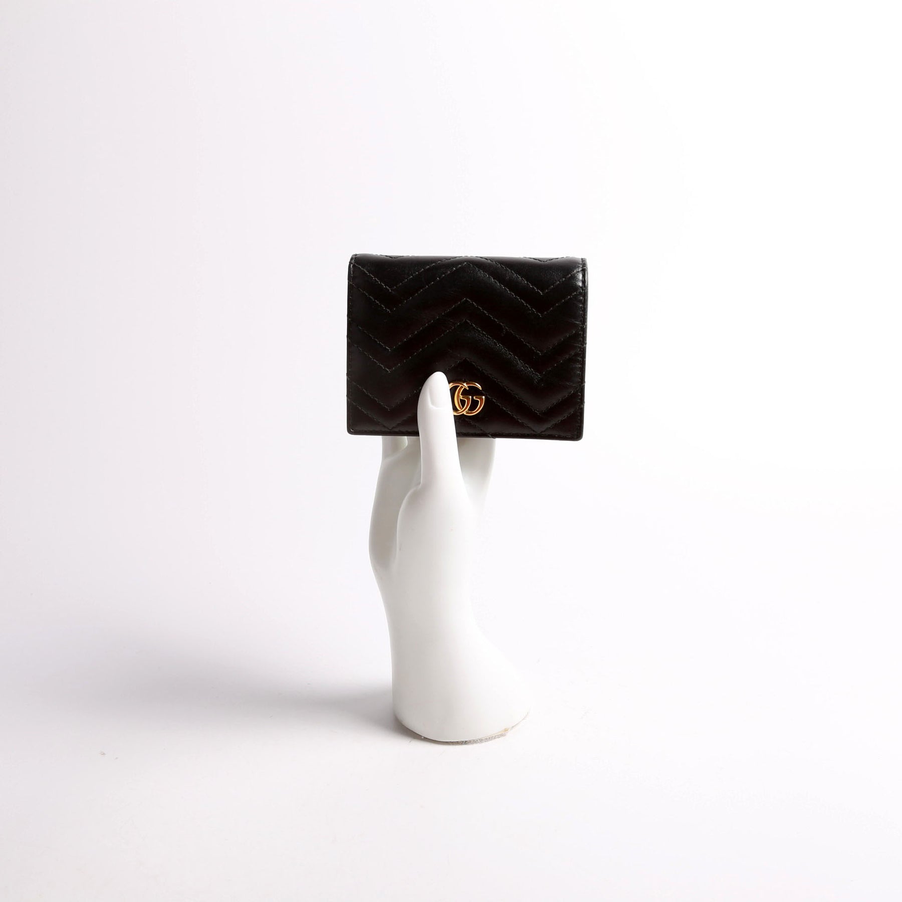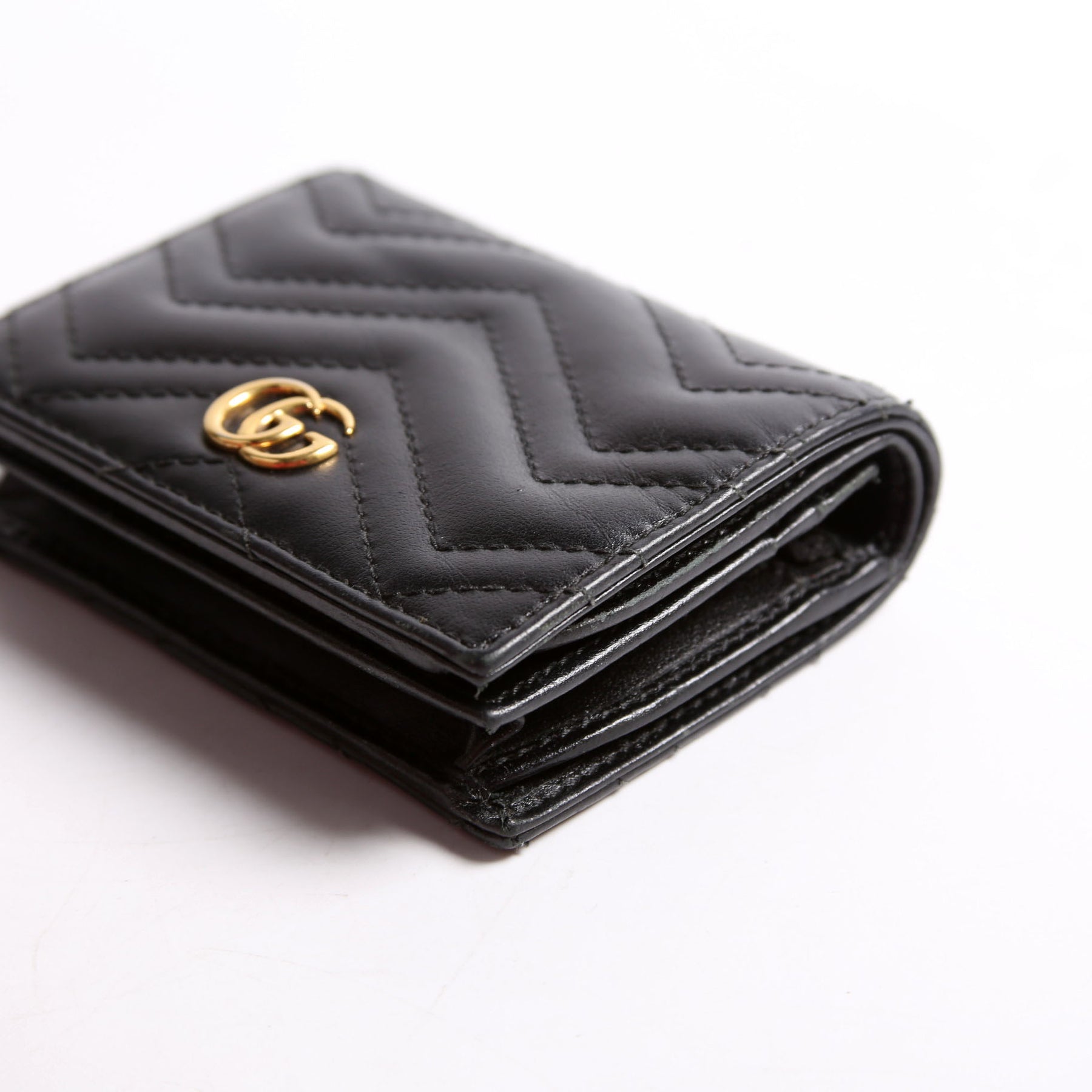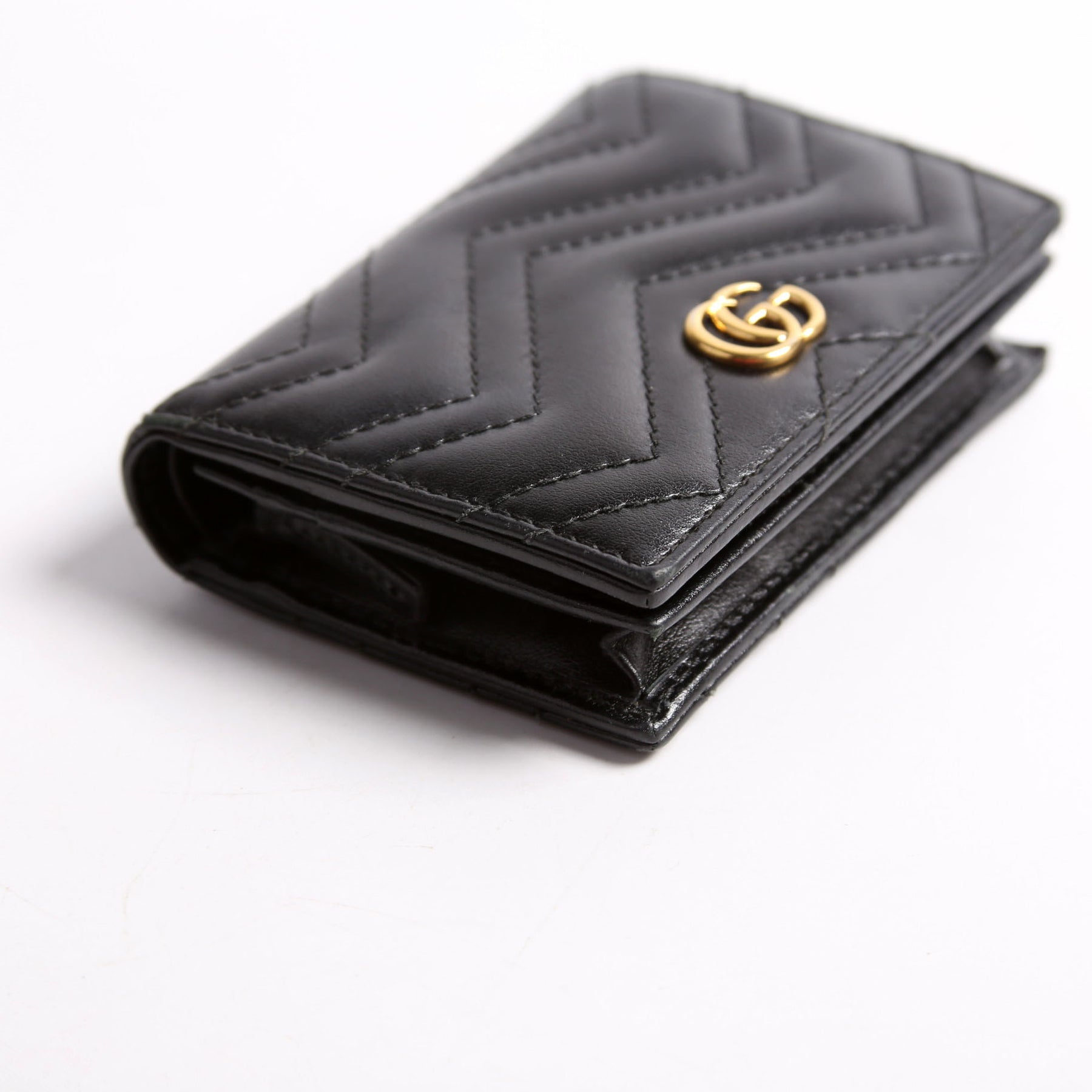 This pre-owned Gucci GG Marmont Card Case is guaranteed 100% authentic. The exterior is in the classic Gucci Marmont leather.