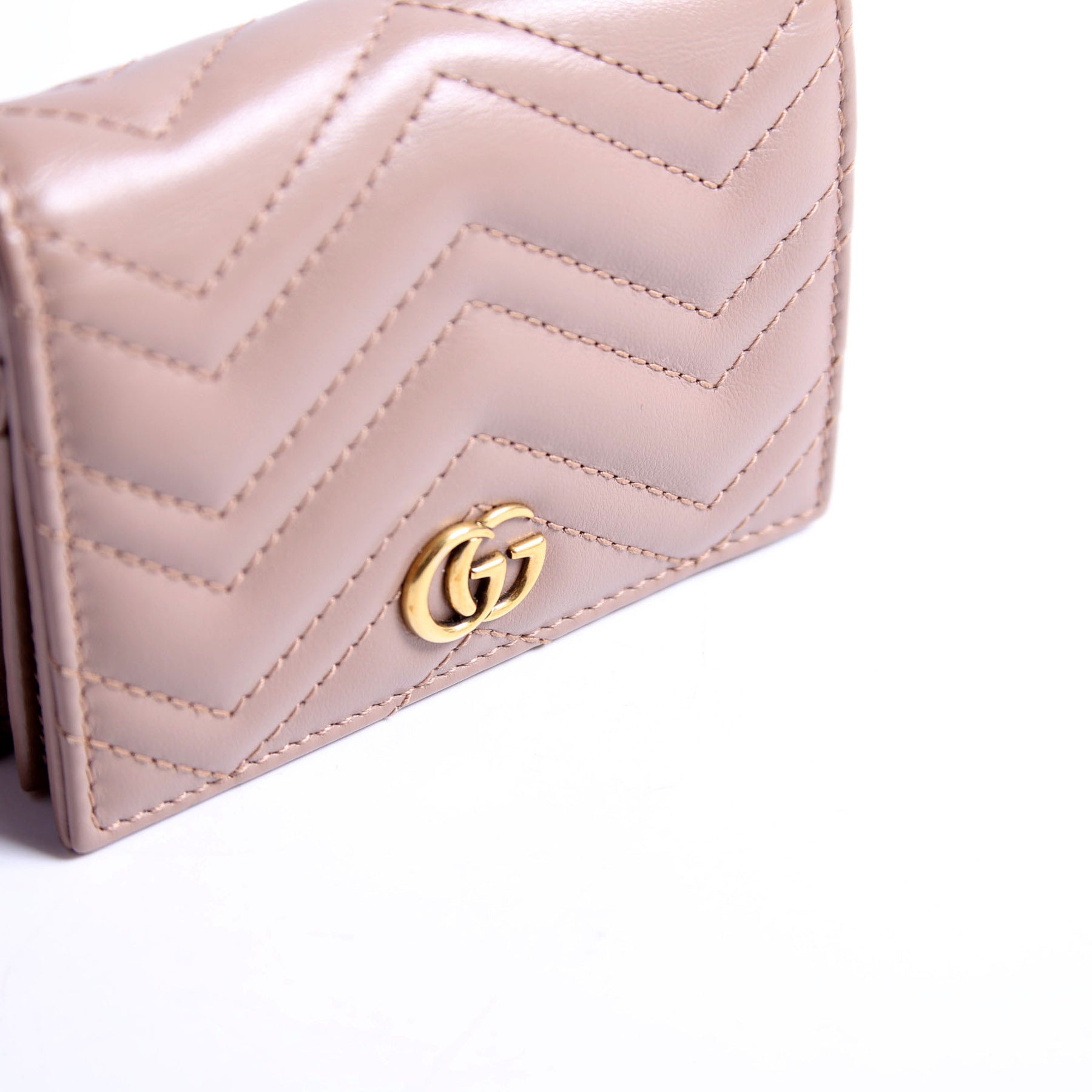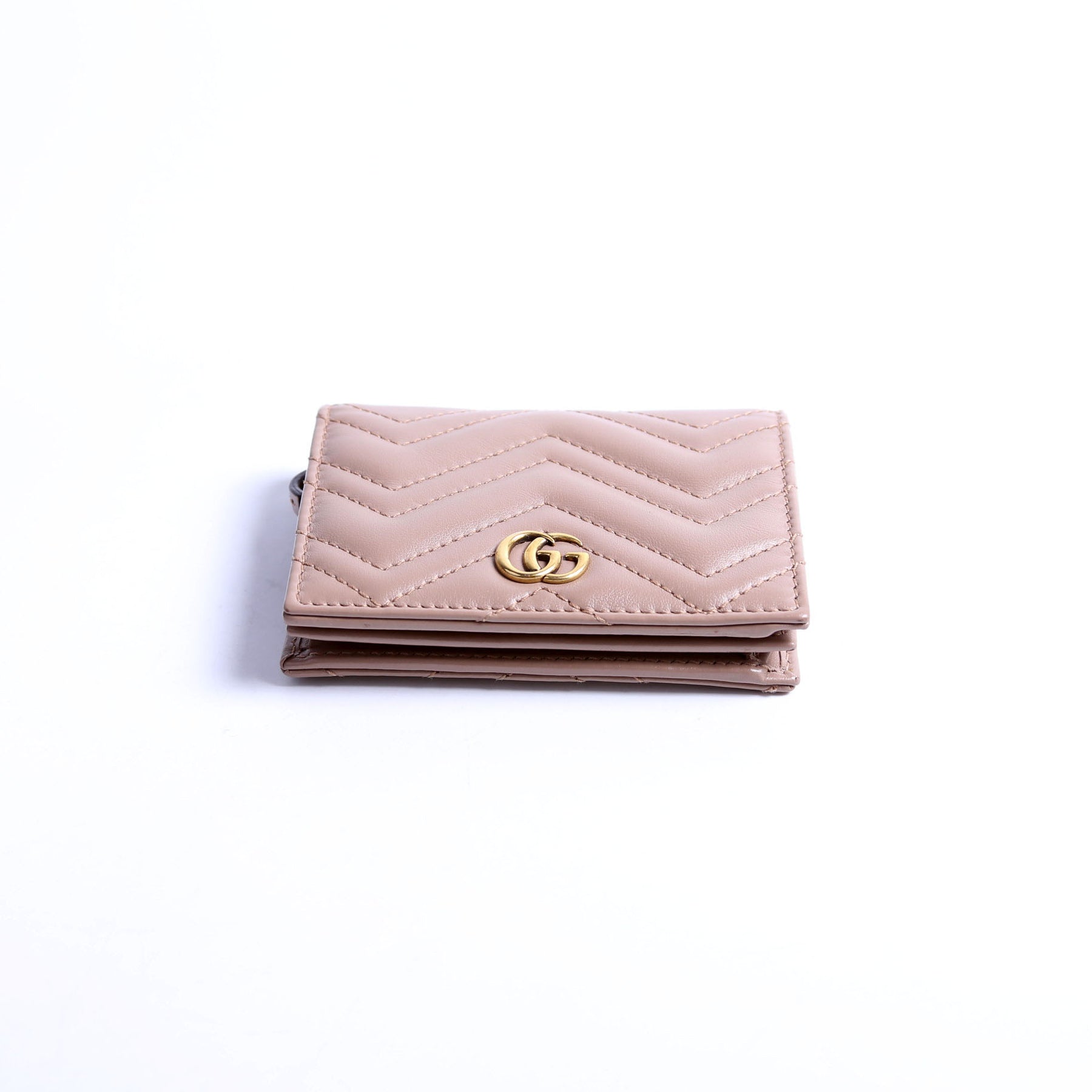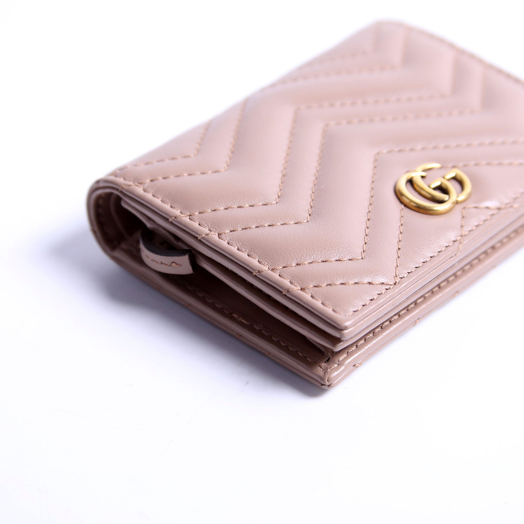 This pre-owned Gucci GG Marmont Card Case is guaranteed 100% authentic. The exterior is in the classic Gucci Marmont leather.