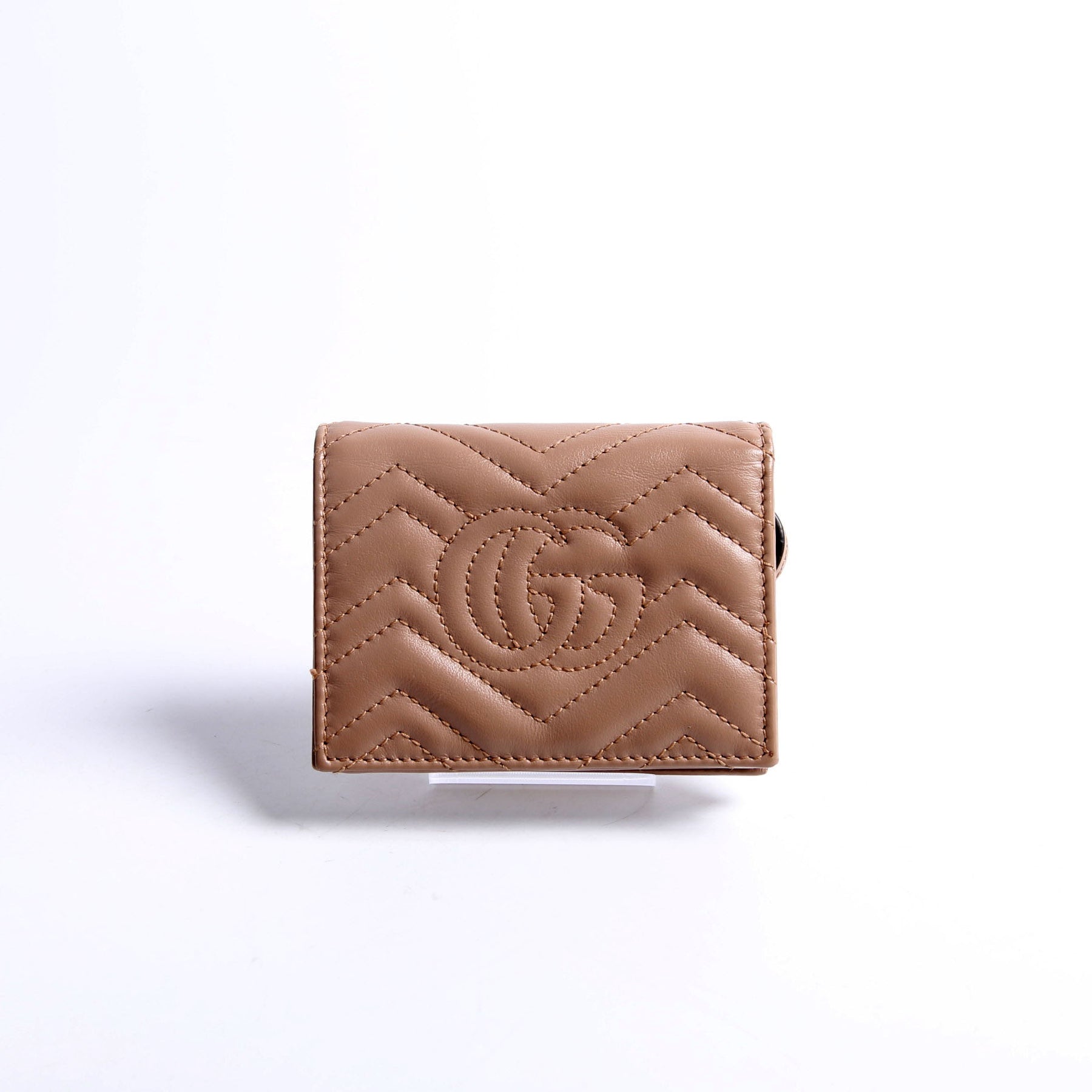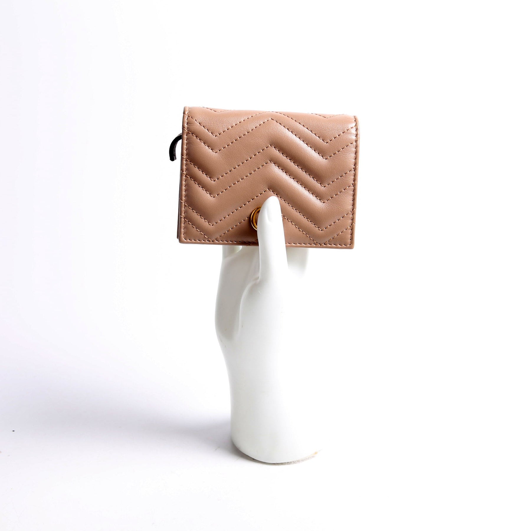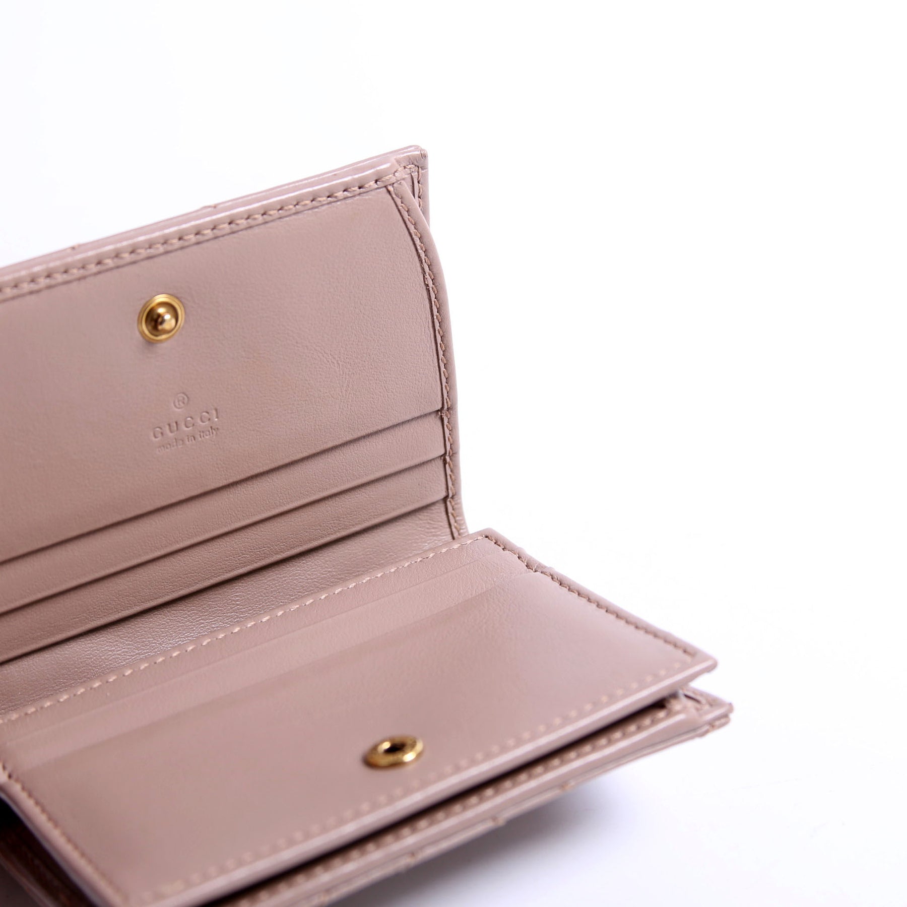 This pre-owned Gucci GG Marmont Card Case is guaranteed 100% authentic. The exterior is in the classic Gucci Marmont leather.