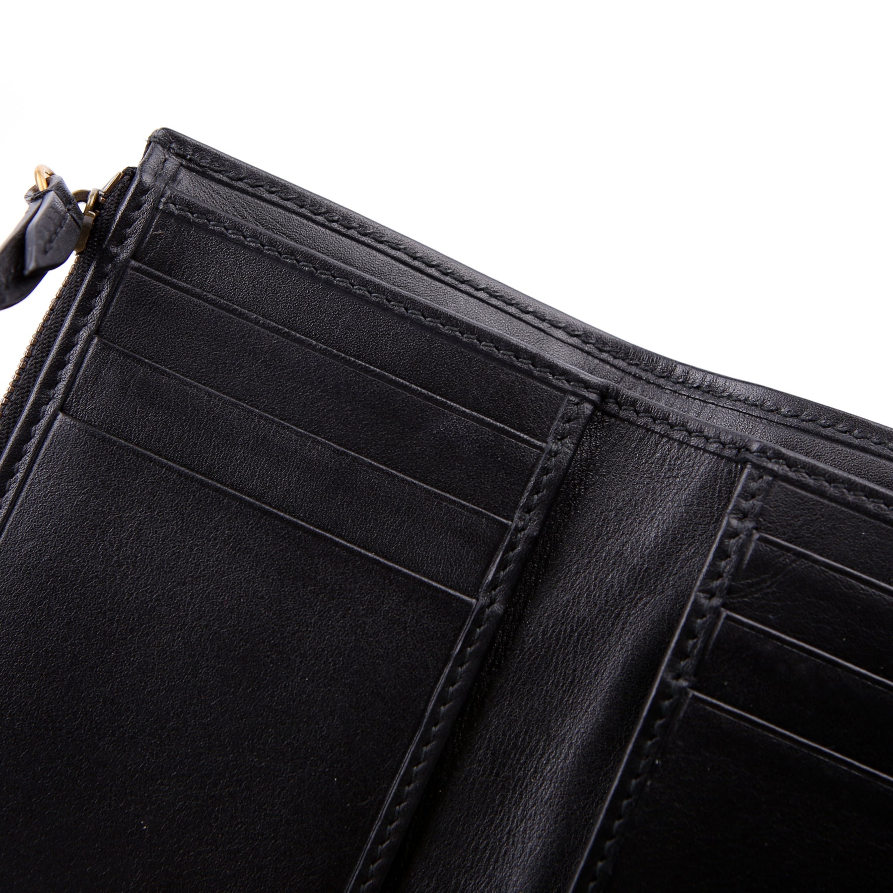 Interior: The interior has minor scuffs throughout, and it features nine card slots, one bill slot, and one zipper pocket.