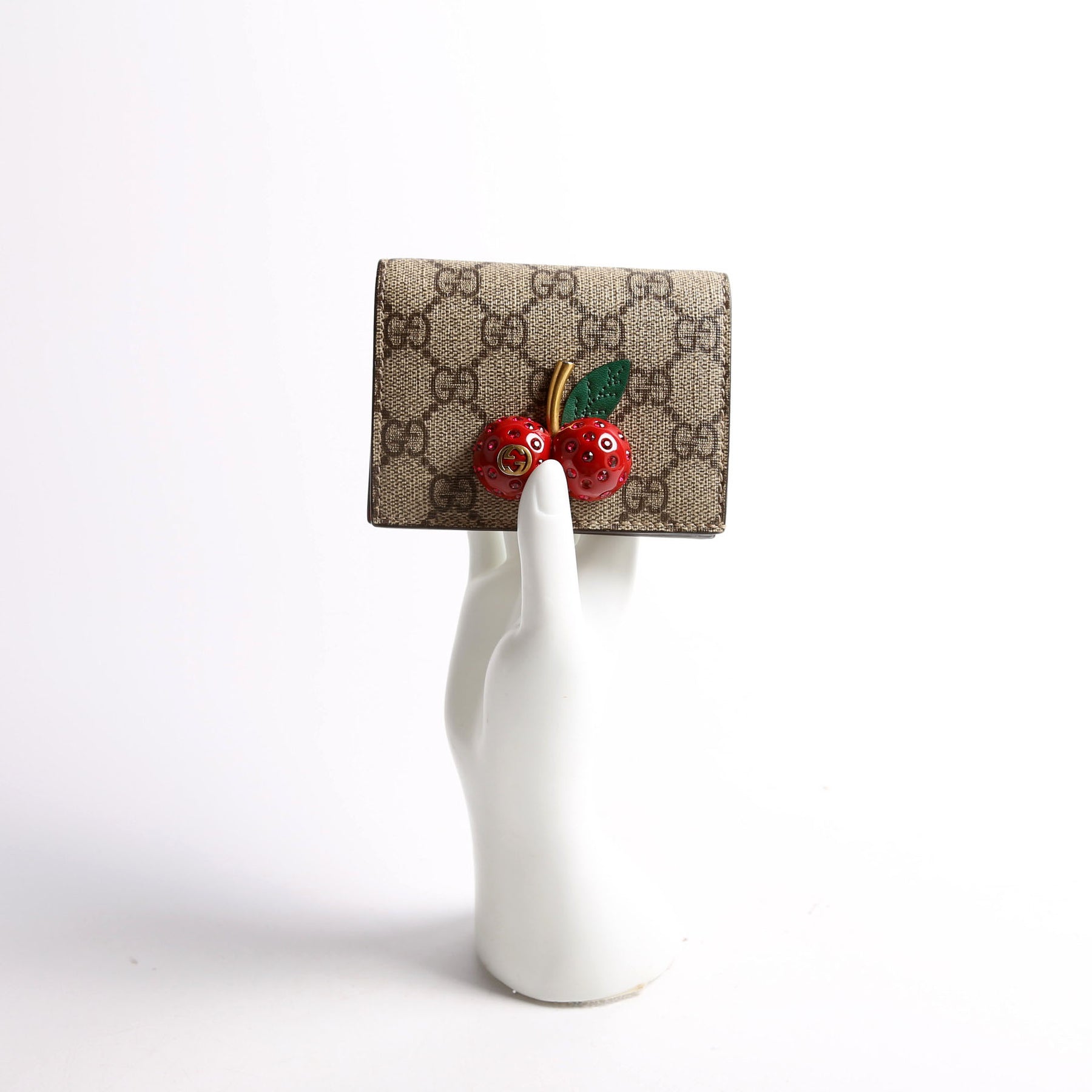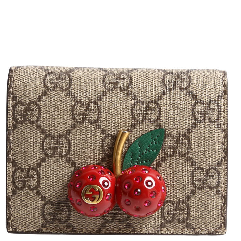These pre-owned Gucci GG Supreme Cherries Card Case are guaranteed 100% authentic. The exterior is in the classes Gucci GG Supreme coated canvas.