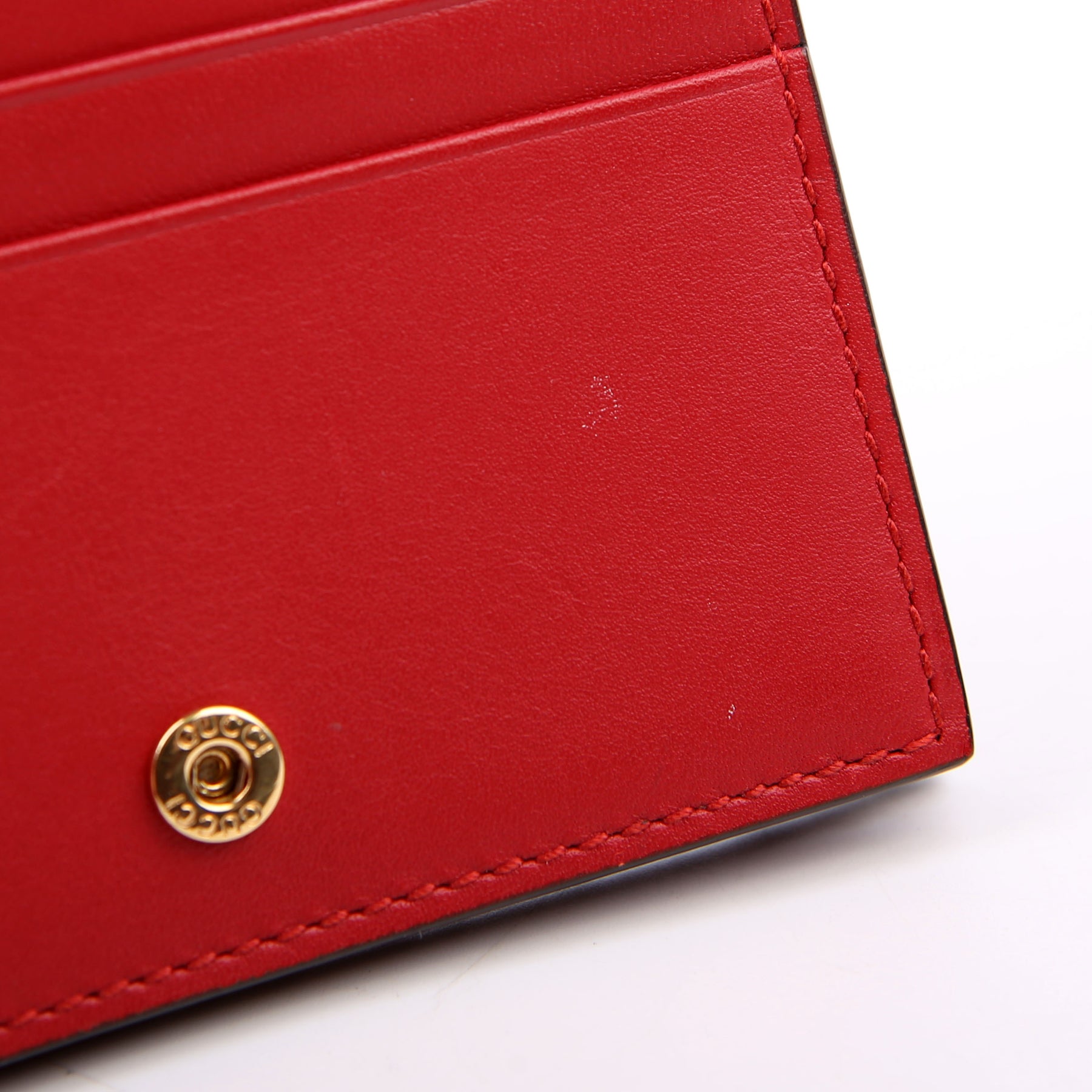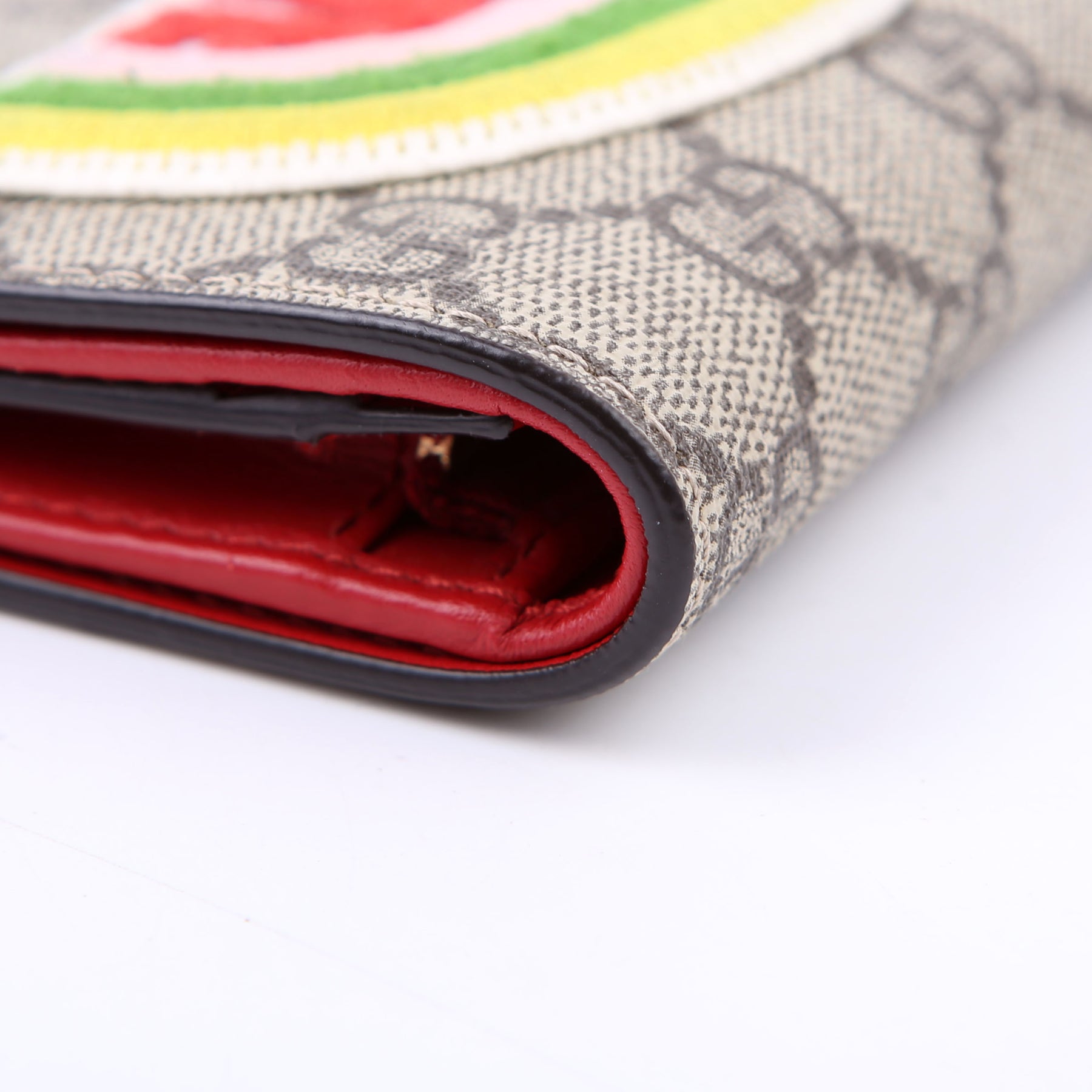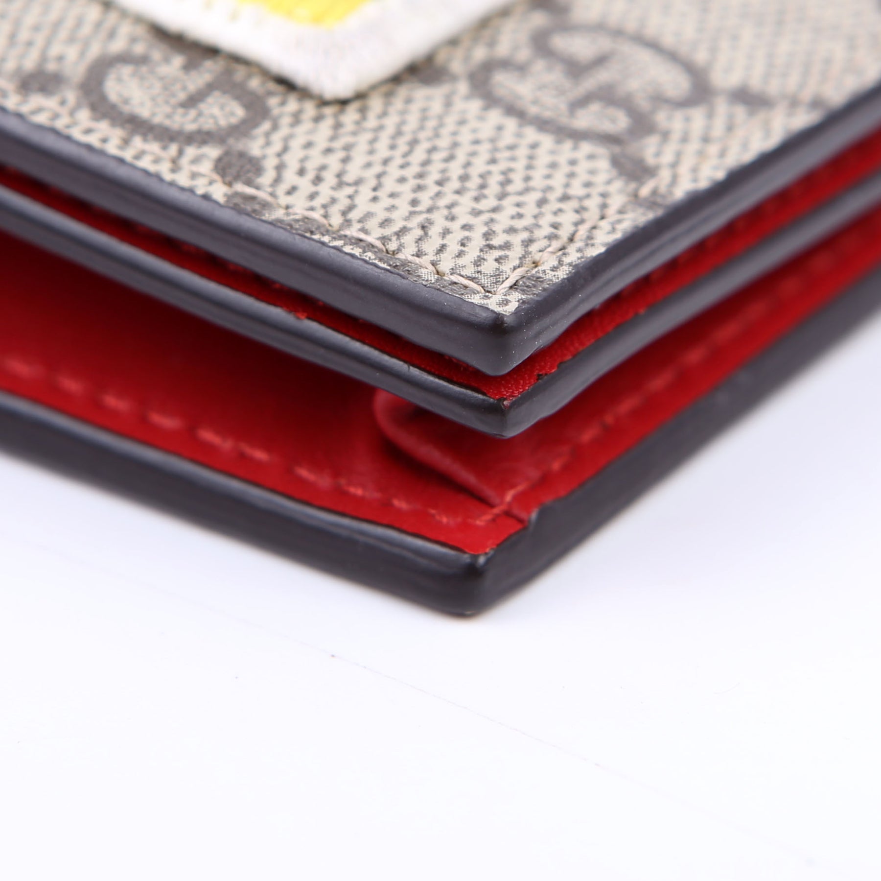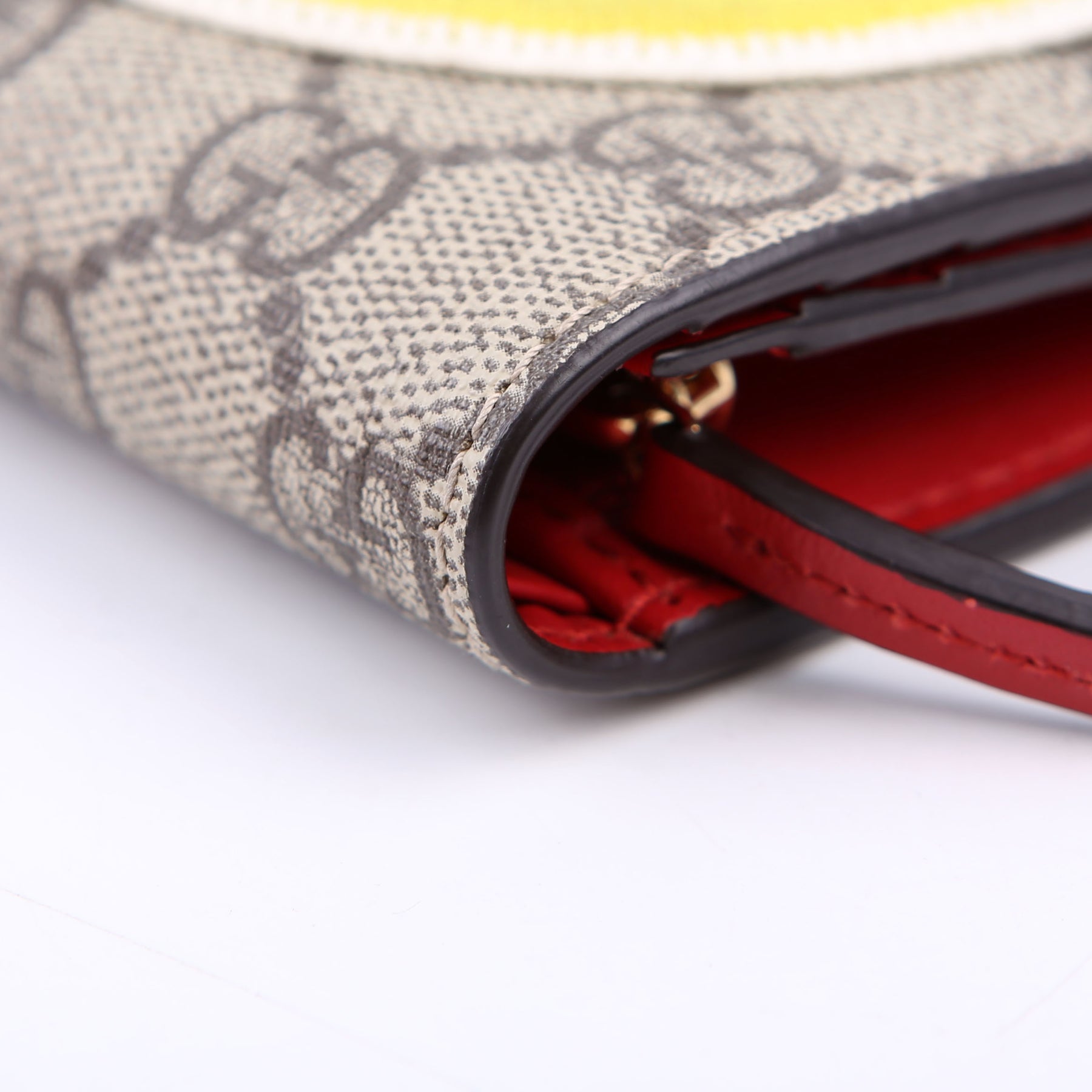 This pre-owned Gucci Small Love Wallet is guaranteed 100% authentic. The exterior is in the classic Gucci GG Supreme coated canvas.
