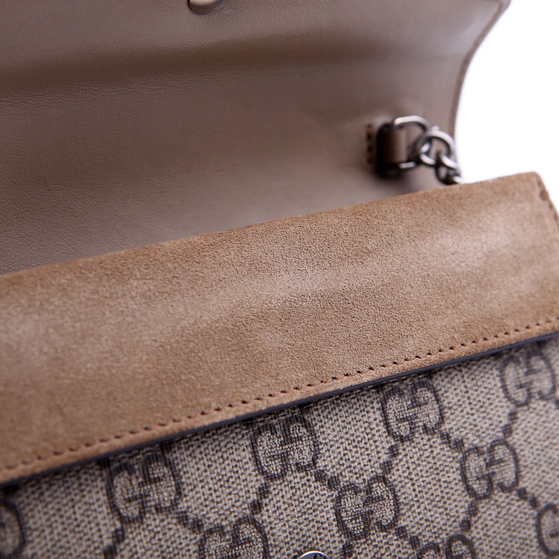 This pre-owned Gucci Dionysus GG Supreme Mini is guaranteed 100% authentic. The exterior is in the classic Gucci GG Supreme coated canvas.