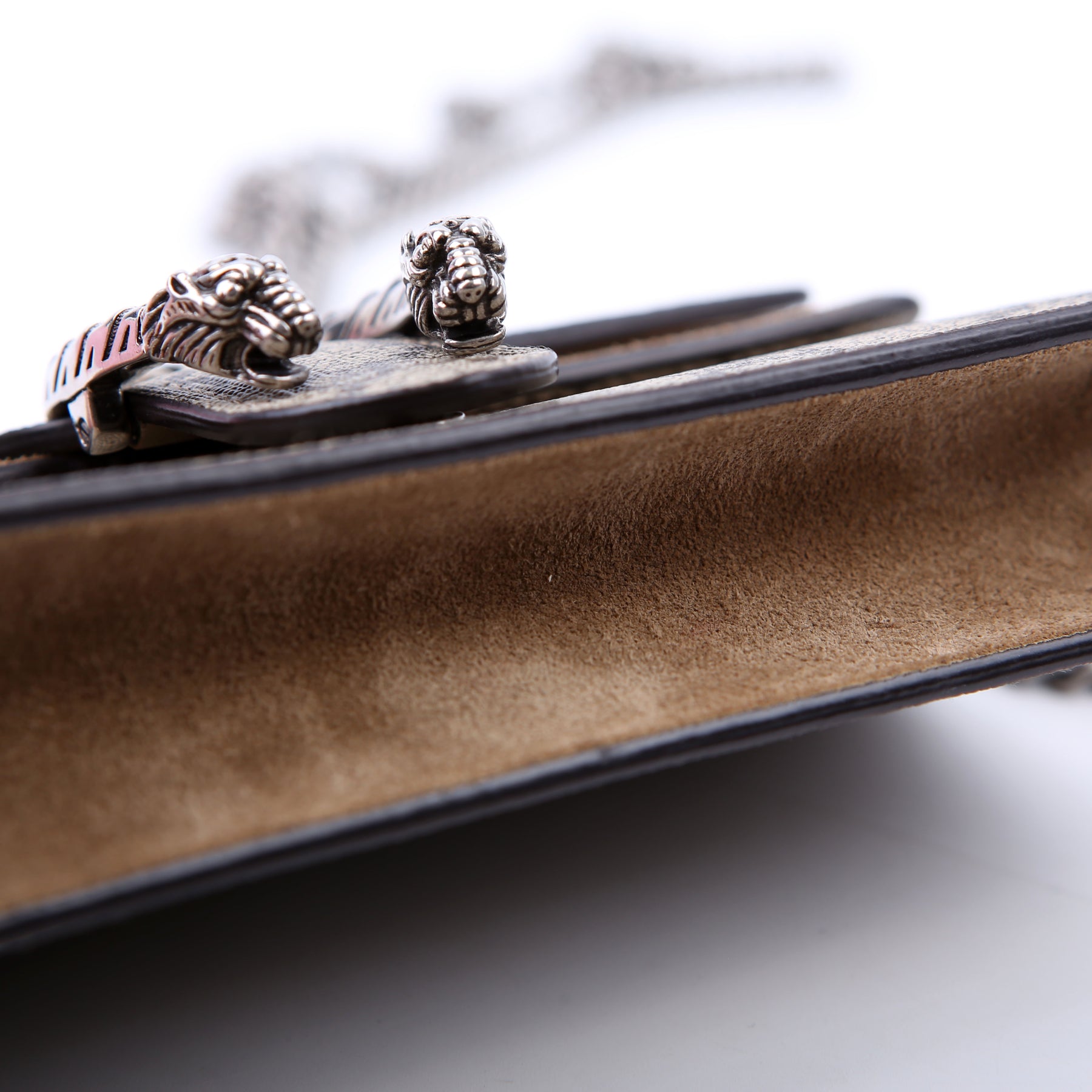 This pre-owned Gucci Dionysus GG Supreme Mini is guaranteed 100% authentic. The exterior is in the classic Gucci GG Supreme coated canvas.