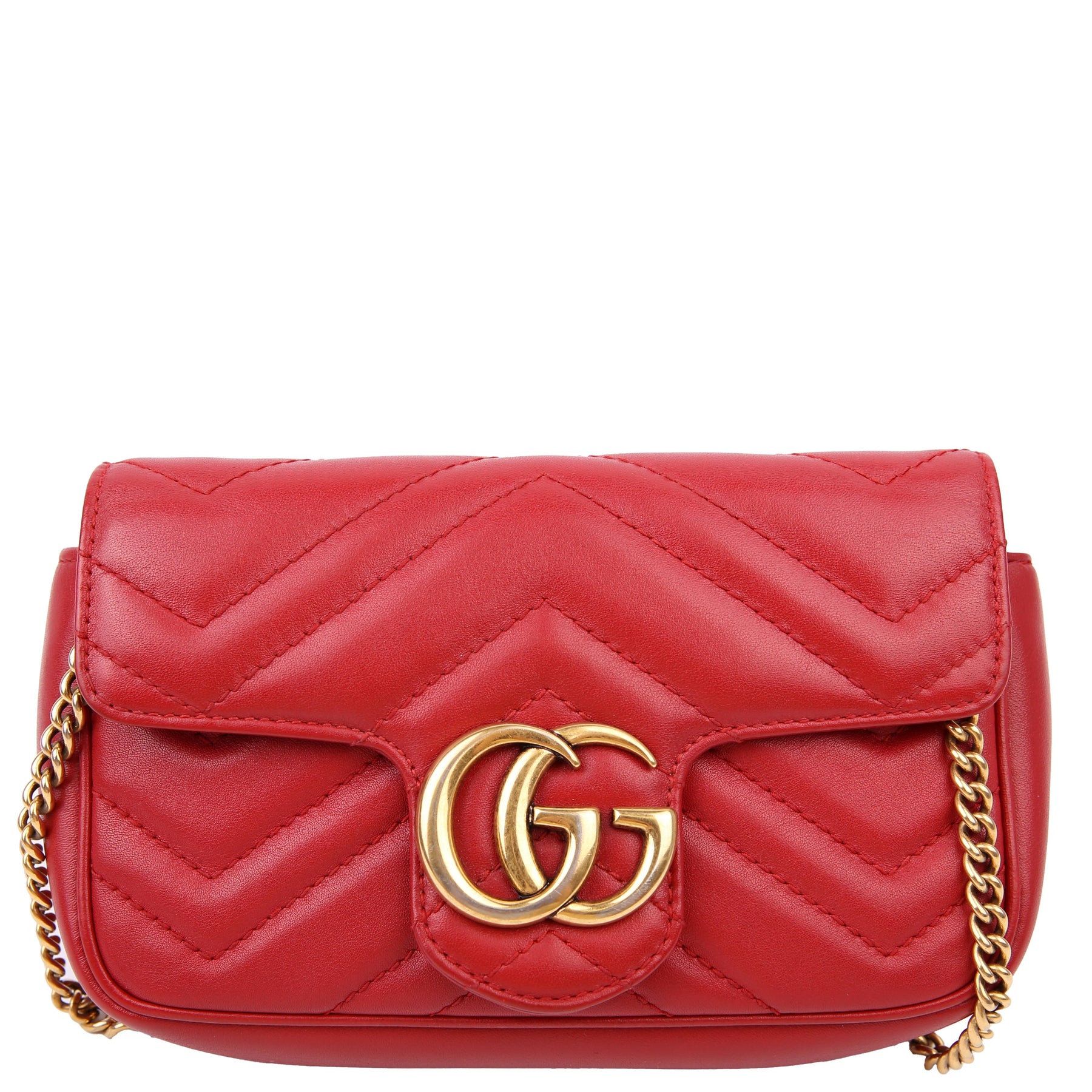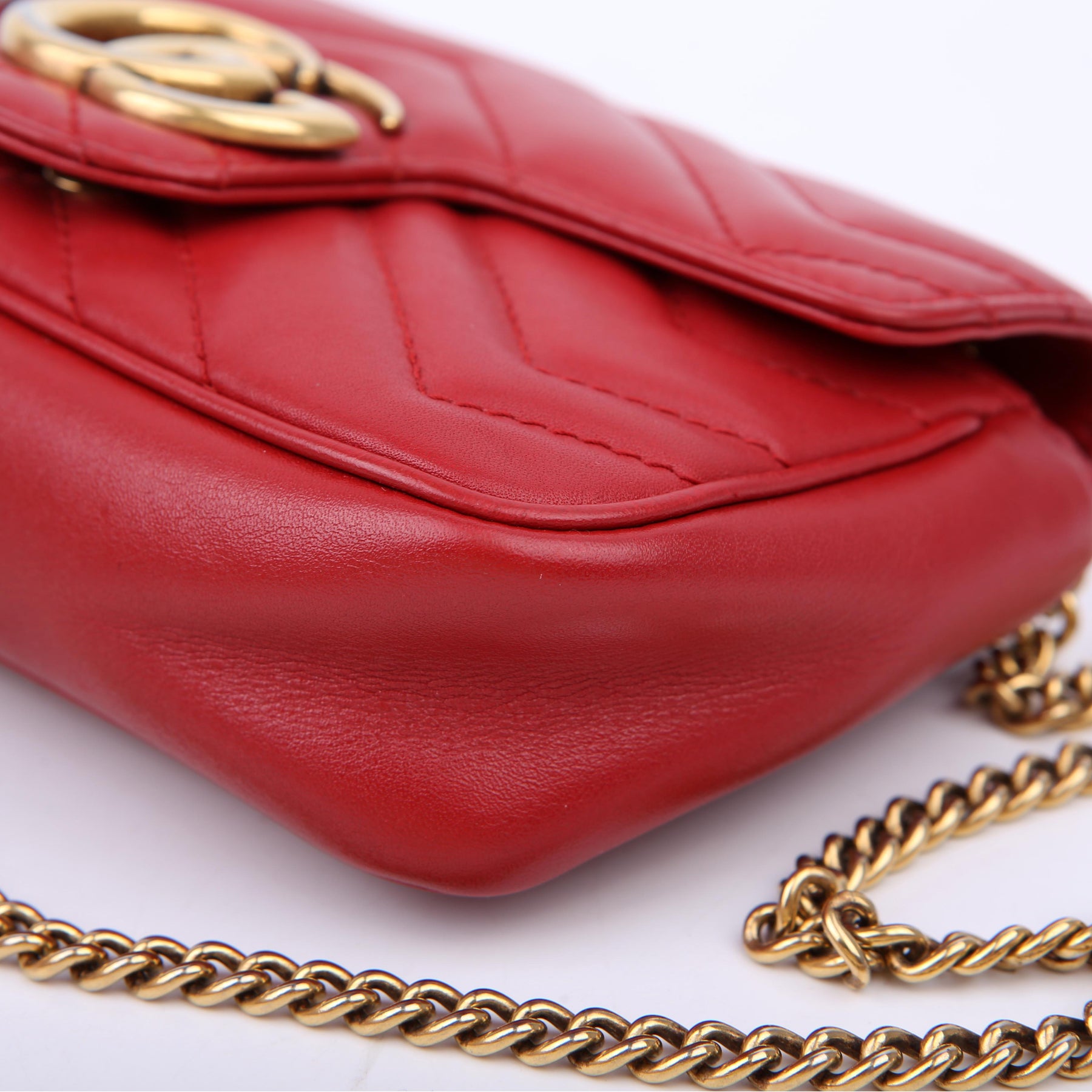 This pre-owned Gucci Marmont Leather Super Mini Flap is guaranteed 100% authentic.