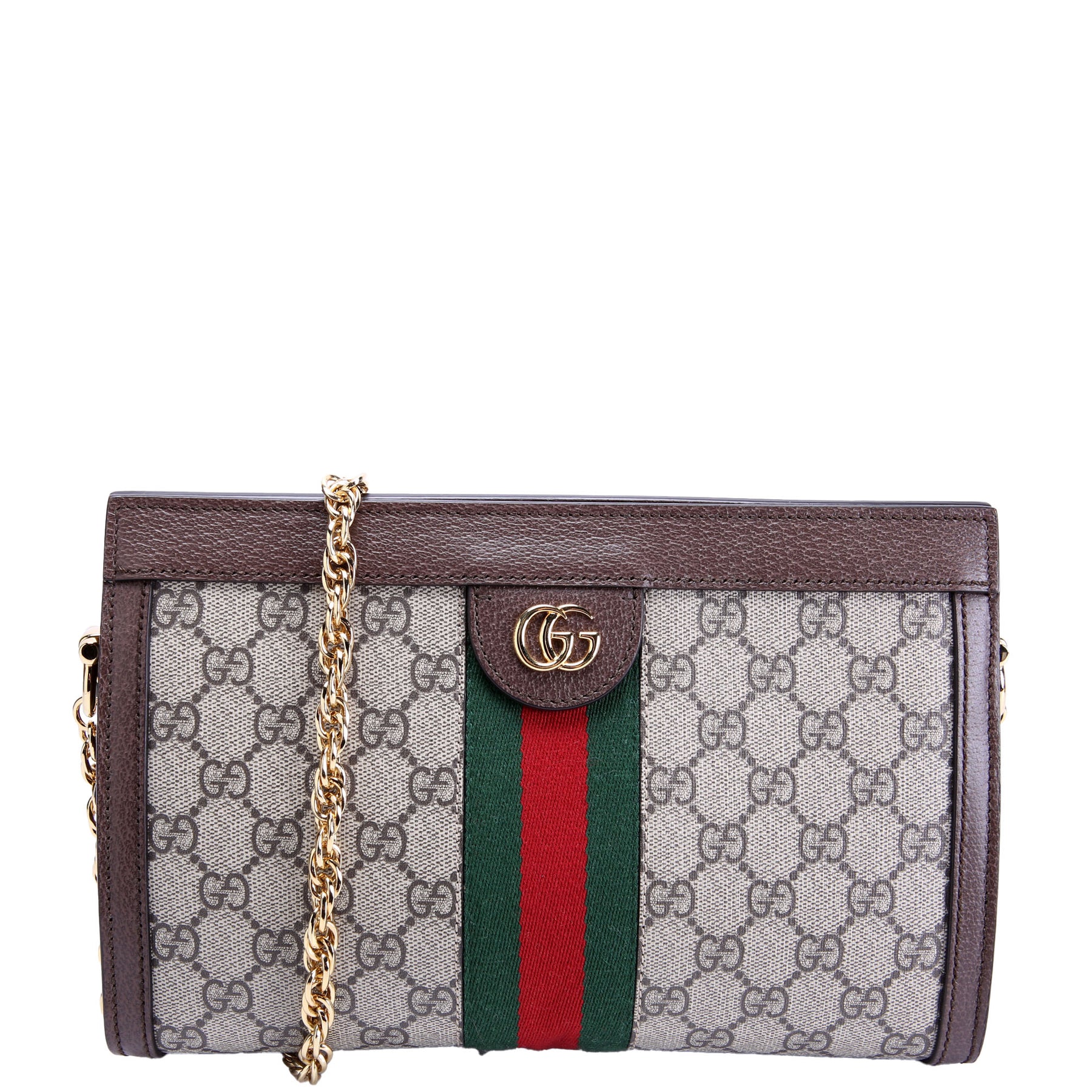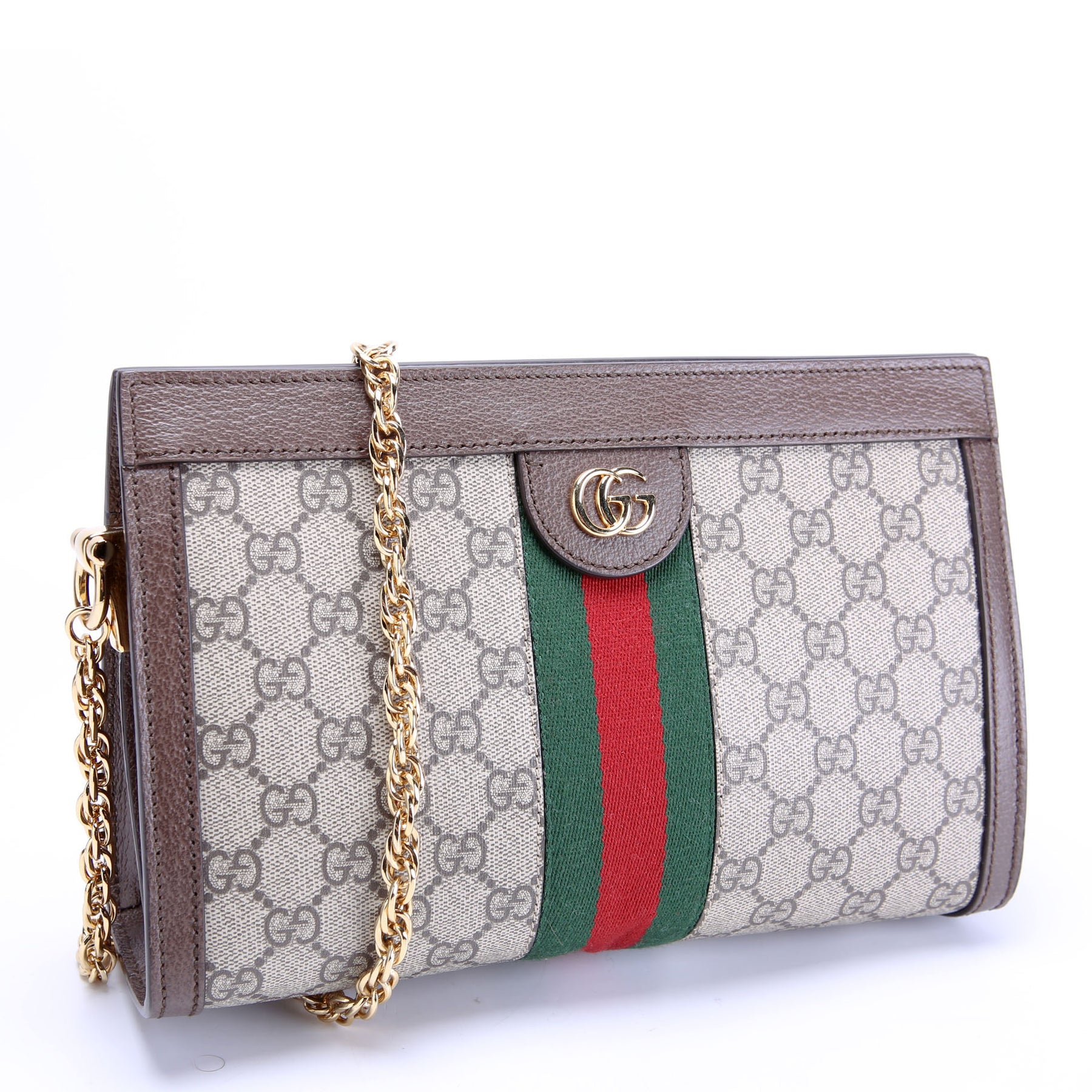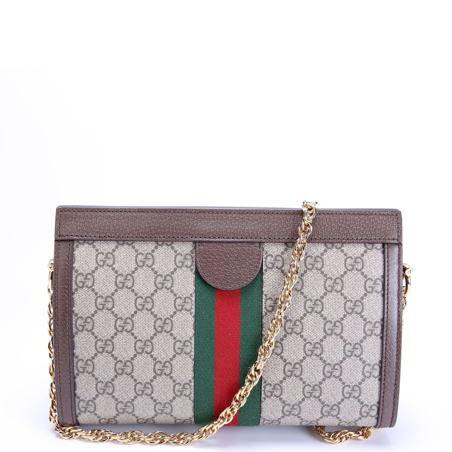 This pre-owned Gucci Ophidia Small Chain is guaranteed 100% authentic. The exterior is in the classic Gucci GG Supreme coated canvas.