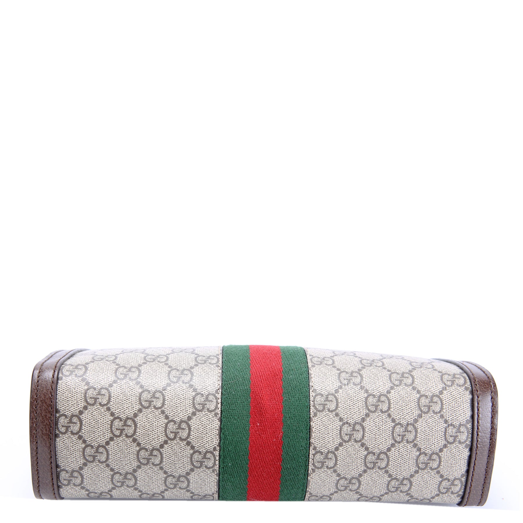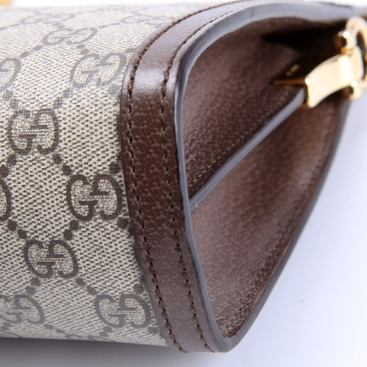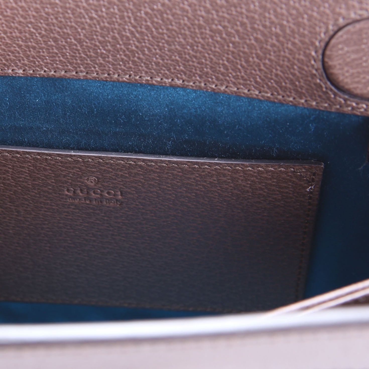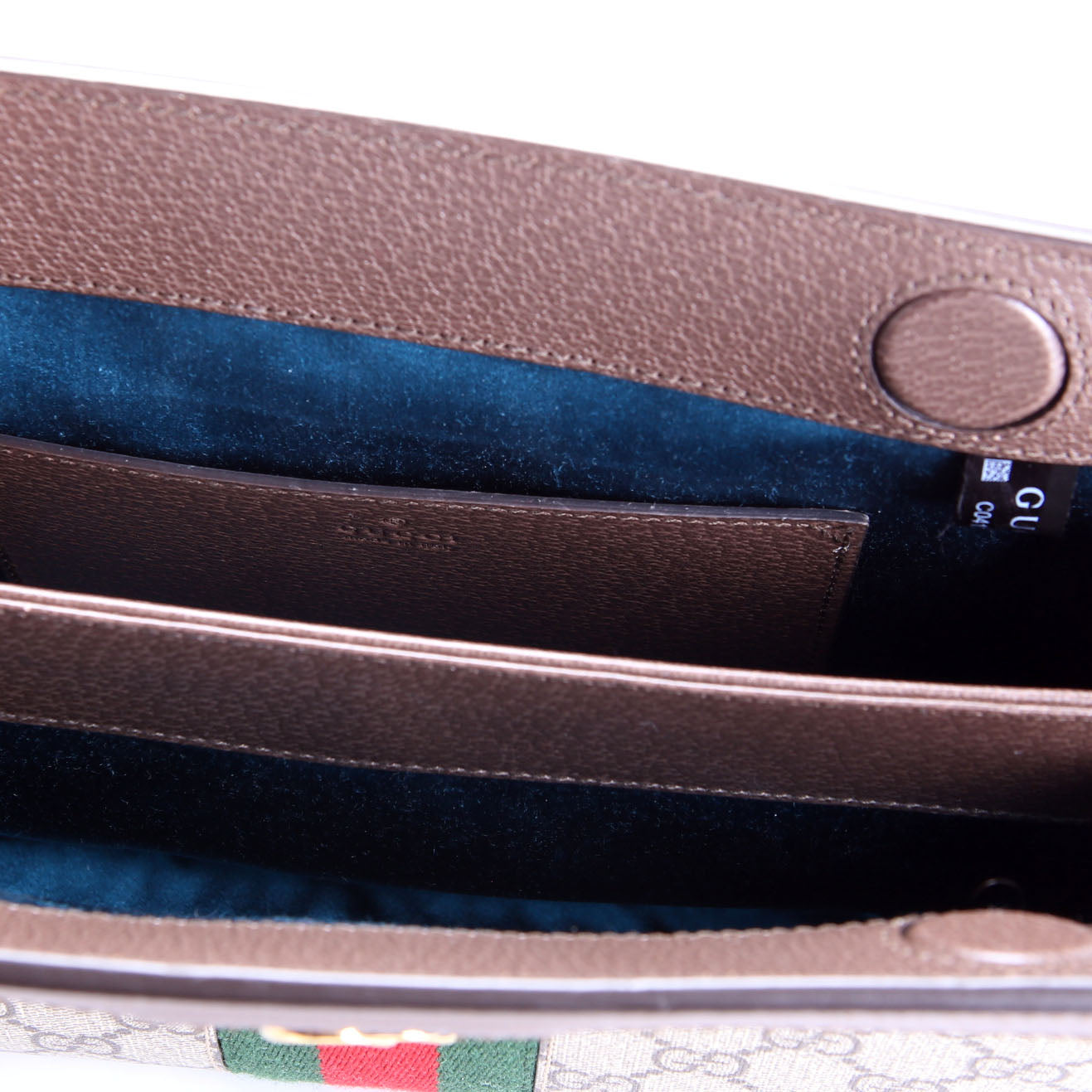 This pre-owned Gucci Ophidia Small Chain is guaranteed 100% authentic. The exterior is in the classic Gucci GG Supreme coated canvas.