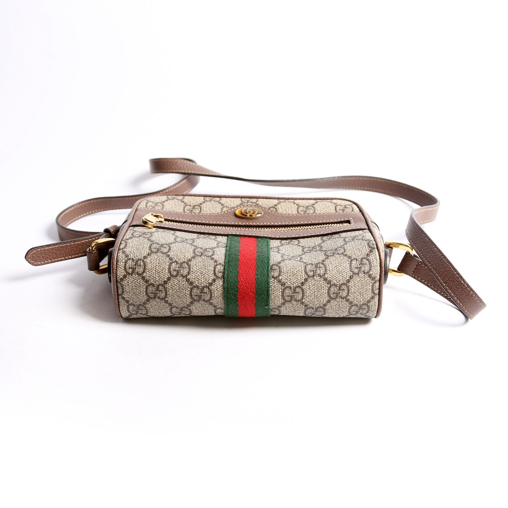This pre-owned Gucci GG Supreme Mini Ophidia is guaranteed 100% authentic. The exterior is in the classic Gucci GG Supreme coated canvas.