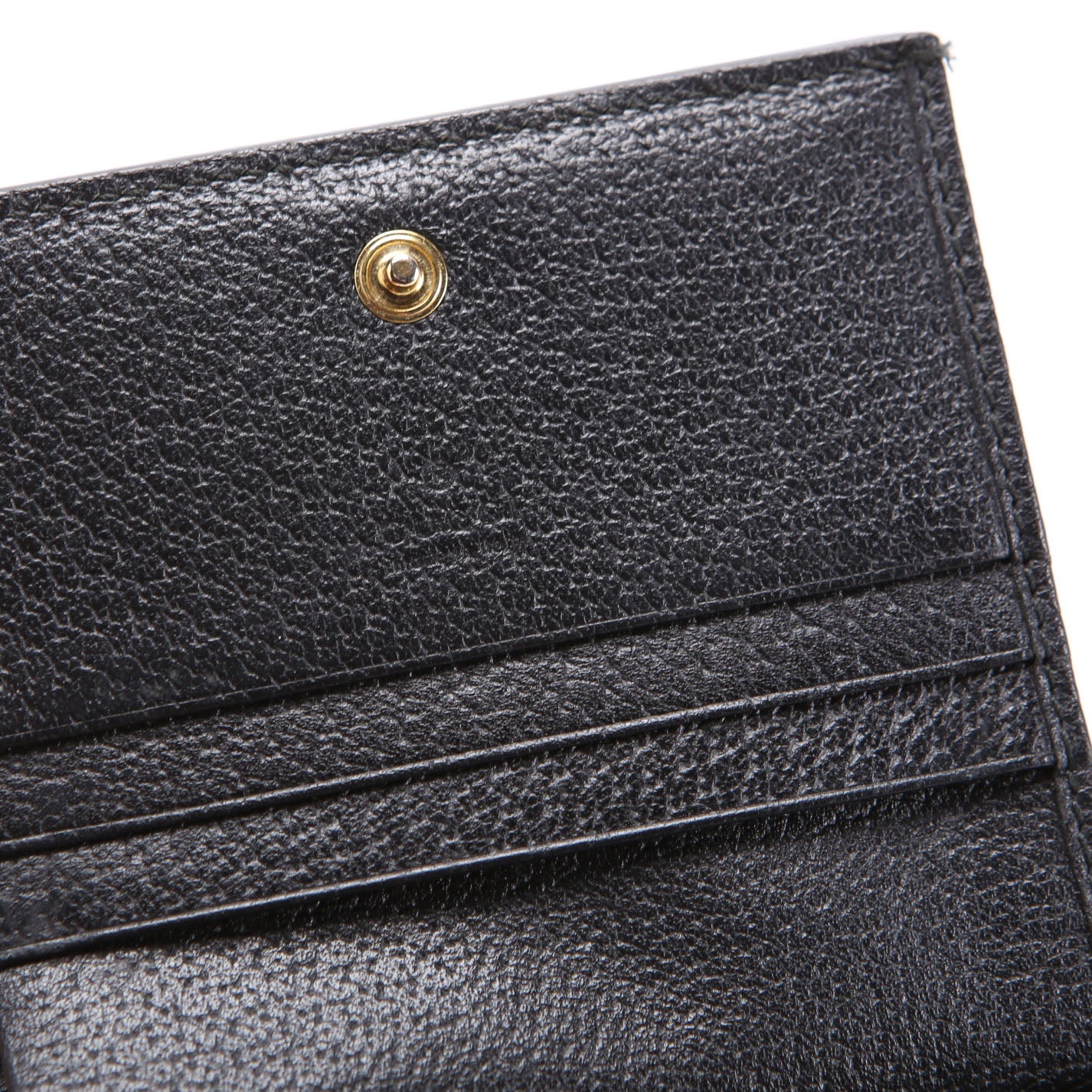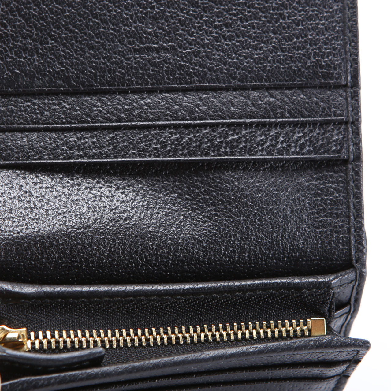 Interior: The interior is free of wear throughout and it features six card slots, one bill slot, and one zip closure coin pouch.