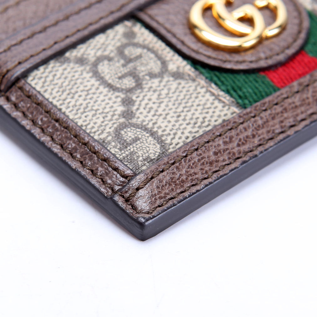 This pre-owned Gucci Ophidia GG Card Case is guaranteed 100% authentic. The exterior is in the classic Gucci GG Supreme coated canvas.