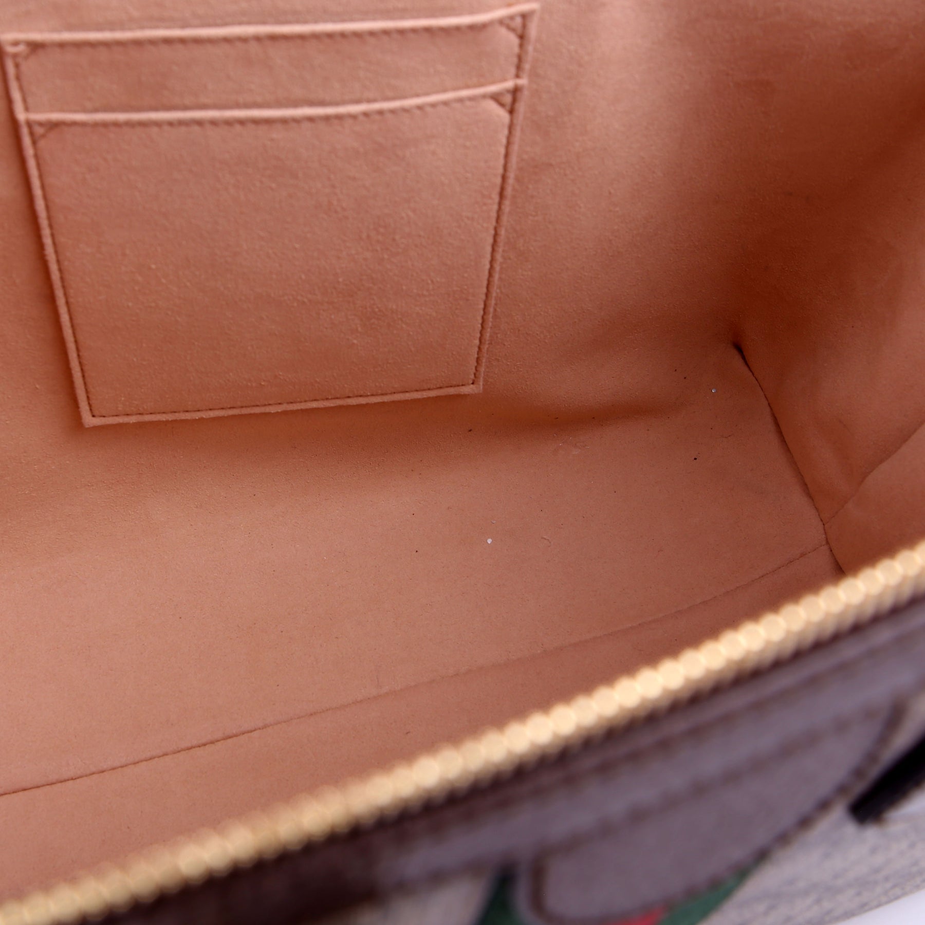 This pre-owned Gucci Ophidia GG Medium Tote is guaranteed 100% authentic. The exterior is in the classic Gucci GG Supreme coated canvas.